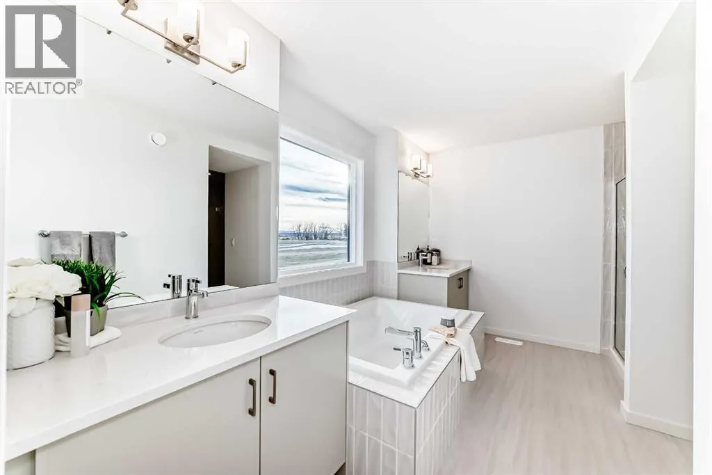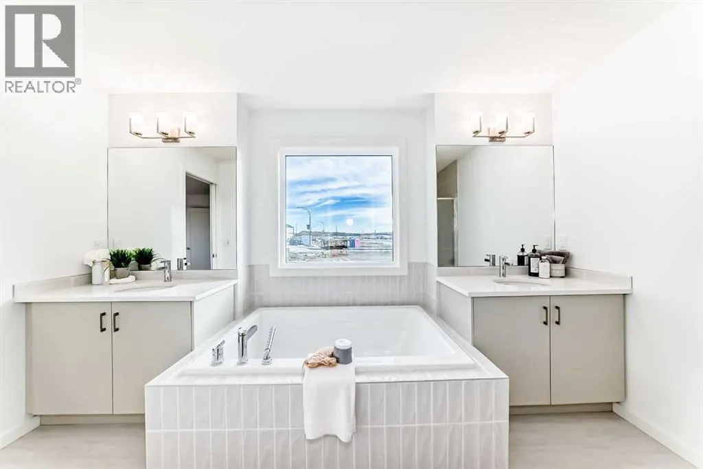 LETâS CALL THIS WHAT IT IS: THE CORNER LOT THAT MAKES EVERYTHING ELSE FEEL LIKE A COMPROMISE. Cornering a BRAND-NEW PARK (play structure, picnic tables, pathways, trees), front facing privacy with no driveway staring you down from across the street, and MOUNTAIN GLIMPSES IN THE DISTANCEâthis is the southwest address that checks the âlocationâ box before youâve even turned the key. A block away, a stretch of natural greenspace and trees softens the horizon, giving the neighbourhood that just-finished-but-already-established feel. And did you notice? THE YARD IS ALREADY DONE (front to back, fully sodded), so weekends start at the park, not the garden centre.Inside, 2,585 SQ FT lands on the right side of âbig enoughâ and âbeautifully planned.â Light, fresh, modern finishes keep the mood calmâwarm wood-toned floors ground crisp lines and a clean palette thatâs both photo-ready and easy to live with. The kitchen means business: BUILT-IN WALL OVEN AND MICROWAVE, GAS COOKTOP, QUARTZ THROUGHOUT, AND A PROPER WALK-THROUGH PANTRY so groceries move from garage entry to counter without the chaos. Eight-foot doors on the main add quiet presence; an electric fireplace anchors the great room without stealing square footage.A rare MAIN-FLOOR BEDROOM sits beside a FULL BATH with tile-and-glass showerâideal for guests, in-laws, or a focused office thatâs not wedged into a landing. Upstairs, the BONUS ROOM keeps the second floor social while FOUR UPPER BEDROOMS keep it practical. The master bedroom shows off with a SOAKING TUB and matching window, DUAL VANITIES, a TILE-AND-GLASS SHOWER, and a LARGE WALK-IN CLOSET that actually behaves like one. Even the main bath gets a DUAL SINK VANITY, because mornings shouldnât be a negotiation. UPPER-FLOOR LAUNDRY keeps chores on the right level, and a tall stairwell window tunnels daylight where you feel it most.Downstairs, an unfinished lower level with a SEPARATE EXTERIOR ENTRY, 9' FOUNDATION WALLS, and 200-amp service sets you up for wha teverâs nextâgym, media, hobby spaceâwithout painting you into a design corner. Outside, the 12'Ã10' DECK WITH BBQ GAS LINE extends dinner into golden hour, and the 22'Ã20' ATTACHED GARAGE handles real vehicles plus the seasonal gear that comes with a Calgary life.Commuting or escaping is straightforwardâQUICK ACCESS TO STONEY, everyday essentials close by, and FISH CREEK A SHORT HOP AWAYâso the routine stays easy and the weekend drive west stays tempting. Move-in ready with flexible possession. Come stand on the corner, walk to the park, and feel how this one lives. ⢠PLEASE NOTE: Kitchen appliances are included, and will be installed prior to possession. (id:27476)