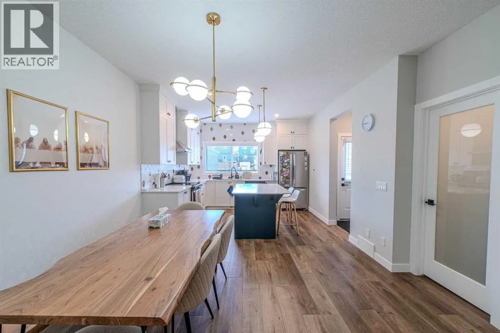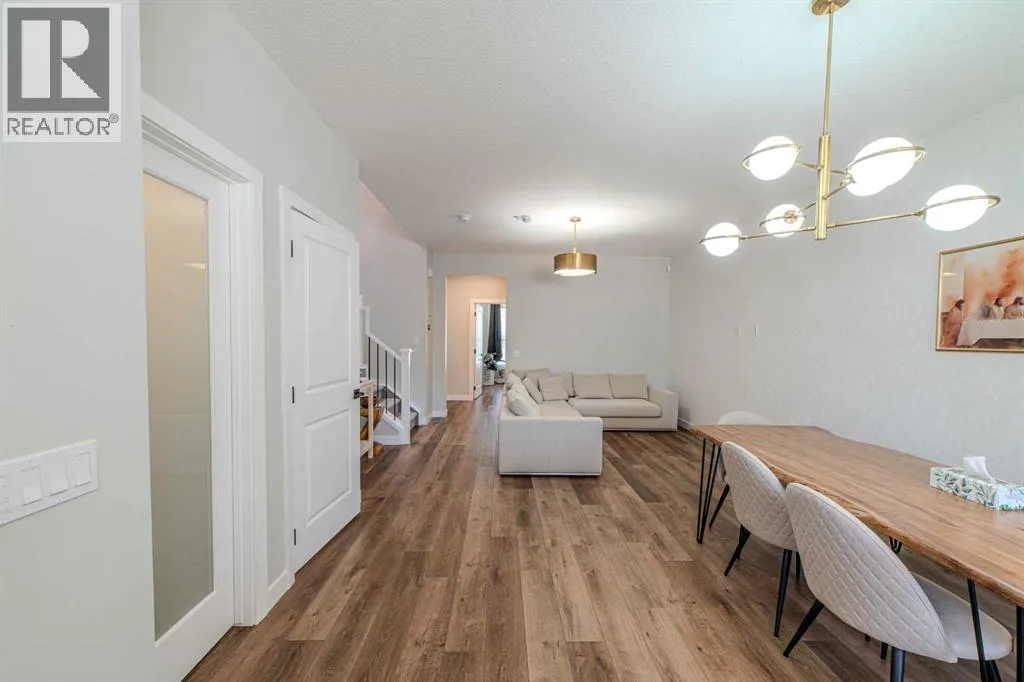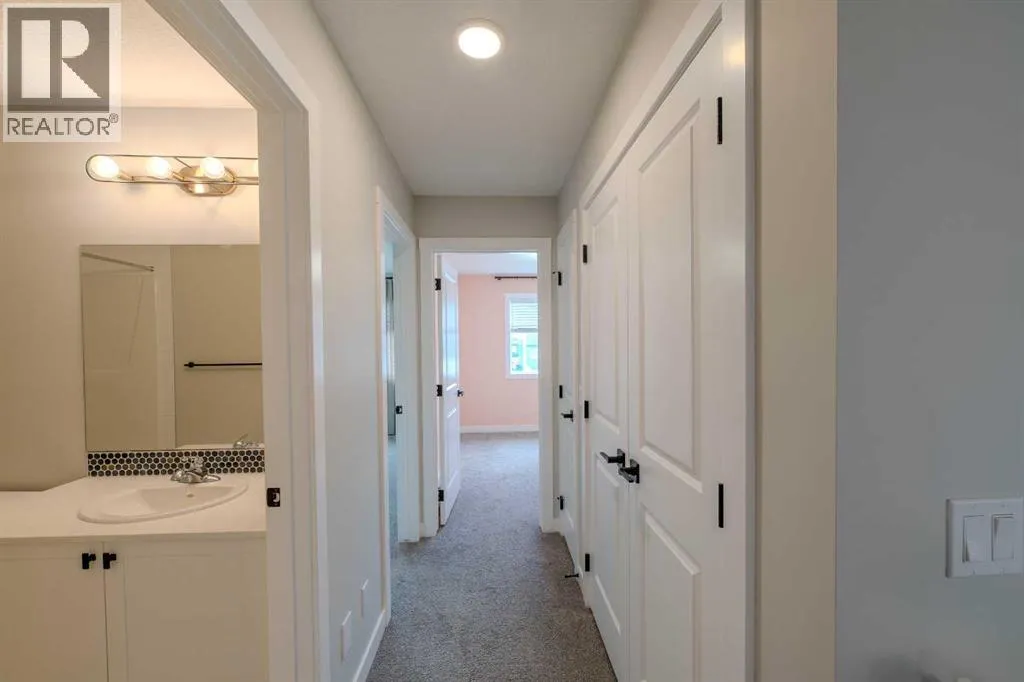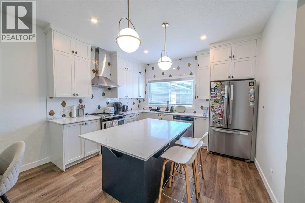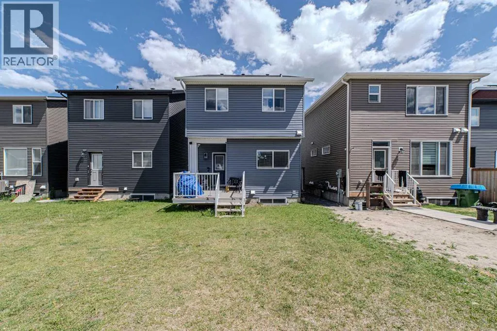 Welcome to this beautifully upgraded 5 bedroom, 4 bathroom home in the vibrant NE Calgary community of Cornerstone. Offering nearly 2,500 SQFT of total developed living space, this former builderâs show home is loaded with high-end upgrades and thoughtful features throughout. Step inside to discover 9ft ceilings, elegant luxury vinyl plank flooring, and a bright, open-concept layout. The chefâs kitchen is a standout, showcasing extended ceiling-height cabinets, quartz countertops, full tile backsplash, an executive hood fan, and upgraded designer lighting which is perfect for everyday living and entertaining friends or family. Enjoy unique wallpaper accent walls, elegant lighting throughout spacious bedrooms, and 4 full bathrooms, including one on the main level. The illegal basement suite offers a private side entrance, full kitchen , separate laundry and a generous living space, perfectly suited for extended family or potential rental income. Outside, youâll love the large backyard, perfect for summer gatherings, and a rear 2-car parking pad with plenty of room to build a future garage. The home is ideally situated directly across from a large green space, with a brand new school coming soon, providing additional convenience for families. Recent major updates (2024) include: New Roof, New Rear Siding and New Window Trim This is a rare opportunity to own a turn-key, fully loaded home in one of Calgaryâs fastest-growing communities. Close to parks, schools, shopping, transit. Book your private showing today, show home caliber homes like this donât come up often or last long! (id:27476)
