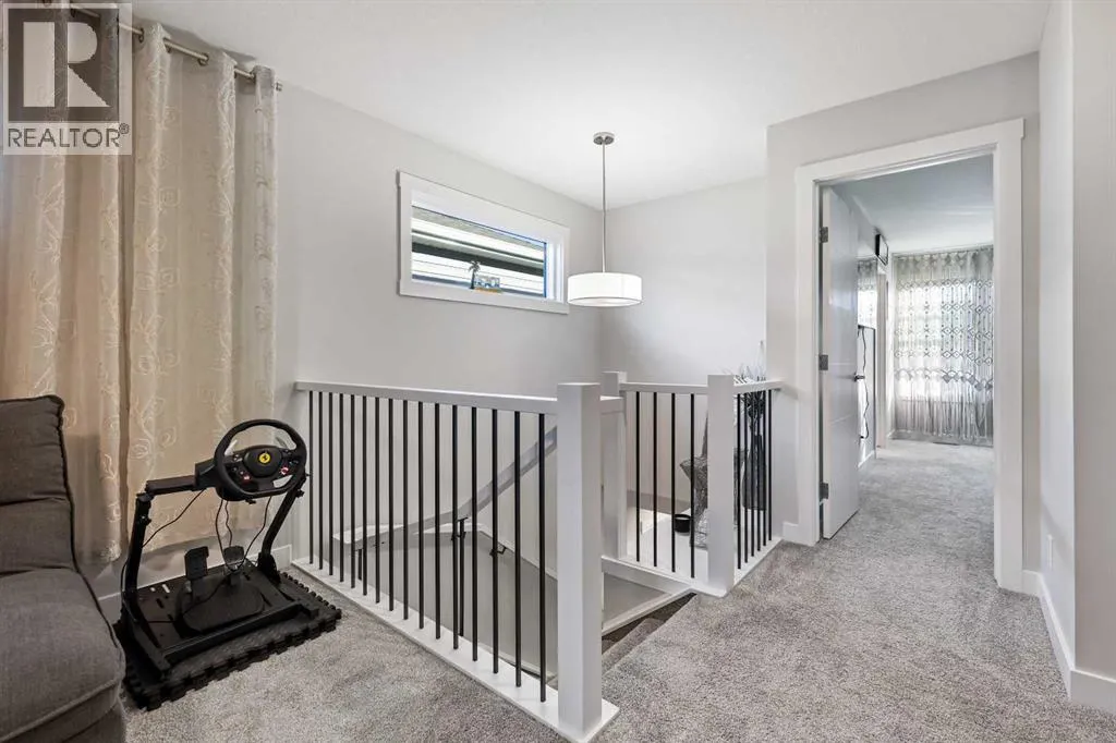Welcome to this stunning and highly customized Brookfield 2-storey home in the vibrant, amenity-rich community of Seton â where modern design meets timeless comfort. Showcasing nearly 2,000 square feet above grade, this exceptional residence has been thoughtfully upgraded and enhanced with personalized touches that elevate its style and function. From the moment you arrive, the homeâs inviting exterior, accented by rich colours, charming front porch, and architectural details, hints at the sophistication that awaits inside. Step into the main living area, where 9-foot ceilings and premium finishes create a sense of openness and warmth. The living room immediately draws your attention with its floor-to-ceiling shiplap feature wall, floating shelves, and a striking marble-inspired fireplaceâa perfect blend of modern elegance and cozy character. Flowing seamlessly from the living space, the Chefâs Gourmet kitchen impresses with full-height cabinetry with rise and crown moulding, built-in wall oven and microwave, sleek cooktop with a chimney-style hood fan, and an expansive quartz island with a flush eating bar. The Arctic white tile backsplash and Blanco undermount sink add a refined finishing touch, while upgraded Cartwright lighting fixtures illuminate the space with designer flair. The dining area, brightened by an additional side window, creates the perfect setting for family meals and entertaining alike. Just beyond, a private main floor bedroom with a full three-piece ensuite featuring a glass-enclosed walk-in shower and floor-to-ceiling tile offers versatility for guests, multi-generational living, or a home office. The rear entry door, framed with encased glass, allows sunlight to sweep through the home and connect the indoors to the outdoors effortlessly. Upstairs, discover three additional spacious bedrooms, each enhanced with custom feature walls. The primary suite is a retreat of its own, showcasing a five-piece spa-inspired ensuite with dual undermount sin ks, quartz counters, and a walk-in closet. The centralized family roomâperfect for movie nightsâcleverly separates the primary suite from the secondary bedrooms, adding privacy and balance to the upper floor. A well-appointed laundry room with built-in counter and storage and a full bath complete this level. The lower level has been thoughtfully roughed-in for a future secondary suite (subject to approval and permitting by the city/municipality), featuring 9-foot foundation walls, rough-ins for a second laundry, kitchen plumbing, and full bathroomâa smart investment for future flexibility. Modern efficiency features include triple-glazed windows, an 80-gallon water tank, smart thermostat, Heat Recovery Ventilator, and knockdown ceilings throughout. Step outside to a beautifully finished backyard, complete with a massive covered deckâideal for entertaining year-roundâand an upgraded double detached oversized garage. (id:27476)