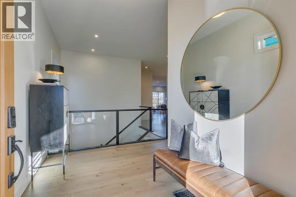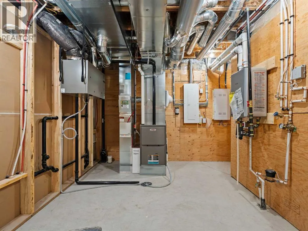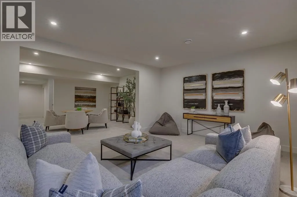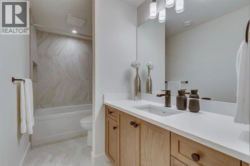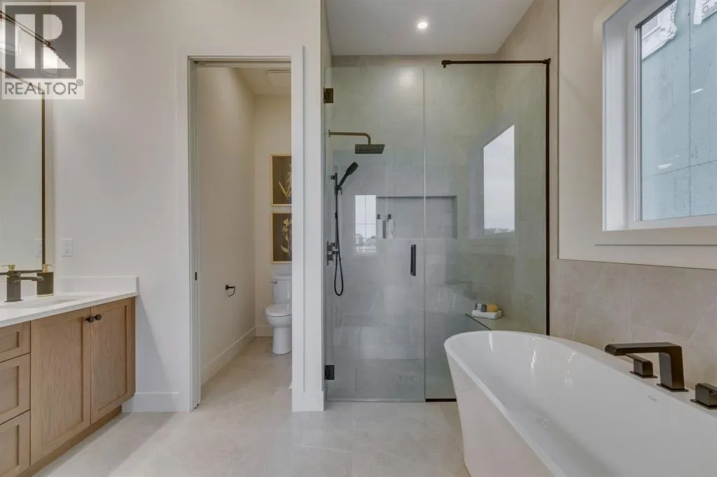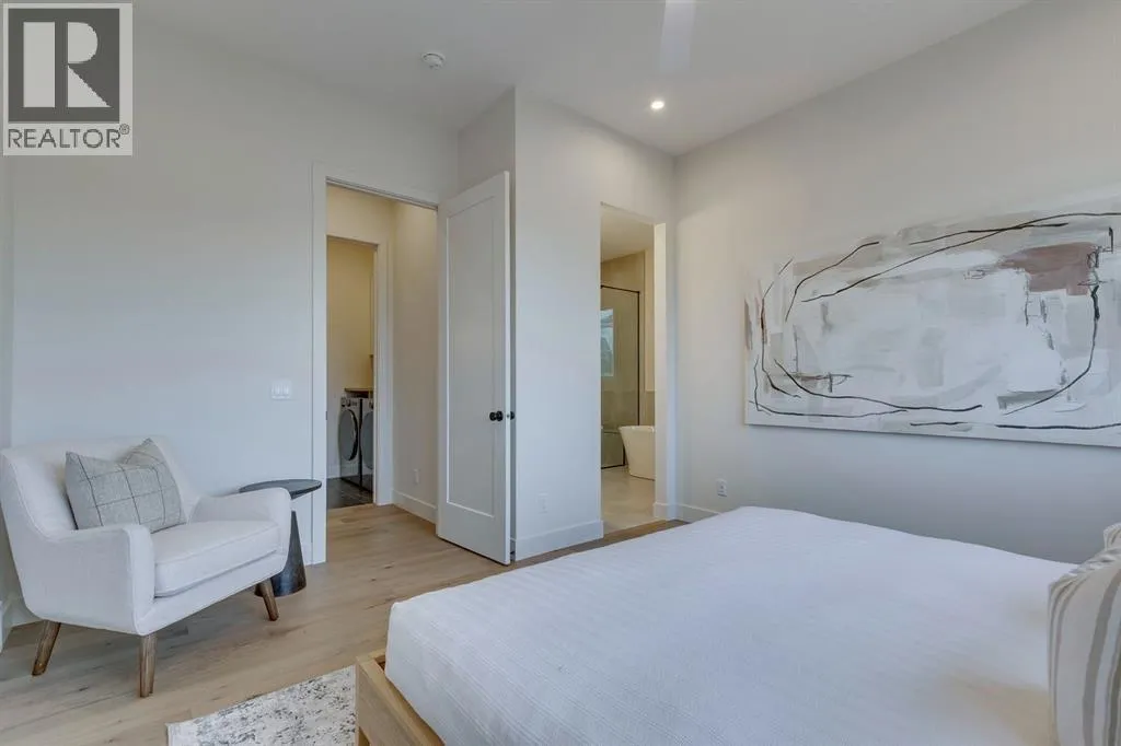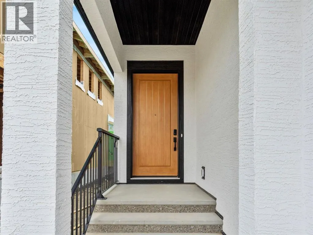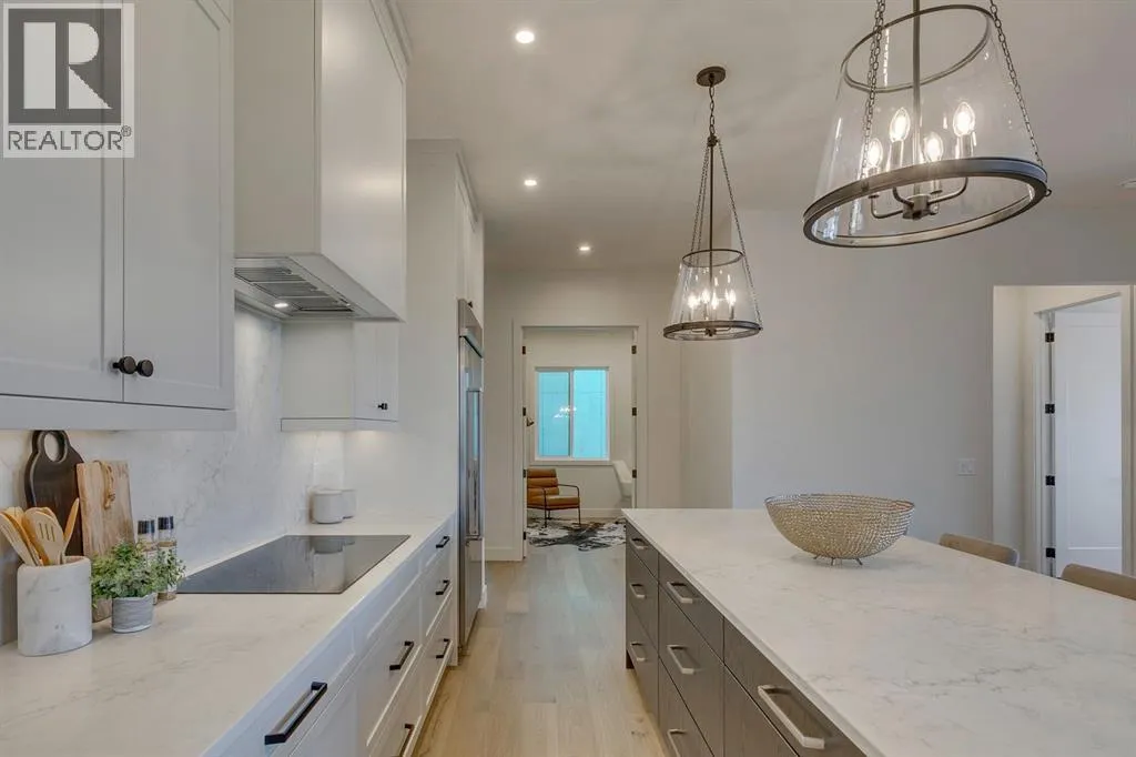 OPEN HOUSE THIS SUNDAY, NOVEMBER 16th FROM 1:00 - 4:00 PM........Nestled in the heart of Calgary's prestigious Mahogany Estates, this brand-new custom-built, 3,200 sq ft bungalow by Baywest Homes redefines lakeside living. With exclusive access to a semi-private dock and beach, this home offers an unparalleled lifestyle in one of the city's most sought-after lake communities. The main level, spanning nearly 1,700 square feet, boasts soaring nine-foot ceilings and wide plank luxury hardwood flooring in natural wood tones, creating a warm and inviting ambiance. The open-concept design seamlessly integrates the living, dining, and kitchen areas, making it perfect for both entertaining and everyday living. The kitchen is a chef's dream, featuring full-height white cabinetry, a striking oversized dark island, and a high-end appliance package that includes a high-end Kitchen Aid fridge-freezer and built-in oven with a convention microwave. Quartz countertops extend as a sleek backsplash, complemented by designer lighting and a butlerâs pantry equipped with a bar sink and beverage fridge. The living room, with its elegant feature fireplace, opens onto a north-facing deck overlooking serene green space, complete with a gas line for effortless outdoor grilling. The master suite is a private retreat, offering a spa-like en-suite with heated tile floors, an oversized shower, a freestanding soaker tub, dual vanities, and a private water closet. A spacious walk-in closet and adjacent laundry room add to the convenience and luxury of this space. The main floor also includes a private office with glass French doors, a well-appointed mudroom, and a walk-in closet. Descending to the fully finished basement, you'll find a large recreation room, a family room, two generously sized bedrooms, and a full bathroom with heated floors. The home is thoughtfully designed with ample storage and numerous upgrades, including tankless hot water and triple-paned windows. The attached triple garage , with its 14-foot ceilings, offers ample space for a car lift and is equipped with 220V for a vehicle charging station. This property is a masterpiece of design and functionality, offering the perfect blend of luxury, comfort, and convenience. With its prime location and exclusive amenities, lakeside living in Mahogany has never been more enticing. (id:27476)