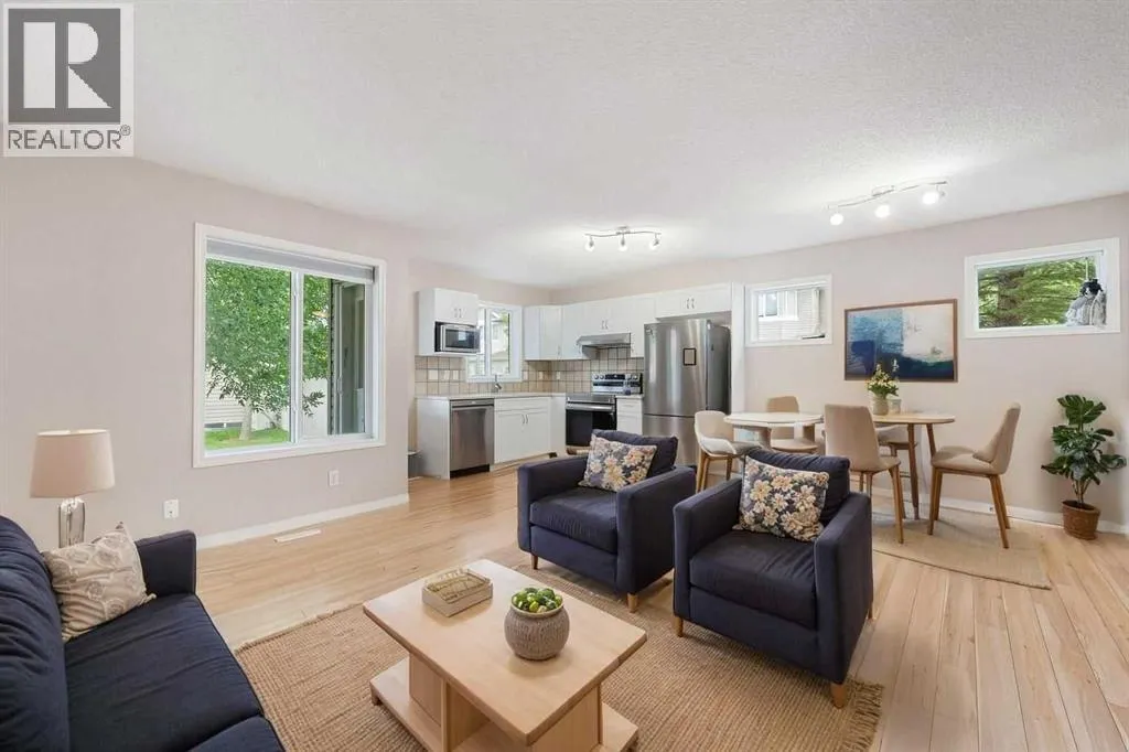 Welcome to this beautifully updated 4-bedroom, 2.5-bath corner-unit townhouse in the family-friendly community of Royal Oak. Offering a smart layout across all three levels, this home provides comfort, convenience, and style in a low-maintenance settingâperfect for families, first-time buyers, or anyone seeking a move-in ready home close to lifeâs essentials. Step inside to find a bright, open-concept main floor with laminate flooring throughout and a freshly renovated kitchen featuring upgraded cabinetry and stainless steel appliances. The kitchen seamlessly connects to the spacious living and dining areas, creating an inviting space for daily living and entertaining. A convenient 2-piece powder room completes the main floor. Upstairs, youâll find three generously sized bedrooms, including a sunny primary suite with a large walk-in closet and direct access to a well-appointed 5-piece bath. This bathroom is cleverly designed with dual accessâensuring privacy for the primary suite while remaining easily accessible to the other two bedrooms via the main hallway. The fully finished basement extends your living space with a fourth bedroom, complete with a private 4-piece ensuiteâideal for guests, teens, or a home officeâplus plenty of storage for seasonal items or hobbies. Enjoy outdoor time on your private patio that backs onto a quiet, shared green spaceâwithout the hassle of yardwork, as landscaping is professionally maintained. The shared driveway leads to your single attached garage, and visitor parking is conveniently nearby. Located close to everything you needâschools, playgrounds, Royal Oak Shopping Centre, the YMCA, LRT station, bus lines, and major routesâthis home offers a balanced lifestyle with unbeatable convenience. Donât miss your opportunity to own a spacious, well-kept home in one of NW Calgaryâs most desirable neighbourhoods! (id:27476)