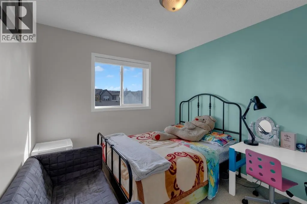 This modern home is located in one Calgary's most desirable communities, offering convenient access to parks, playgrounds, schools, shops, and Stoney Trail. This 4 bedroom, 2.5 bathroom home is fully developed with over 1800 square feet of living space on 3 levels. MAIN floor: LIVING ROOM features a gorgeous gas brick fireplace framed by built-in shelving, laminate wood flooring, built-in shelves, and large front window that fills the space with natural light. The KITCHEN showcases maple cabinetry, an island with breakfast bar perfect for casual meals, laminate wood floors, and lots of cupboard space. Enjoy looking out the large window facing the backyard. A spacious DINING ROOM sits just off the kitchen, where patio doors open to a sunny deck. Completing this level is a HALF BATHROOM with classic pedestal sink. UPPER floor: The large PRIMARY BEDROOM includes a walk-in closet. There are TWO ADDITIONAL well-sized BEDROOMS. A spacious FOUR-PIECE bathroom is centrally located for easy access. BASEMENT: This fully developed space has cork flooring, an additional FOURTH BEDROOM with built-in desk. The FAMILY/MEDIA ROOM is wired for surround sound making it perfect for movie nights, a games area, or a quiet retreat. A full THREE-PIECE BATHROOM is found on this floor. Front load washer and dryer is located in the LAUNDRY/UTILITY ROOM. EXTERIOR: An east-facing backyard with a DECK off the house, complete with a GAS BBQ line, and PRIVATE PARKING for one vehicle on the property. The roof has been replaced within the last 5 years. Just a minute stroll and you'll find a park and playground - perfect for families or just to sit and relax. Meander over to Fish Creek Park, Sobey's, Dollar Store, Tims, Bull & Finch pub. Great location, great home, QUICK POSSESSION and let's not overlook an AMAZING VALUE! Call your Realtor to book a showing. (id:27476)