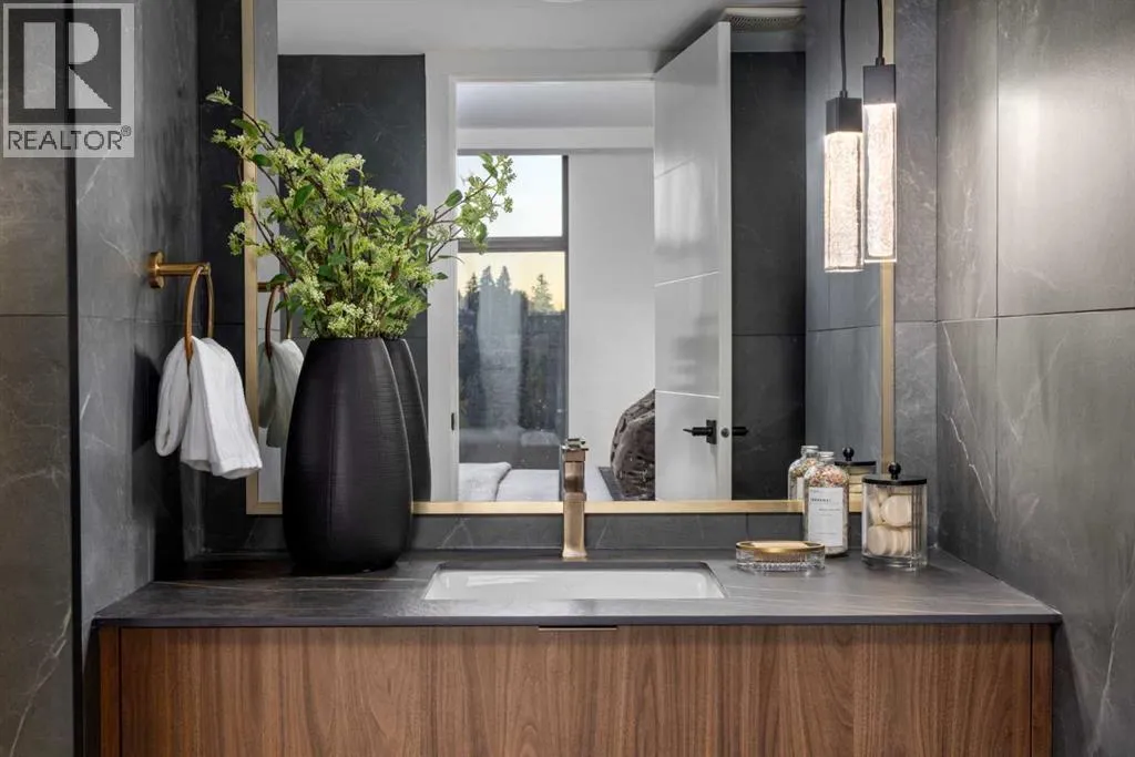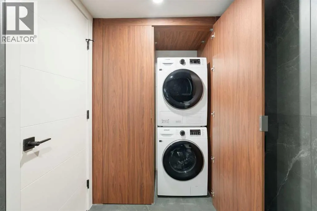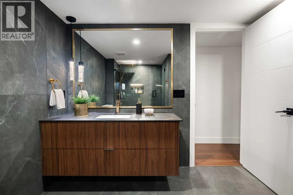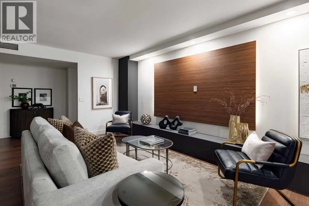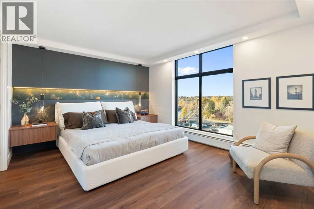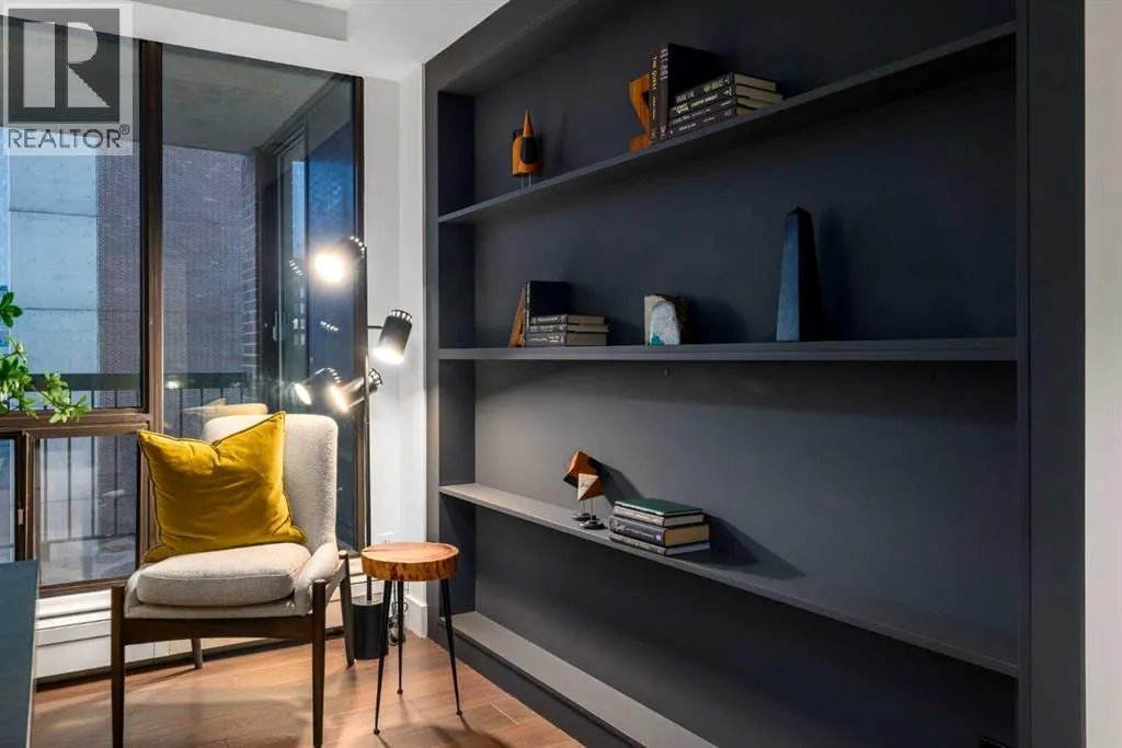 If youâre seeking elevated urban living in Calgary, this stunningly updated corner suite at Roxboro House in Calgary's MIssion district delivers sophistication, style, and sweeping city and river views.Beautifully reimagined with a modern open-concept design, this home is ideal for both daily living and entertaining. The showstopping kitchenfeatures custom-built cabinetry crafted from premium materials, including Dekton countertops with a waterfall island, a stylish appliance package with wall oven, and a Zephyr wine cooler. The layout easily accommodates both a formal dining area and a welcoming living room, each framed by breathtaking downtown vistas.The den offers an inspiring setting to work from home by day and a cozy retreat by night, softly illuminated by the glow of city lights. A luxurious three-piece bathroom showcases striking 2x4 tilework and refined fixtures. A sleek laundry closet is discreetly tucked away for convenience. The principal bedroom comfortably fits a king-sized bed and features an artist hand-painted feature wall with gold accents, adding a touch of bespoke elegance to the serene atmosphere. Enjoy tranquil river and mountain views complimented by the vibrancy of the city. A walk-in closet and beautiful four-piece ensuite complete this restful retreat. The second bedroom is equally impressive, offering a dramatic downtown skyline view. Step onto the private deck from the living or dining area and take in the ever-changing cityscape. Design details throughout include Delta faucets, statement lighting furnished by Cartwright Lighting, and luxury Coretec vinyl plank flooring, blending comfort and high design seamlessly.Roxboro House remains one of Calgaryâs most distinguished addresses, offering 24-hour concierge and security, premium amenities including a pool, fitness centre, and social spaces, and an unbeatable riverfront location in the heart of Mission. This residence includes ample in-suite storage, a secure locker, and convenient pa rking, all accessible by two elevators.Enjoy effortless walkability to parks, pathways, groceries, and Calgaryâs finest dining and boutique shopping. Every detail of this exceptional home has been curated to offer refined comfort, style, and distinctionâthe ultimate expression of urban chic living (id:27476)