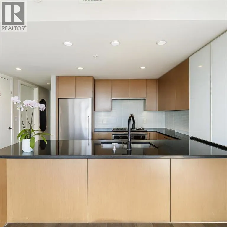 Bright 1 Bed + Den with 180° City & Mountain Views â Luxury Living in Luna Beltline!Bright and stylish 1 bed + den south-facing condo featuring an open layout, built-in desk, and modern kitchen with quartz countertops, gas cooktop, and full-height cabinets. Floor-to-ceiling south windows fill the home with light and showcase breathtaking 180° downtown and mountain views. Enjoy seamless indoor-outdoor living from your private balcony accessible from both the living room and bedroom. The primary suite offers a walkthrough closet and spa-inspired ensuite with soaker tub and rain shower. Includes in-suite laundry, A/C, titled heated parking, and storage locker. Luna residents enjoy top-tier amenitiesâfitness & yoga studios, steam room, lounge, guest suites, courtyard, and concierge. Steps to Co-op, 17th Ave, LRT, cafés, and parksâurban living at its best! (id:27476)