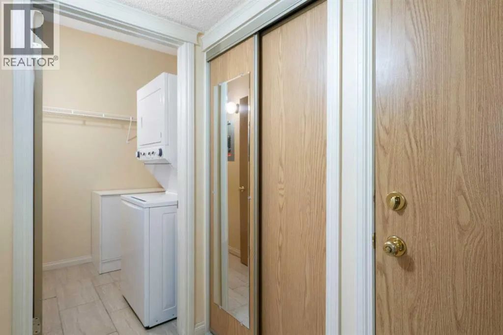 This well-maintained first-floor condo, featuring high ceilings, offers over 900 sq. ft. of living space in a concrete building. With easy access to the unit, it presents an ideal opportunity for investors seeking strong rental potential or for students looking to own their own property in a high-demand area. Located just a 5 minute walk to the University of Calgary, and close to the C-Train station, Foothills Hospital, Alberta Childrenâs Hospital, SAIT, Market Mall, University District, Brentwood Mall, and McMahon Stadium. Downtown Calgary is only a 10 minute drive away, and public transit is right outside the buildingâmaking this a top choice for students, medical professionals, and commuters. The unit has been updated with newer flooring and fresh paint. It features a galley-style kitchen with plenty of cabinet and counter space, stainless steel appliances, and a spacious living room that opens to a private balcony with views of McMahon Stadium and Foothills Athletic Park. With two large bedrooms, each with walk-in closets, and an in-suite laundry room with extra storage, this unit is both practical and desirable for tenants. It also includes a heated underground parking stall (#29). Condo fees cover water, heat, sewer, garbage, underground parking, professional management, exterior maintenance, insurance, and reserve fund contributions. Donât miss the opportunity to make it yours, book your private showing today! (id:27476)