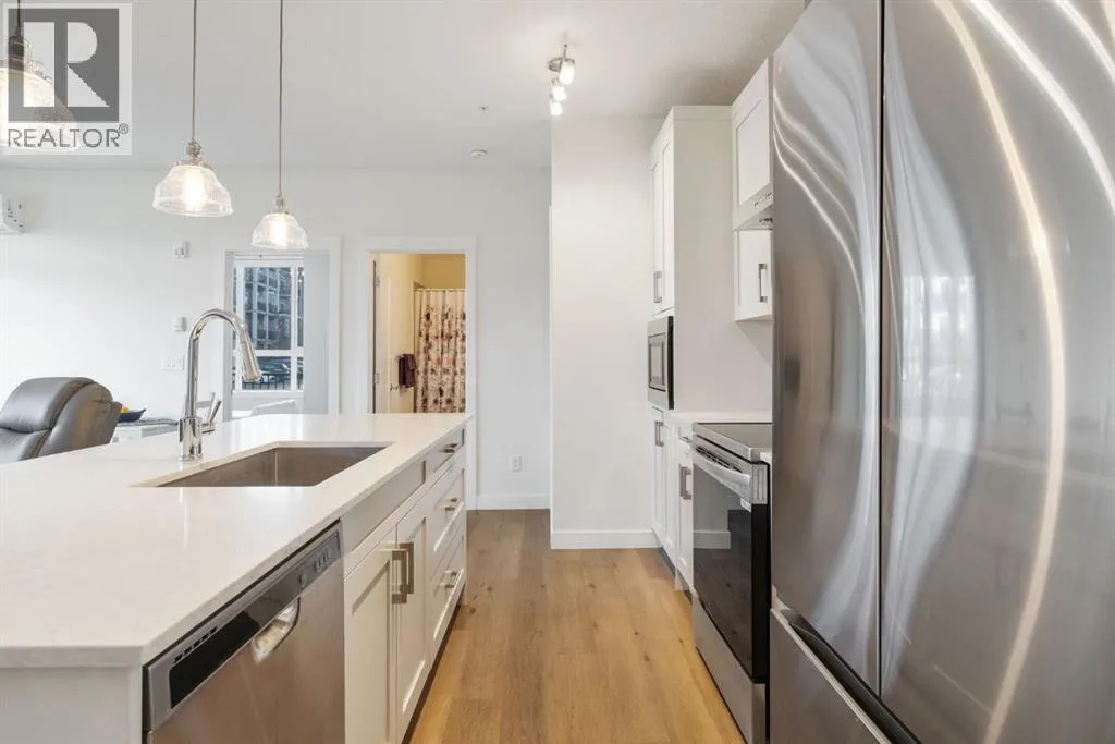Welcome to Unit 117! This incredible gated, walk-up unit is arguably the nicest in the building. Upon entering, you are greeted by a bright, spacious open floor plan featuring a chefâs upgraded kitchen, complete with a built-in microwave, gorgeous centre island, and ample cabinetry for exceptional storage. The unit also includes a custom wall pantry and a cleaning/laundry closet, providing even more function and convenience to your space. Off the living room, youâll find a sizeable primary bedroom with a deep two-sided closet and a spa-inspired 4-piece ensuite with linen cupboard. Completing this unit is a second bedroom and a 4-piece main bathroom. Additional highlights include central A/C for year-round comfort, a titled underground parking stall with storage right in front, and a private walk-up patio overlooking a beautiful green space with plenty of visitor parking right outside the gate. Located just steps from shops, grocery stores, coffee shops, and public transit, this unit offers the perfect blend of luxury and convenience in pet-friendly Walden Place. Donât miss your chance to call this stunning unit home â schedule a private tour today! (id:27476)