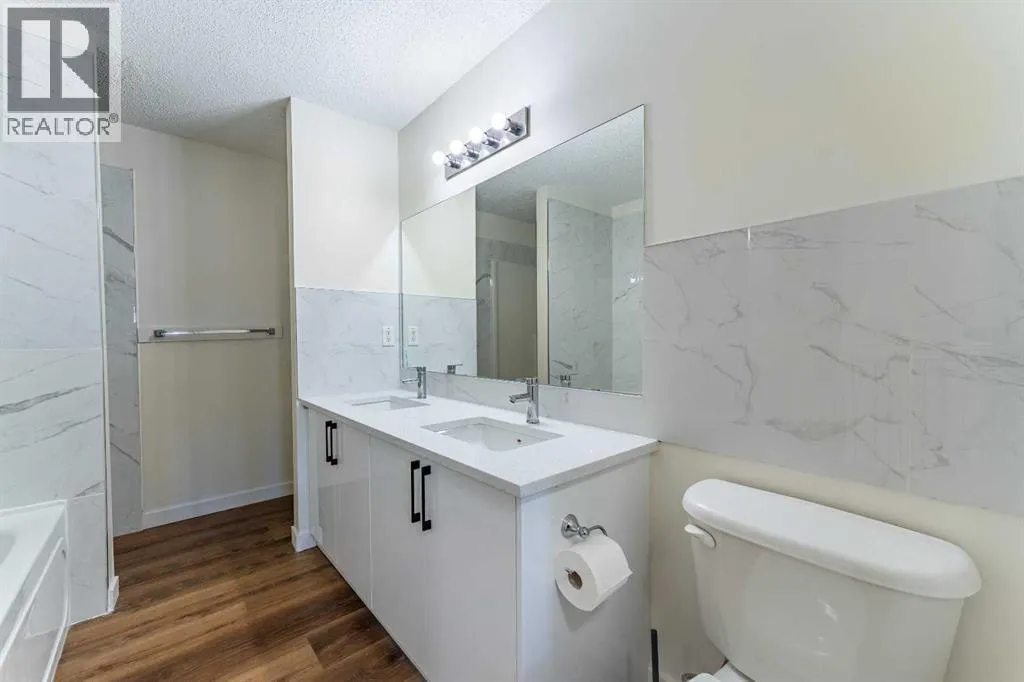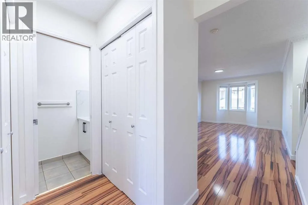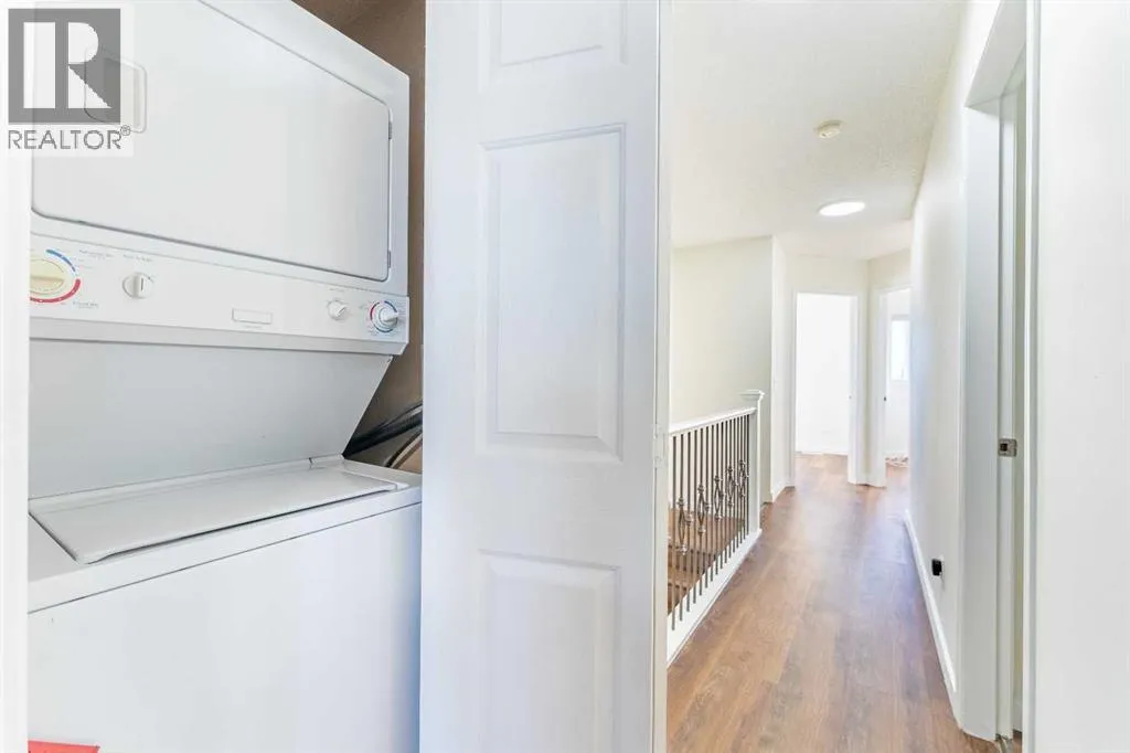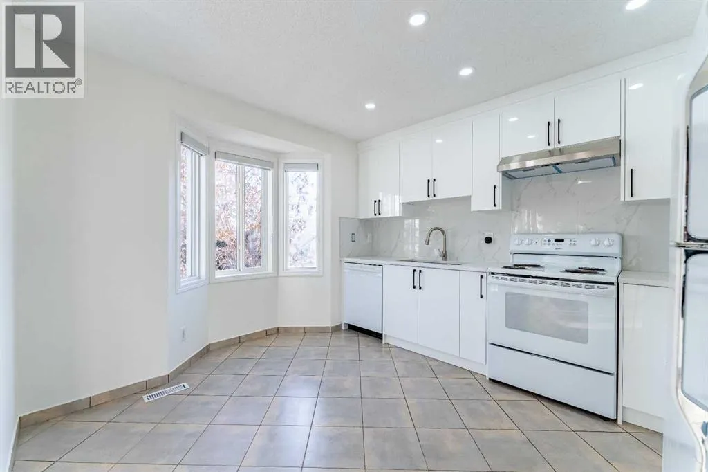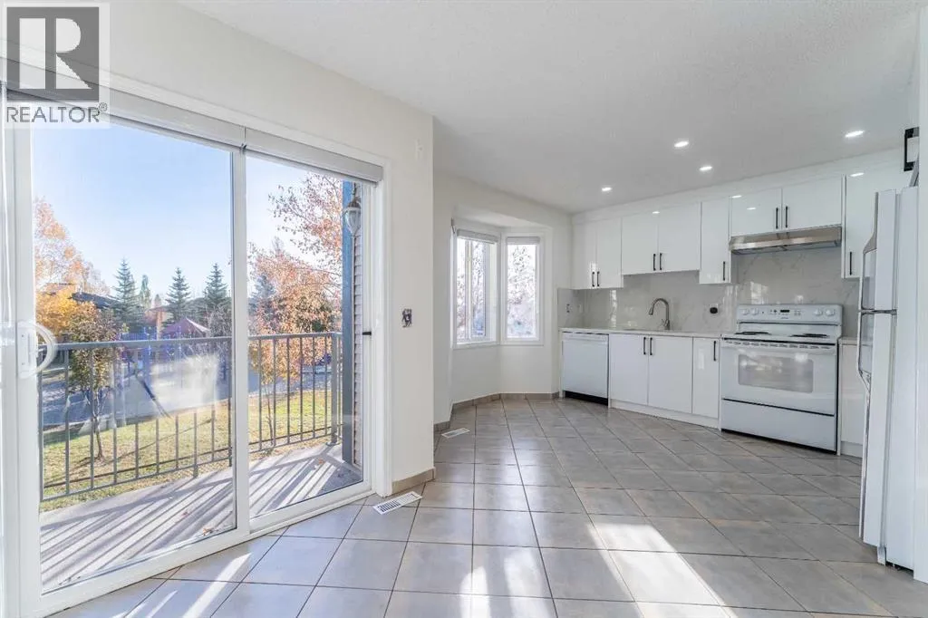 Welcome to this beautiful 2-storey townhouse in the desirable community of Evergreen, backing onto a green space and playground. This bright home features 3 bedrooms and 1.5 bathrooms, freshly painted throughout. Enjoy a modern new kitchen with updated cabinets, quartz countertops, new backsplash, new dishwasher, new hood fan, new blinds and a one-year-old stove. The kitchen and dining area open to a balcony facing the green space, perfect for relaxing. The spacious living room is filled with natural light. The main floor also includes a new half bathroom with an updated toilet, cabinet, and quartz countertop. Upstairs offers three bedrooms, a renovated 5-piece bathroom with dual sinks, new cabinets, and quartz countertop, plus convenient laundry. The heated double tandem garage provides ample space and includes a patio facing the green space. Additional upgrades include a new furnace (Sept 2024) and hot water tank (August 2025). Located close to public transit, schools, shopping (Shoppes at Bridlewood), and quick access to Stoney Trail. A must-see home! Donât miss this completely renovated move-in-ready home! (id:27476)