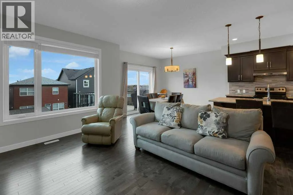 Welcome to this stunning home in the highly sought-after Evanston community!This beautiful property offers 4 bedrooms and 3.5 bathrooms, featuring a walkout basement with a wet bar and a bright bonus room on the upper level that can be customized for your lifestyle needs. With nearly 2,400 sq. ft. of living space, including the basement, this home perfectly combines comfort, style, and functionality.9 feet Main Floor:Step inside to a warm and elegant atmosphere. The main floor is airy and well-lit, with a large open-concept kitchen and dining area. The spacious kitchen boasts built-in appliances, upgraded maple cabinets, high-end granite countertops, and a perfectly sized kitchen island. A spice kitchen is included to accommodate all your cooking needs. The kitchen opens seamlessly to the dining room, which features large windows allowing plenty of natural light, and flows into a spacious living roomâperfect for entertaining or relaxing with family. Step outside to enjoy beautiful evenings on the deck.8 feet Upper Level:The primary bedroom is a true retreat with a 4-piece ensuite and walk-in closet. Two additional generously sized bedrooms share a 4-piece bathroom. The bonus room is filled with natural light and making it a perfect space to relax after a long day. Laundry room with built-in shelving for extra storage9 feet Basement:The walkout basement features a wet bar, large windows, and plenty of space for entertaining or additional living areas. A large bedroom provides the perfect space for guests or a private retreat.Additional highlights Features:⢠New roof (2025), siding (2025), garage door(2025), gutters(2025)and air conditioning(2022)⢠Conveniently located 5â10 minutes from parks, transit, T&T Supermarket, Costco, restaurants, and more⢠Easy access to Stoney TrailThis home is move-in ready and perfectly designed for modern living. Donât miss outâschedule your showing today! (id:27476)