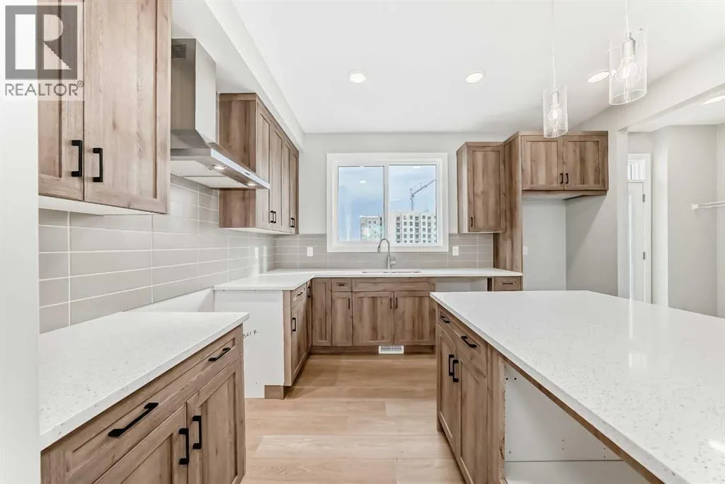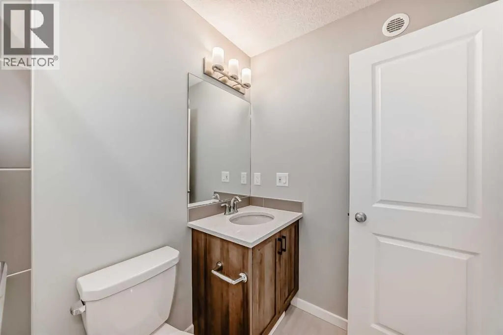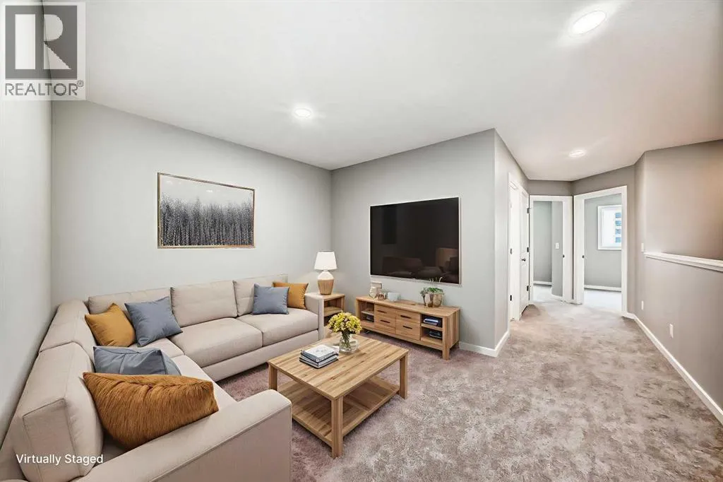ON A CORNER LOT WITH NO NEIGHBOURS TO ONE SIDE, THIS HOME FEELS LIKE BREATHING ROOM.1,608 square feet of balanced designâbright where you want it, private where you need it.The main floor opens with intention: a POCKET OFFICE tucked near the entry, a living area that feels natural to gather in, and a kitchen built for everyday rhythm. The ISLAND WITH BREAKFAST BAR draws people in, while QUARTZ COUNTERS and a CHIMNEY HOOD FAN over the electric range add quiet refinement. A window over the sink catches morning light from the east, and a rear deck off the mudroom makes stepping outside effortless. FRONT YARD SOD IS ALREADY IN, so thereâs nothing left to finishâjust move in and start living.Upstairs, a BONUS ROOM sits between the bedrooms, offering separation without distance. The master is calm and bright, the laundryâs upstairs (where it should be), and the layout just flows. In the basement, a SEPARATE SIDE ENTRY and bathroom rough-in keep future options openâwhether that means guests, income, or expansion.And then thereâs the setting. RANGEVIEW BY GENSTAR IS DESIGNED AROUND CONNECTION and calmâtree-lined boulevards, planned parks, and pathways that will eventually link every pocket of the neighbourhood. On this stretch of Bartlett Crescent, the streetâs already quiet, the sun sets to the west, and the whole place feels like the kind of new community people will want to stay in.Everythingâs finished, the keys are ready, and the timing couldnât be easier. ⢠PLEASE NOTE: Kitchen appliances are included, and will be installed prior to possession. (id:27476)