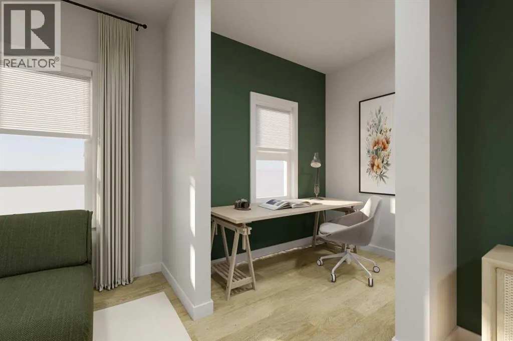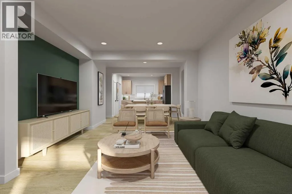 MAYBE ITâS THE SOUTHERN LIGHTâOR HOW THE KITCHEN FLOWS INTO THE REAR PATIOâBUT EVERYTHING ABOUT THIS HOME JUST WORKS. The Magnolia model at Lavender Hill in Rockland Park delivers a smart layout, timeless finishes, and a sense of space that fits real life.The curb appeal is crisp and modern, with a SOUTH-FACING FRONT that keeps the main living areas bright throughout the day. Built into the natural slope of the hill, the design gives you a ground-level TANDEM DOUBLE GARAGE below and a second floor LIVING AREA THAT WALKS-OUT TO GRADEâsomething rarely found in a townhome. Inside, warm flooring and a neutral palette keep the focus on light and flow. The PRIVATE FRONT ENTRYârare for attached homesâsets the tone for a plan that values function as much as style.On the main floor, the living, dining, and kitchen connect naturally. Toasted-almond LVP runs wall to wall, grounding the space in a calm, durable texture. The kitchen pairs designer QUARTZ COUNTERS with a modern subway tile backsplash, and a CENTRAL ISLAND that works as prep space, command centre, and casual dining spot. A rear entry door leads directly to BACK PATIOâperfect for grilling, morning coffee, or catching the evening light. Between the living room and stairs, a wide pocket of space adds a smart spot for a desk, bookshelf, or bar cart without interrupting flow.Upstairs, three bedrooms maximize privacy and efficiency. The PRIMARY BEDROOM includes an ENSUITE and WALK-IN CLOSET, while two secondary bedrooms, a main bath, and UPPER-FLOOR LAUNDRY handle the rest of daily life without wasted steps.ROCKLAND PARK amplifies it all: a northwest community designed around connection, outdoor living, and everyday convenience. Scenic pathways link to parks and playgrounds, while plans for a RESIDENTS-ONLY CLUBHOUSE include an OUTDOOR POOL, FITNESS CENTRE, and courts. With mountain views to the west and quick access to both Crowchild and Stoney Trail, itâs a community that balances retreat and reach in equal me asure.Possession is ready for the end of Novemberâa fresh start, in a brand-new home that makes practical look good. Book your showing today! ⢠PLEASE NOTE: Photos are Virtual Renderings â fit and finish may differ on finished spec home. Interior selections and floorplans shown in photos. (id:27476)