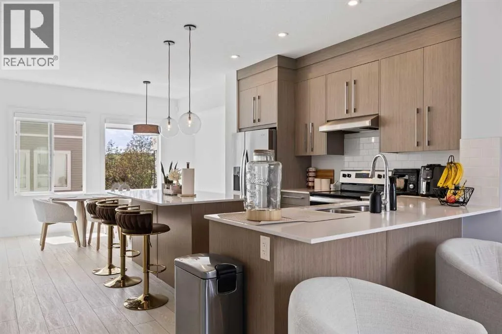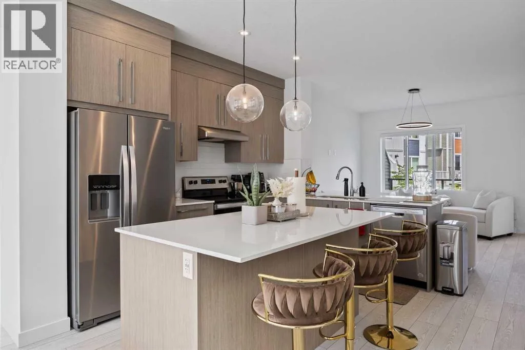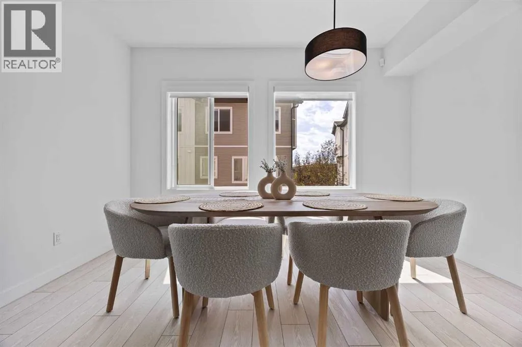 Step into a lifestyle of comfort, versatility, and connection in this thoughtfully designed 4-bedroom, 2.5-bath townhome located in the heart of Pine Creek, a peaceful and well-connected community where nature blends seamlessly with convenience.As you enter the home, youâre welcomed by a bright and spacious main-floor bedroom. Whether you choose to turn it into a private home office, an energizing workout room, or a cozy guest space, this room offers the flexibility to suit your needs. Picture yourself starting your mornings here with a quiet coffee and a moment of calm before taking on the day.Upstairs, the open-concept living and dining area is filled with natural light, creating a warm and inviting atmosphere. The kitchen is both modern and functional, perfect for hosting gatherings or simply enjoying family meals. Step out onto the large glass-enclosed balcony, where you can enjoy your morning tea or relax in the evening. With views overlooking a serene central courtyard, youâll appreciate the added privacy and sense of escape.The upper level includes three more generously sized bedrooms, including a tranquil primary suite with its own ensuite bathroom. Every detail in this home is designed to support a balanced lifestyle, offering both open spaces to connect and quiet corners to recharge.An oversized double attached garage provides ample space for parking, storage, or even a workshop. Whether you're stowing away seasonal gear or keeping your vehicle sheltered through the winter, the extra room is a valuable bonus.Located just moments from shopping, schools, parks, and playgrounds, this home also offers easy access to the Somerset C-Train Station for those who prefer to travel by transit.This townhome in Pine Creek is more than just a place to live. It is a place where comfort, style, and everyday convenience come together to create something truly special. (id:27476)