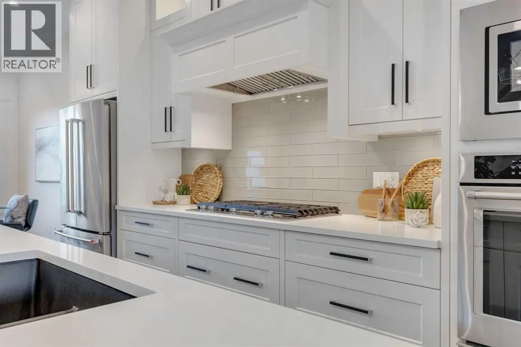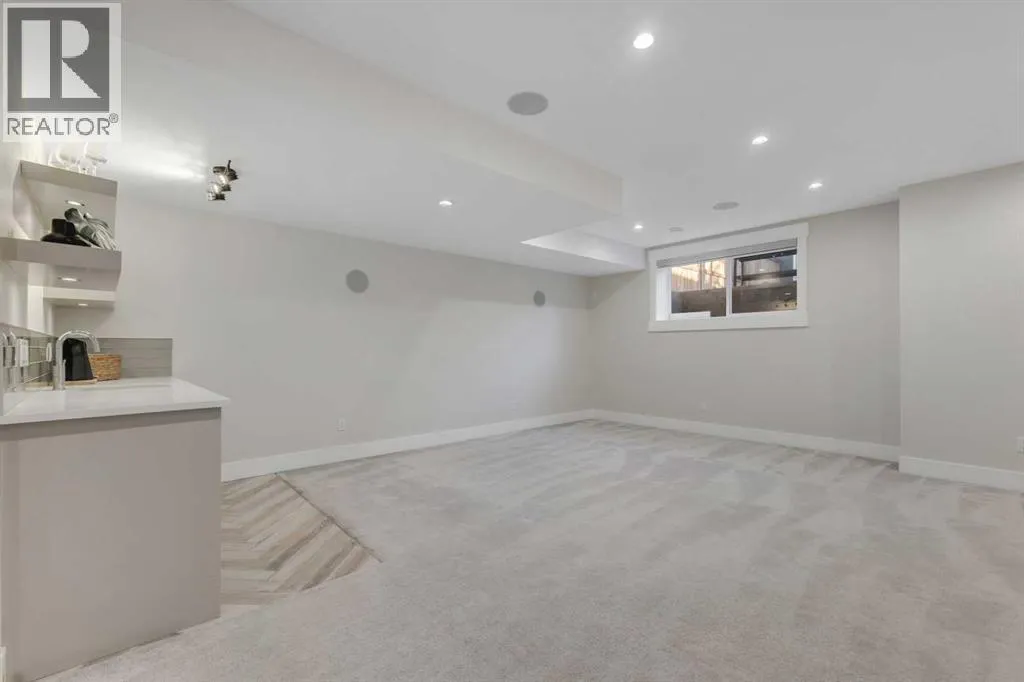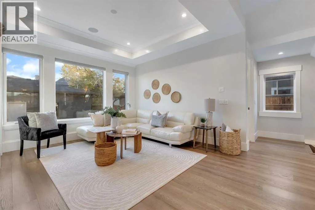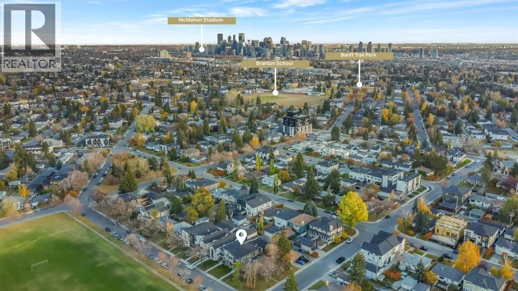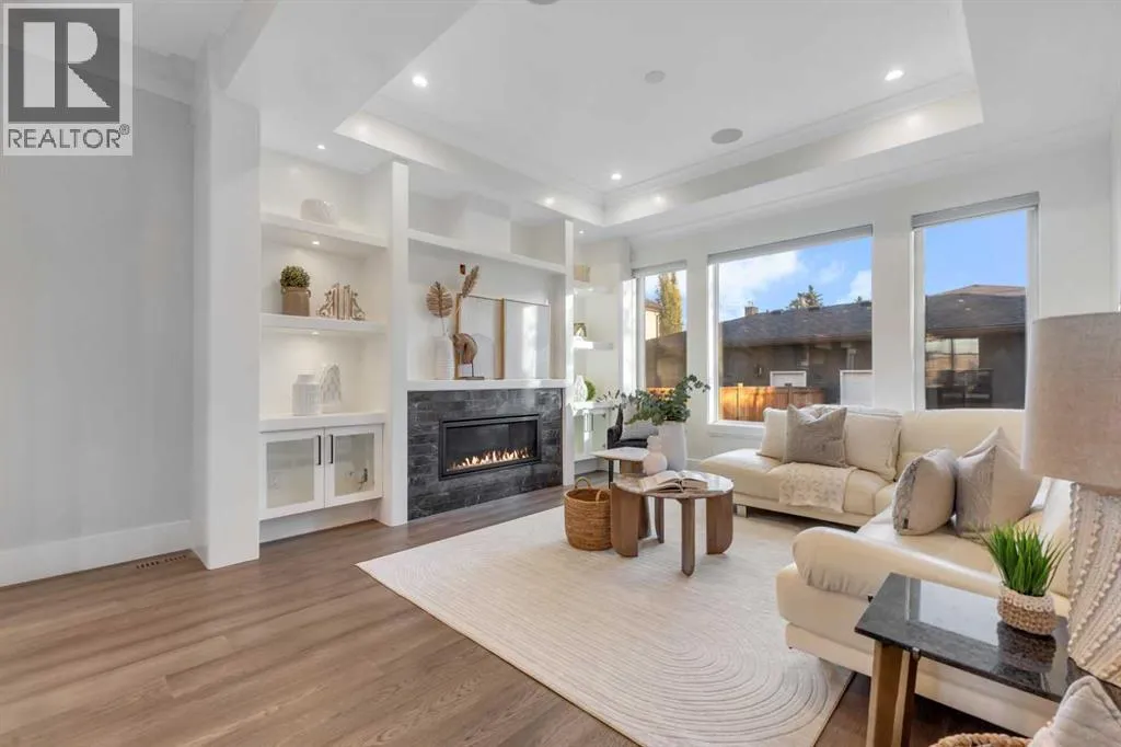 Sophisticated and thoughtful, this modern infill in BANFF TRAIL faces a GREEN SPACE and delivers everyday function wrapped in elevated style. With over 2,700 sq. ft. of living space, four bedrooms, a fully finished basement, and a double garage, itâs a home that balances upscale design with everyday practicality â ideal for busy professionals and growing families alike. Step inside and youâll feel an immediate sense of light and space. The open main floor was made for both living and entertaining, blending clean lines with warm finishes that make the home feel grounded and welcoming. The front foyer opens into a bright front dining area that sits perfectly under a designer light fixture with wide windows that fill the room with sunlight. At the center, the kitchen takes the spotlight with its oversized island, full-height cabinetry, quartz countertops, and gas range. Every detail feels intentional â from the sleek subway backsplash to the deep drawers for storage. Itâs a kitchen that works as hard as it looks good. Beyond the island, the living area brings everyone together with a feature fireplace framed by built-in shelving and oversized windows overlooking the backyard, with a high tray ceiling with built-in LED lighting for added ambience. The atmosphere is equal parts polished and comfortable, creating the kind of space where kids can play while the adults unwind. The rear mudroom adds real-life practicality with custom built-ins, hooks, and exterior access to the backyard and garage â keeping everything organized and out of sight. A discreet powder room sits off the hallway, rounding out the main floor. Upstairs, the layout keeps family life in mind. The primary suite spans the front of the home, creating a private retreat with soft light, a walk-in closet, and a spa-like ensuite featuring a freestanding soaker tub, dual vanities, and a glass-enclosed shower. Two additional bedrooms are bright and generous in size, each with good closet space. The upstairs la undry room makes day-to-day living simple, with lots of storage options and laundry sink. Downstairs extends the homeâs versatility even further. A large rec room with built-in media centre and full wet bar offers the perfect setup for movie nights, weekend entertaining, or a play space that can evolve as kids grow. Thereâs also a fourth bedroom and full bathroom, ideal for guests, teenagers, or a quiet home office. Set in the heart of Banff Trail, this home sits in one of Calgaryâs most connected inner-city communities. Families love the quick walk to schools, green spaces, and community parks, while professionals appreciate the easy access to the UofC, McMahon Stadium, Foothills Medical Centre, and SAIT. The Banff Trail LRT station is just minutes away, offering a quick train ride to downtown or the university. The neighbourhoodâs quiet, tree-lined streets and established charm create a sense of calm right in the city, perfect for those who want space for family life without giving up convenience. (id:27476)