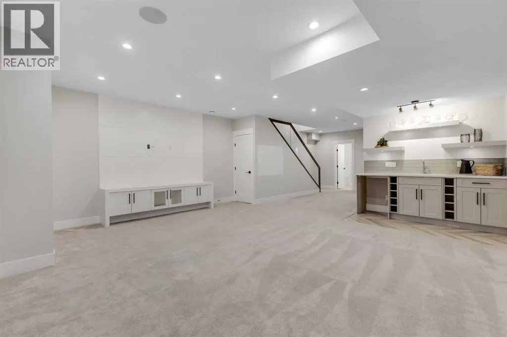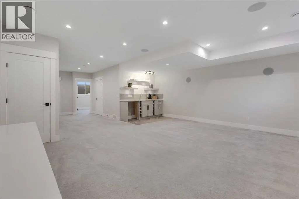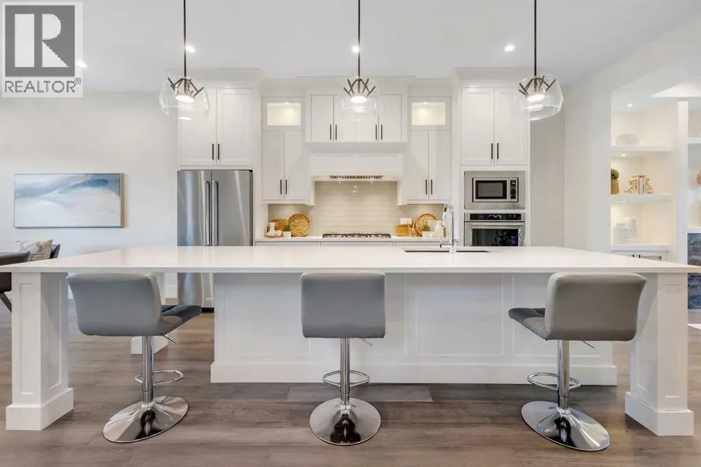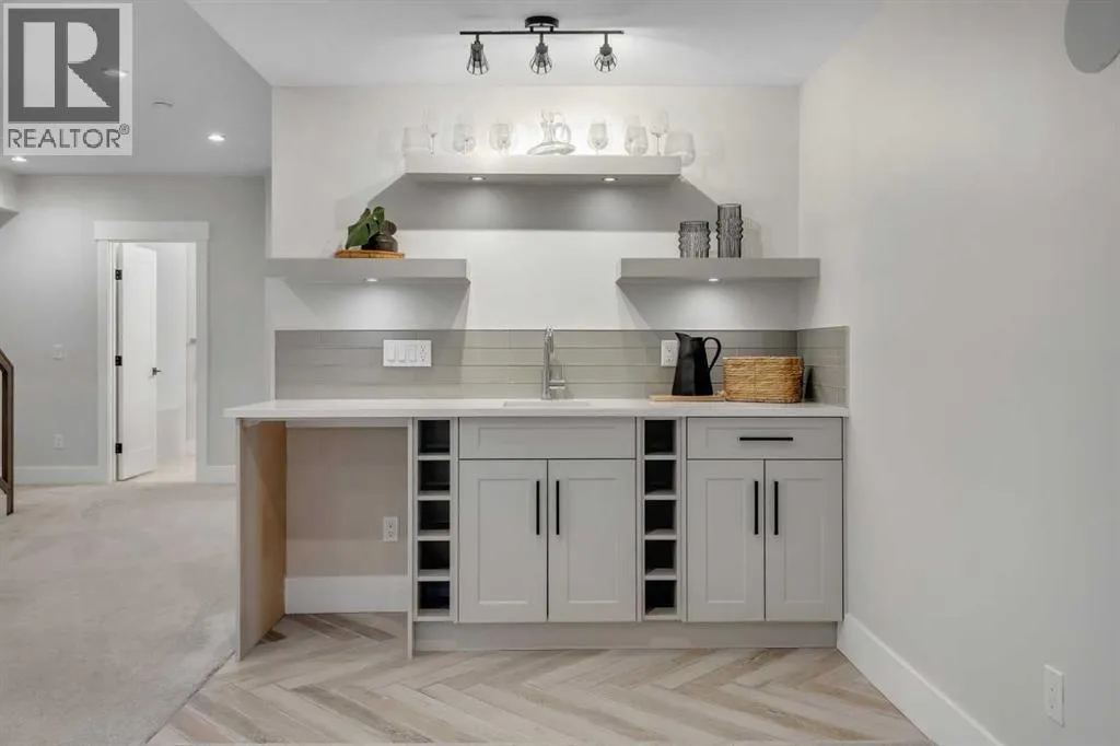 Sophisticated and thoughtful, this modern infill in BANFF TRAIL faces a GREEN SPACE and delivers everyday function wrapped in elevated style. With over 2,700 sq. ft. of living space, four bedrooms, a fully finished basement, and a double garage, itâs a home that balances upscale design with everyday practicality â ideal for busy professionals and growing families alike. Step inside and youâll feel an immediate sense of light and space. The open main floor was made for both living and entertaining, blending clean lines with warm finishes that make the home feel grounded and welcoming. The front foyer opens into a bright front dining area that sits perfectly under a designer light fixture with wide windows that fill the room with sunlight. At the center, the kitchen takes the spotlight with its oversized island, full-height cabinetry, quartz countertops, and gas range. Every detail feels intentional â from the sleek subway backsplash to the deep drawers for storage. Itâs a kitchen that works as hard as it looks good. Beyond the island, the living area brings everyone together with a feature fireplace framed by built-in shelving and oversized windows overlooking the backyard, with a high tray ceiling with built-in LED lighting for added ambience. The atmosphere is equal parts polished and comfortable, creating the kind of space where kids can play while the adults unwind. The rear mudroom adds real-life practicality with custom built-ins, hooks, and exterior access to the backyard and garage â keeping everything organized and out of sight. A discreet powder room sits off the hallway, rounding out the main floor. Upstairs, the layout keeps family life in mind. The primary suite spans the front of the home, creating a private retreat with soft light, a walk-in closet, and a spa-like ensuite featuring a freestanding soaker tub, dual vanities, and a glass-enclosed shower. Two additional bedrooms are bright and generous in size, each with good closet space. The upstairs la undry room makes day-to-day living simple, with lots of storage options and laundry sink. Downstairs extends the homeâs versatility even further. A large rec room with built-in media centre and full wet bar offers the perfect setup for movie nights, weekend entertaining, or a play space that can evolve as kids grow. Thereâs also a fourth bedroom and full bathroom, ideal for guests, teenagers, or a quiet home office. Set in the heart of Banff Trail, this home sits in one of Calgaryâs most connected inner-city communities. Families love the quick walk to schools, green spaces, and community parks, while professionals appreciate the easy access to the UofC, McMahon Stadium, Foothills Medical Centre, and SAIT. The Banff Trail LRT station is just minutes away, offering a quick train ride to downtown or the university. The neighbourhoodâs quiet, tree-lined streets and established charm create a sense of calm right in the city, perfect for those who want space for family life without giving up convenience. (id:27476)