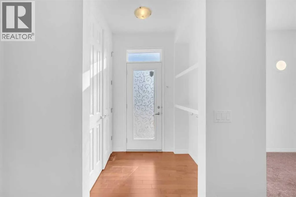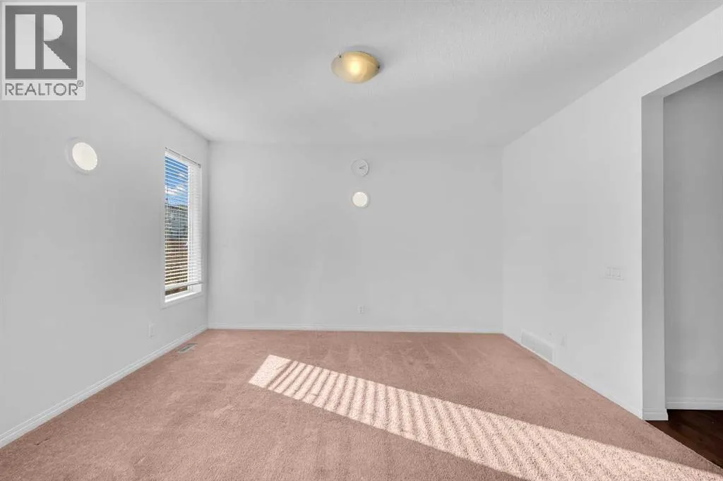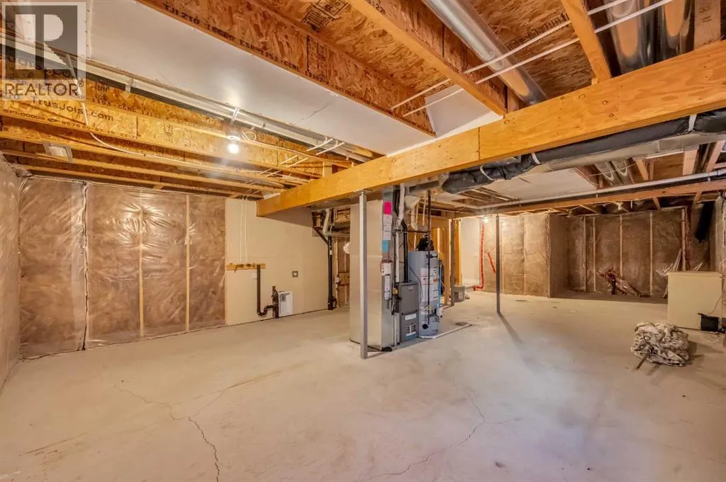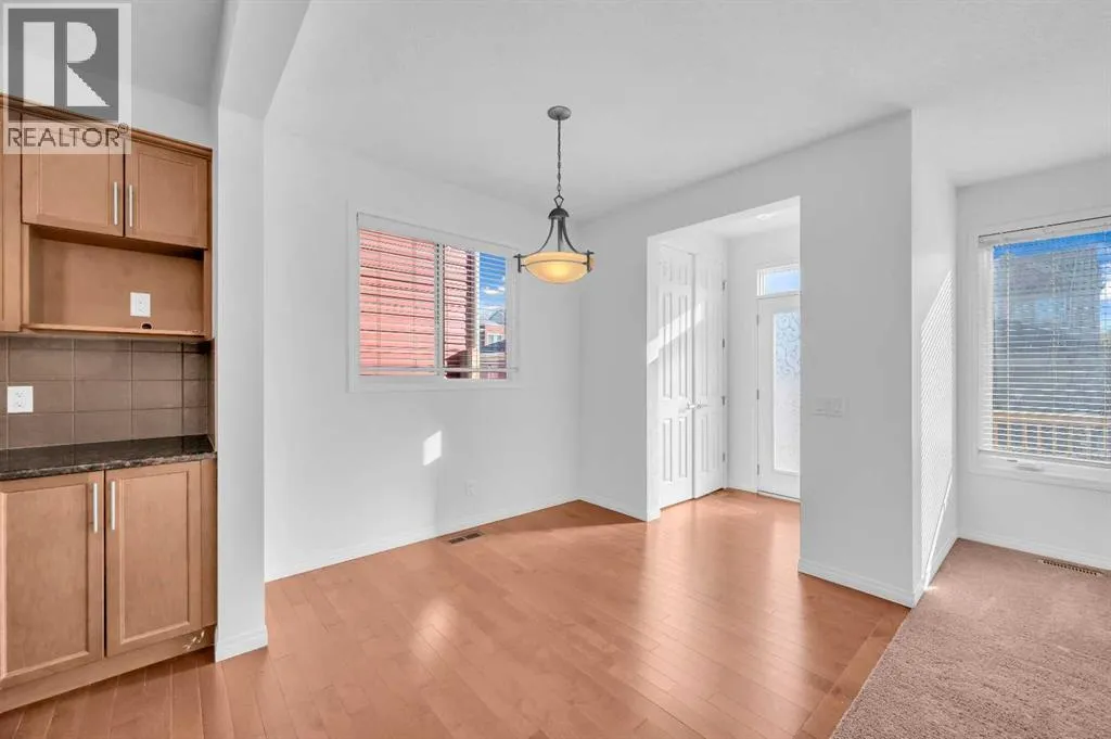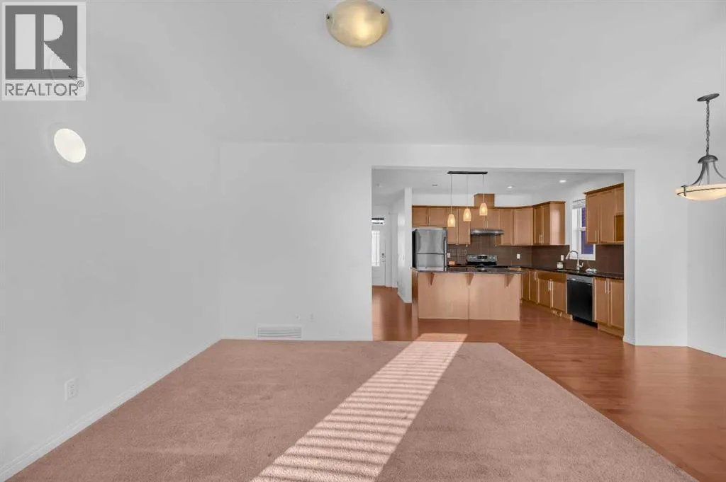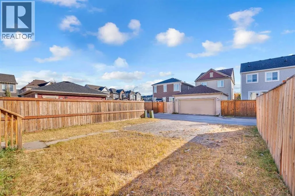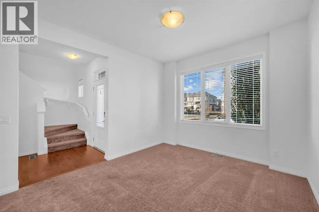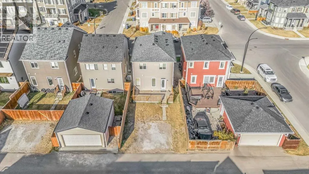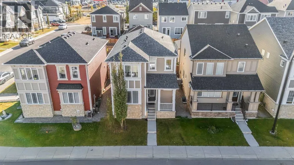 This bright two-story has great curb appeal, a sunny fenced backyard, and a huge deck for BBQs and summer evenings. A handy front den/office sits right off the foyerâperfect for working from home. The main floor offers an open layout with hardwood floors, big windows, and a spacious kitchen with long granite counters, an oversized island with pendant lighting, tile backsplash, and stainless steel appliances, all flowing to the dining and living areas for everyday living and entertaining. Upstairs youâll find a comfortable primary bedroom with walk-in closet and full ensuite, two additional bedrooms, a second full bath, and convenient upper-level laundry with Samsung front-load machines. The full basement with large windows and a bathroom rough-in is ready for your ideas. Stone accents and a covered front entry finish the look. Location is a win: steps to a playground, shopping plaza, bus stop, and the future school site. Quick possession availableâcome see it today. (id:27476)