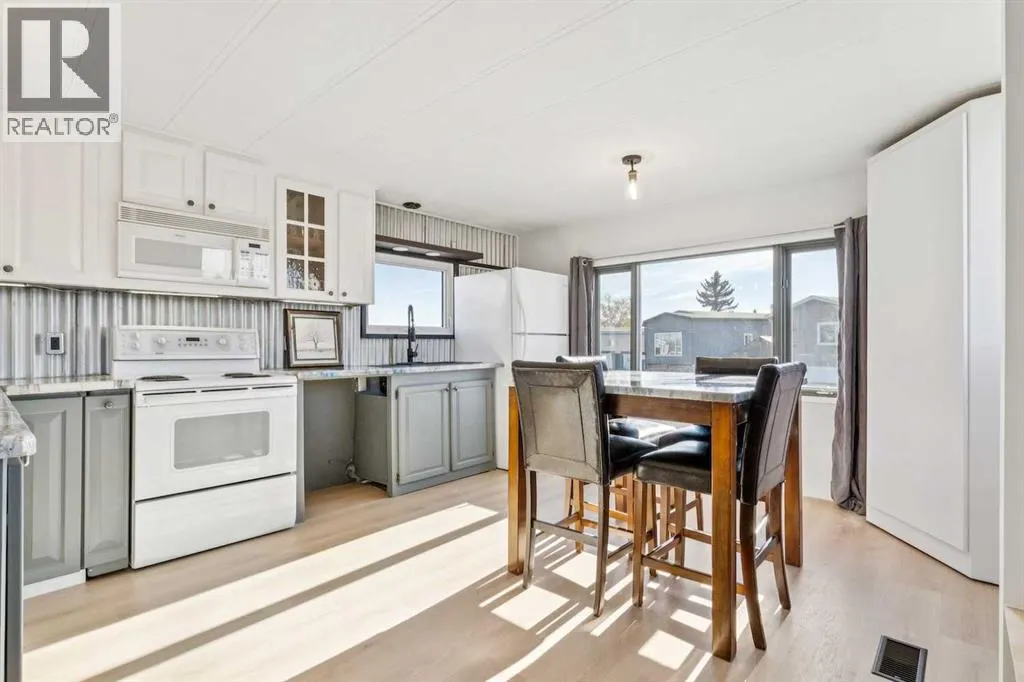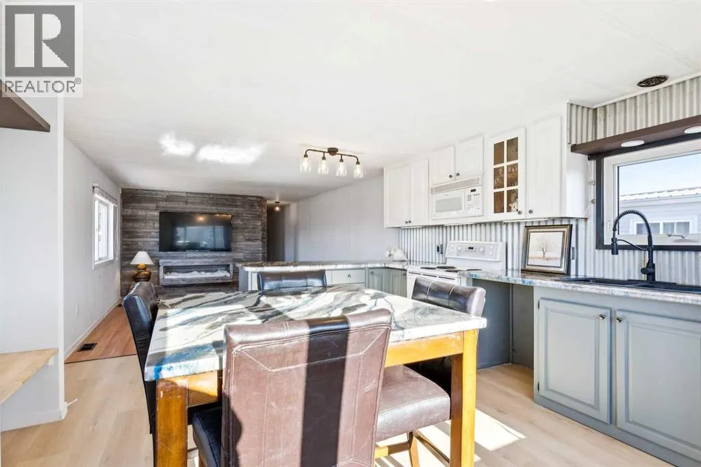 Experience affordable, adaptable living in Calgaryâs mobile home community at 6220 17 Avenue SE #364. This home is ideally located for EASY DOWNTOWN access, with quick routes to major roadways, schools, shopping, and public transit, plus the Calgary Village on-site facilities that offer social and recreational options within the community. Fresh updates: even though the home was built in 1982, the exterior has been renovated with a metal roof, added insulation and vinyl siding and windows, giving it a refreshed, modern look and a welcoming vibe. This makes the home an excellent entry point for first-time buyers or downsizers seeking an affordable urban lifestyle. Three bedrooms, a four-piece bath, and a large kitchen connected to a spacious living room create a comfortable, livable layout. Notably, this unit is located in the last row, offering a rare, large land area adjacent to the lotâperfect for a variety of outdoor activities and future enhancements. Sit on your front deck an enjoy a mountain view. Also included is a large shed that provides extra storage. The lot fee covers water / sewer / trash and access to the clubhouse. The clubhouse is an amazing feature that has a hall, small kitchen, pool table, exercise room and playground. All of this helps bring the community together.Donât miss this opportunity to own in Calgaryâschedule your private showing today and see how this mobile home and Calgary Village Community Centre can fit your needs. (id:27476)