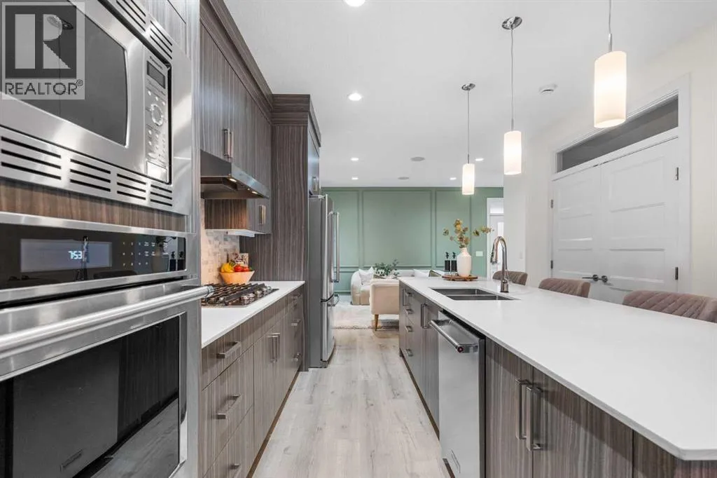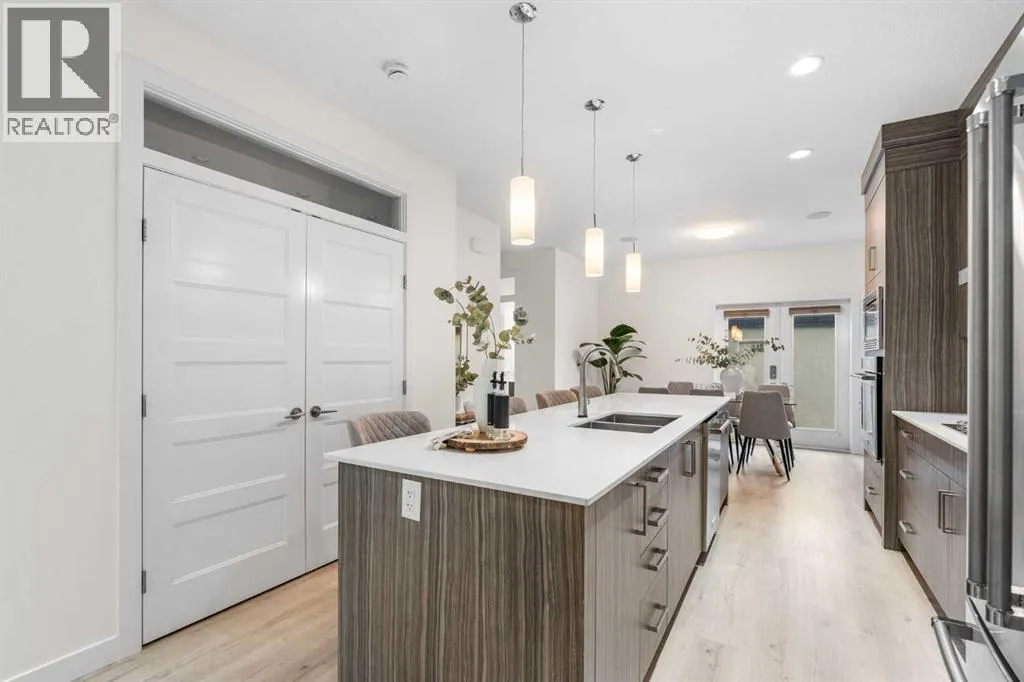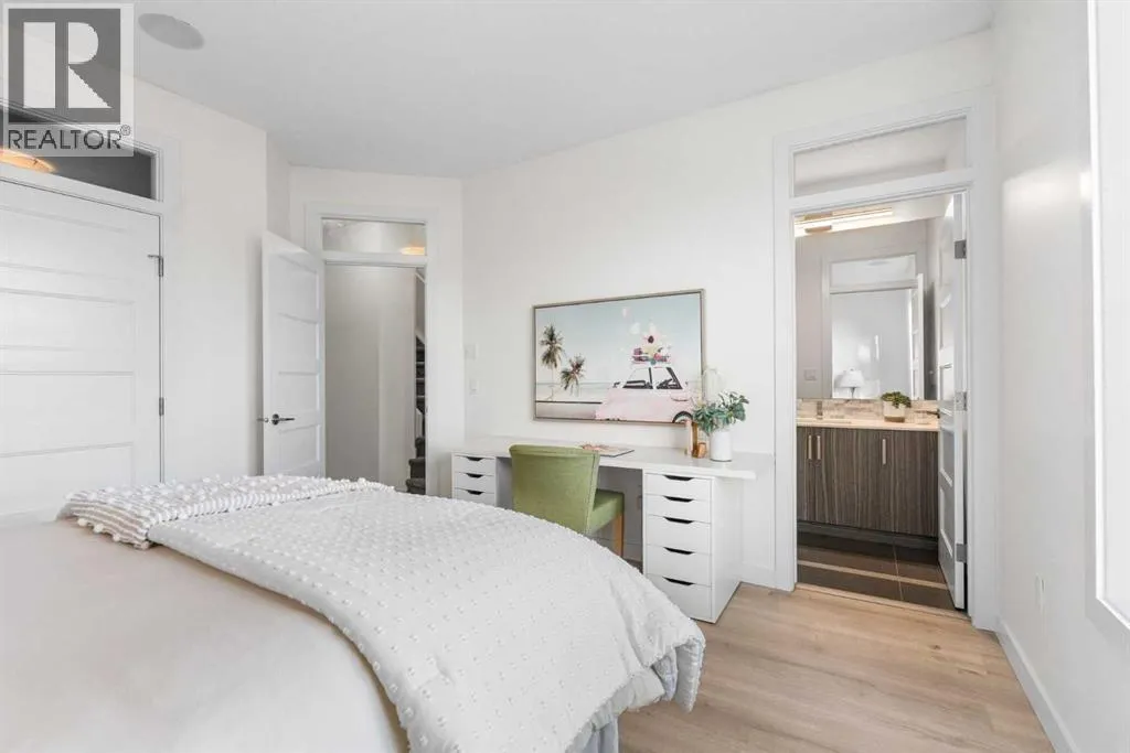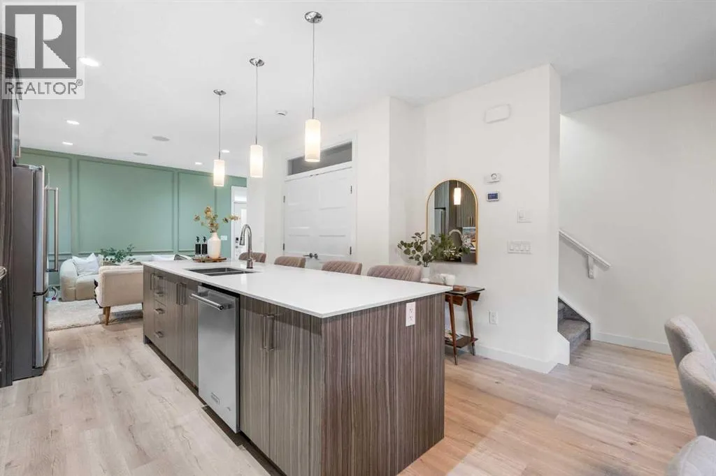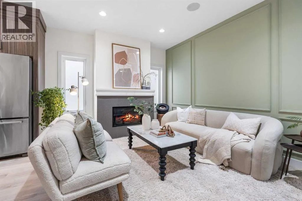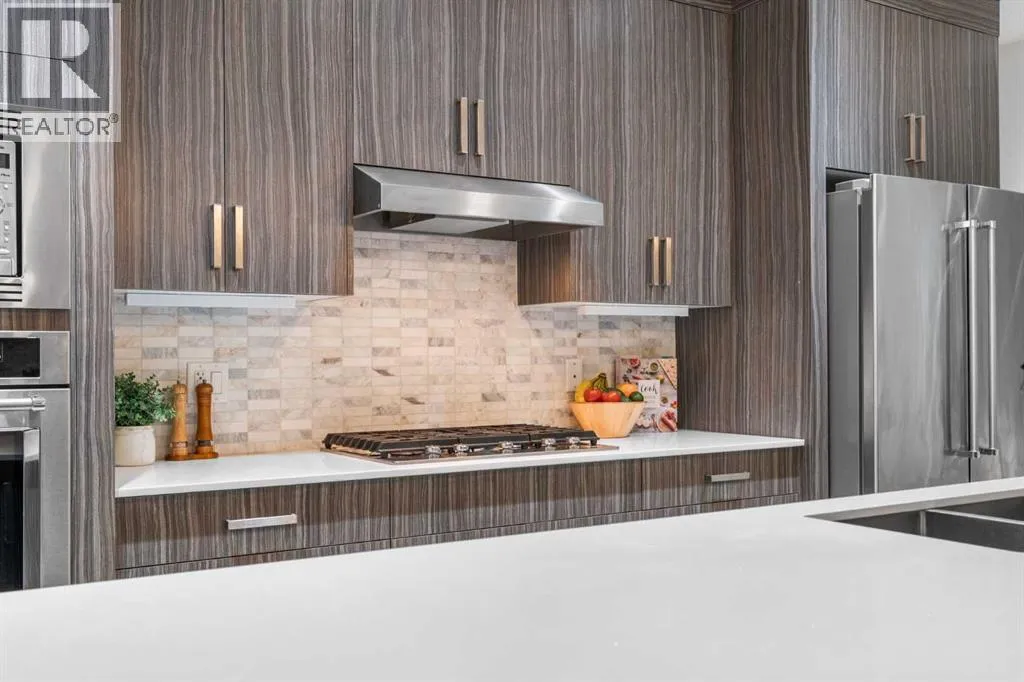 OPEN HOUSE: SUNDAY, NOV 16 FROM 1-3PM. Welcome to this fully upgraded townhouse in Crescent Heights offering 4 bedrooms, 4.5 bathrooms, and over 2,600 SQFT of developed living space. This duplex-size townhouse provides ample living space with the benefit of low maintenance living. As you step inside you are greeted with 9ft ceilings on every level, NEW luxury vinyl plank flooring, and a thoughtful open-concept layout. The main floor showcases a stylish living room with custom wall moulding, a cozy gas fireplace, and a dining room that is great for entertaining. The gourmet chefâs kitchen features floor-to-ceiling cabinetry, sleek quartz countertops, GAS range, built-in stainless steel appliances, large pantry, NEW designer backsplash, and an oversized island. A powder room completes this level. Upstairs, youâll find two large bedrooms, including one with its own ensuite, PLUS a second full bathroom. The spacious laundry room features a folding station, a sink, and ample storage, all conveniently located on this floor. The entire top level is dedicated to the PRIVATE primary suite, complete with a spacious bedroom, modern accent wall, massive walk-in closet, a luxurious 6pc ensuite with HEATED floors, PLUS a cozy lounge/bonus area with partial CITY SKYLINE VIEWS from your SOUTH and WEST windows. Built-in ceiling speaker throughout. The FULLY FINISHED basement features another bedroom, full 4pc bathroom, rec room, and storage. This property is TURN KEY. Additional upgrades include: Upgraded attic insulation, electronic locks on both front and back doors, new fan timers in bathrooms, AC & furnace servicing with duct cleaning. Added peace of mind with a complete building envelope overhaul. Outside, enjoy your private deck and single detached garage. Low condo fees of only $300/month make this home even more attractive. Nestled on a quiet, tree-lined street, with easy access the Bow River Pathway, Rotary Park, Crescent Heights Park, and the iconic McHugh Bluff lookout. W ith nearby schools, transit, coffee shops, and trendy restaurants, youâll have everything you need just steps from your door. (id:27476)