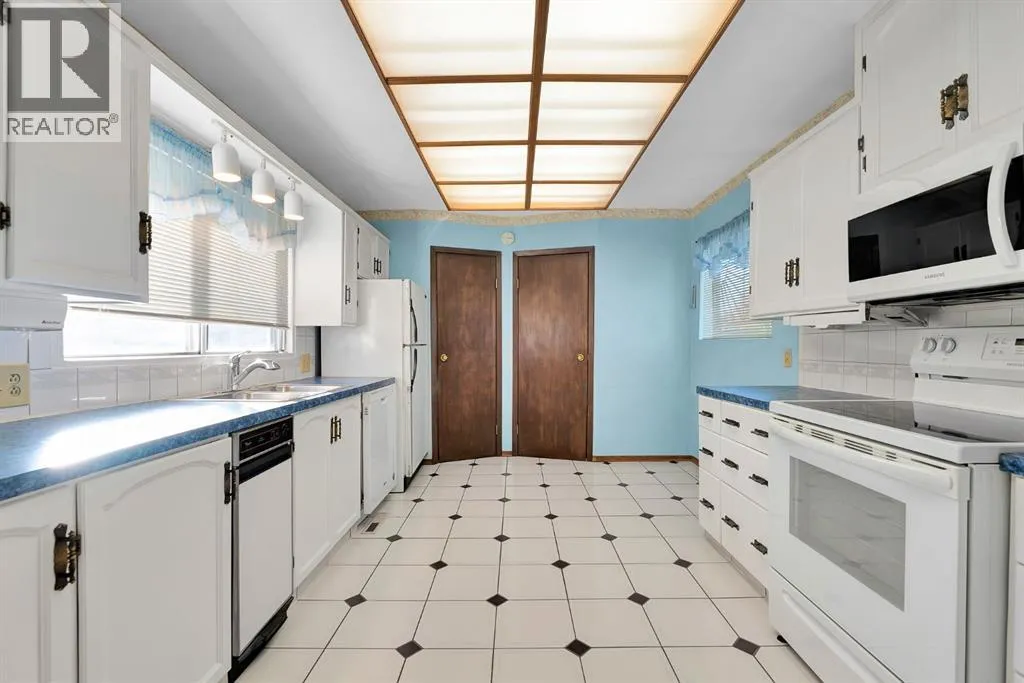Welcome to this well-cared-for bi-level home, ideally located on a generous 50' x 120' lot in a quiet cul-de-sac in the heart of Ogden. Enjoy exceptional privacy with no neighbours in front or to one sideâjust peaceful green space and open views. Plus, the future Green Line LRT will conveniently pass through Ogden, adding even more accessibility and value to this fantastic location. The main floor features a bright and spacious family room complete with a cozy fireplace, perfect for relaxing evenings. Adjacent is a large dining room featuring a beautiful built-in china cabinet, offering plenty of additional cabinet and display space, along with a charming built-in phone desk ideal for added storage or a compact workspace. The kitchen is functional and well laid out, with the laundry area conveniently located just off the kitchen for everyday ease. Two bedrooms on the main floor include a comfortable primary suite with a 2-piece ensuite, along with a full 4-piece main bathroom. The fully developed lower level offers even more living space, including a third bedroom, a 3-piece bathroom, a spacious recreation room with a second fireplace, and a bright sunroom. This level also provides direct access to the double attached garage, offering plenty of room for vehicles, storage, or workshop needs.Step outside to enjoy the expansive deck, perfect for entertaining or relaxing. Below the deck, youâll find an extensive enclosed storage areaâideal for tools, seasonal items, or outdoor equipment. The backyard also features a dedicated fire pit area, perfect for cozy evenings under the stars. The property includes a detached single garage currently set up as a workshop, plus rear lane access with ample fenced RV parking and a gate for easy access. Available for immediate possession and proudly offered for the first time, this unique and spacious home truly has so much to offer. Book your private showing today and experience it for yourself! (id:27476)
