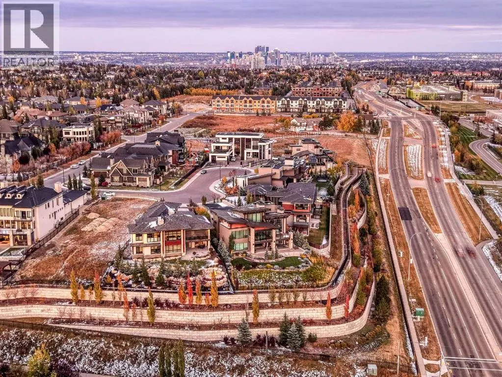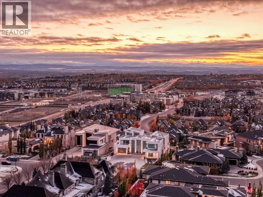 Perched gracefully above one of Calgaryâs most coveted communities, this extraordinary modern estate commands an expansive .39 acre (just under 17,000 square feet) lot in the prestigious enclave of Aspen Woods. Perfectly positioned to capture sweeping, panoramic views of the majestic Rocky Mountains, this architectural triumph by Bellaview Luxury Homes, in collaboration with the acclaimed Dean Thomas Design Group, offers a rare opportunity to own a custom residence where elevated design meets timeless sophistication. This extraordinary estate is designed for those who demand the very best in design, craftsmanship, and location. The gated driveway and striking exterior architecture set the tone for a home that is both sculptural and timeless, featuring a harmonious blend of glass, natural stone, and rich wood accents. The interior has been thoughtfully planned for both entertaining and everyday comfort, beginning with a grand entry veranda and impressive foyer that flows into a private office and an expansive great room enveloped by glass and connected to multiple covered terraces. The chef-inspired kitchen is the heart of the home, anchored by a dramatic island with seating for seven, a dining space for elaborate gatherings, a full walk-in pantry, and a discreet spice kitchen for effortless prep. A custom wet bar transitions seamlessly to the covered outdoor lounge and dining area for year-round al fresco living. The upper-level primary retreat embraces the mountains at every turn, with both the bedroom and its private 29â x 17â covered terrace oriented to capture sweeping mountain vistas. A spa-inspired ensuite and expansive walk-in closet. Three additional bedrooms each enjoy their own en-suites, while flowing seamlessly to a spacious family room and second covered deck as well as upper floor laundry room complete this level. Four fireplaces, thoughtfully placed with two on the main level and two on the upper level, enhance both the warmth and allure of this remar kable residence. The walkout lower level is an entertainerâs dream with a theatre room that includes a golf simulator, games room, yoga studio, gym, and a 5th bedroom with two full bathrooms. Step outside to your fenced backyard oasis with a sleek in-ground heated pool and multiple lounging terraces designed for sunset views. A heated triple-car garage, exceptional attention to detail, and the signature modern elegance of Bellaview Homes create a once-in-a-lifetime opportunity in one of Calgaryâs best communities. Nearby world-class schools include Rundle College, Webber Academy, and just steps from shopping (BlushLane/Starbucks/Safeway), dining, and endless amenities, this location also offers effortless access to Calgaryâs vibrant downtown core and the mountain escapes of Canmore and Banff. Floor plans are available upon request to qualified buyers and their realtors. The builder is pleased to offer a personalized approach, working closely with buyers to bring their dream home to life. (id:27476)