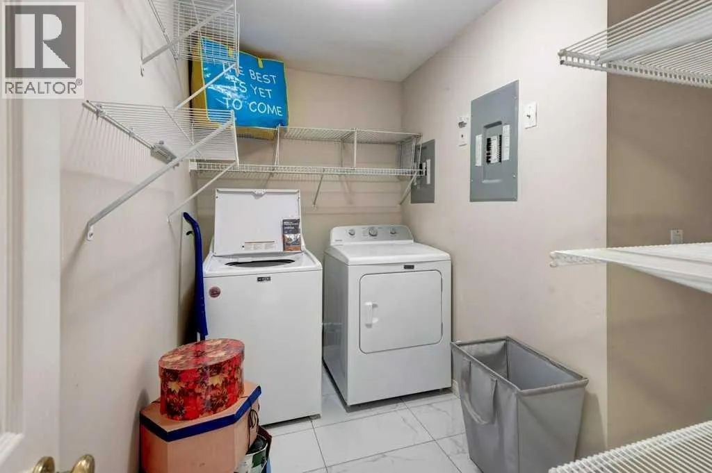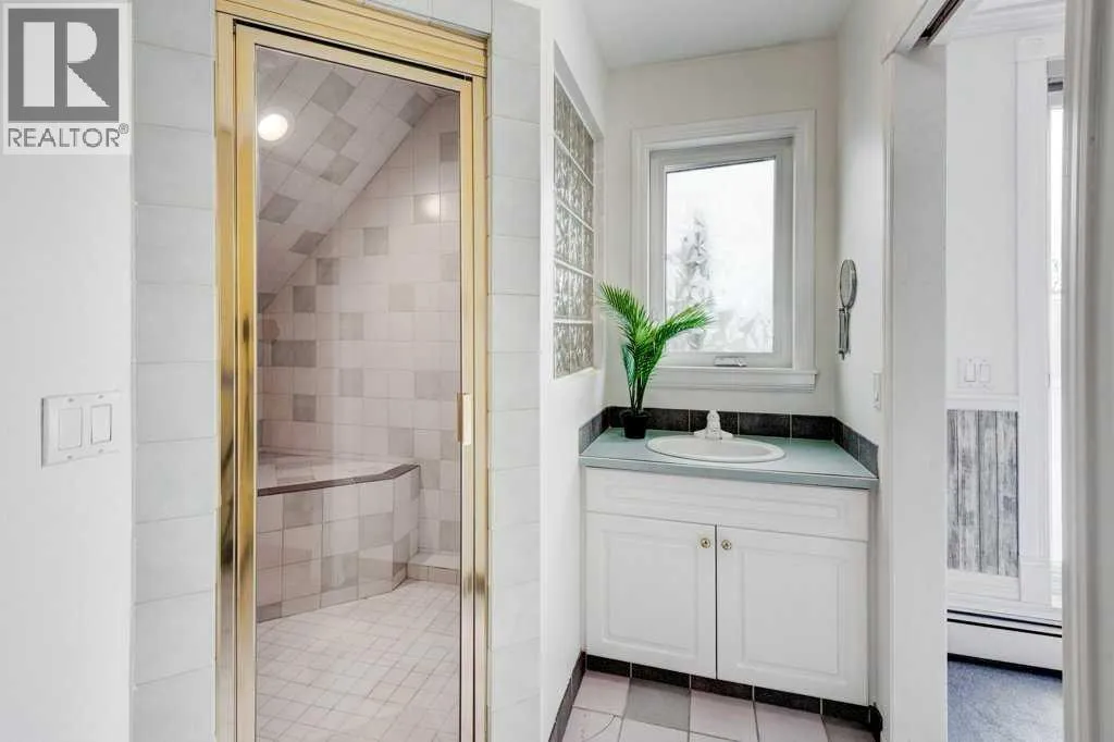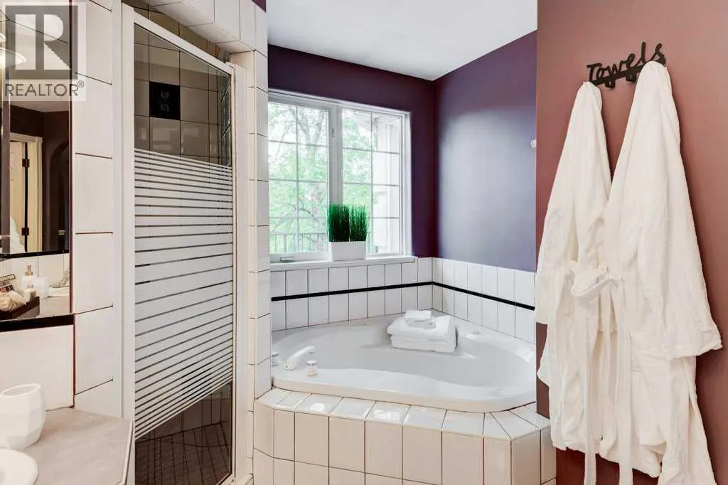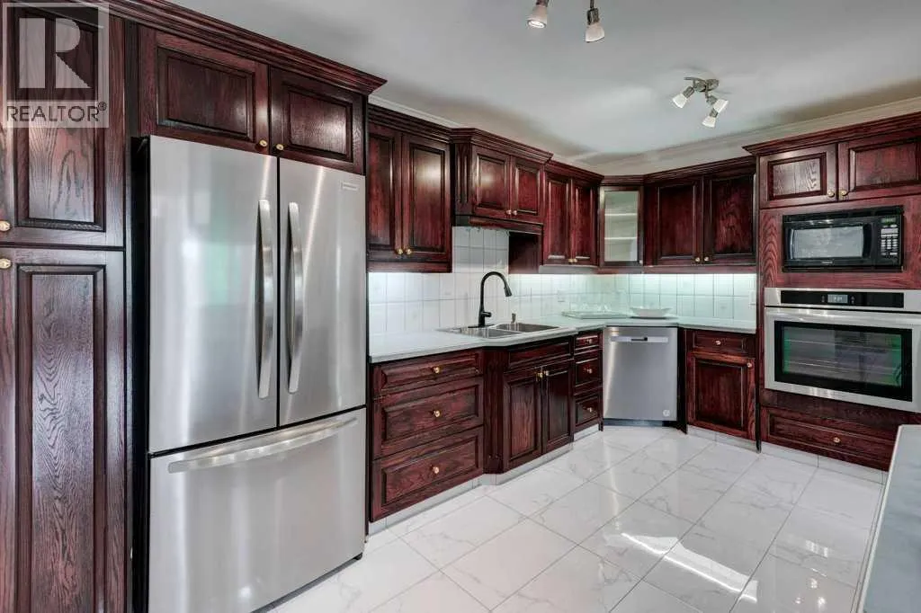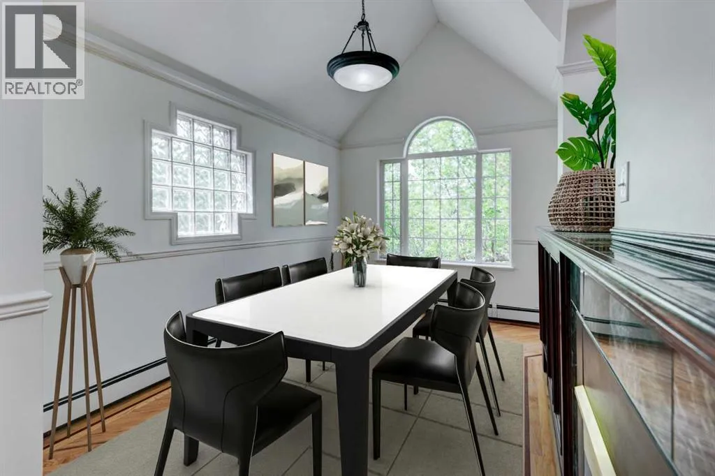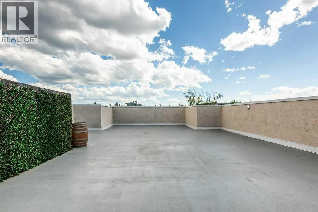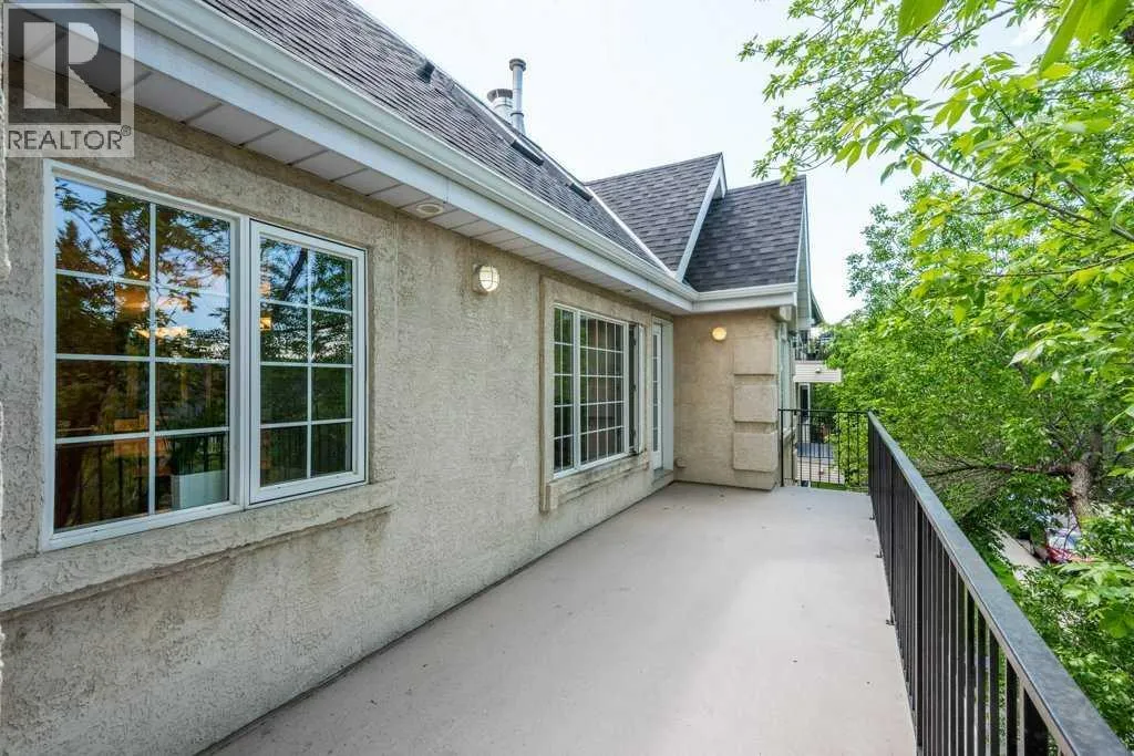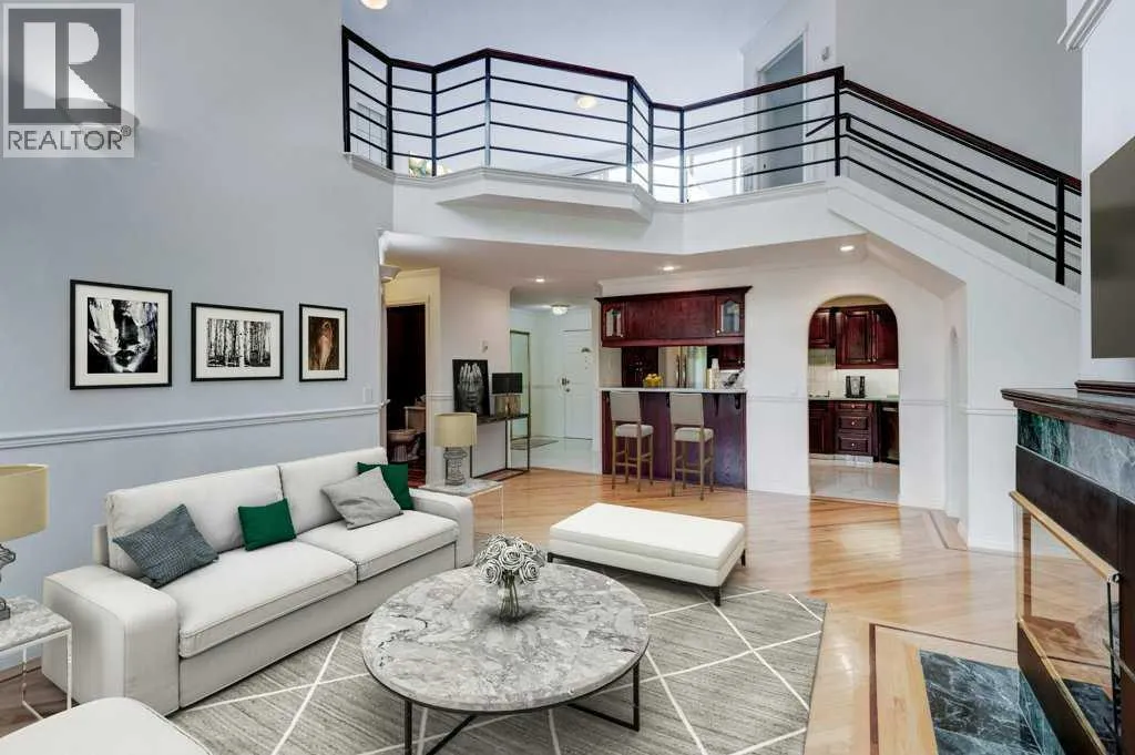 Welcome to a truly one-of-a-kind, New York-style walk-up penthouse located in the highly desirable inner-city community of Windsor Parkâjust steps from Chinook Mall, transit, and minutes from downtown Calgary. Boasting over 2,000 sq ft of luxurious living space across two stunning levels, this updated home combines architectural elegance, thoughtful design, and unmatched outdoor space. Inside, you're greeted by soaring vaulted ceilings, expansive windows, and an open-concept layout drenched in natural light. The gourmet kitchen is a chefâs dream, featuring custom oak cabinetry, newer stainless steel appliances, a built-in gas range, and an eat-up breakfast barâperfect for casual dining or entertaining. Rich hardwood floors with intricate Purple Heart inlay add a sophisticated touch. The spacious living room includes a built-in entertainment unit and a three-sided gas fireplace that seamlessly connects to the formal dining area. Your primary retreat offers custom built-ins, a large walk-in closet connected to the laundry room, and a spa-inspired 5-piece ensuite with a jetted tub and oversized shower. From both the living room and primary suite, step out onto a private, north-facing balcony tucked into the treetopsâyour own peaceful, treehouse-like escapeUpstairs, an elegant staircase leads to a bright lofted family room overlooking the main floor, a spacious second bedroom, a modern 3-piece bathroom with in-floor heating and a massive steam shower, a den, and a bonus roomâideal for a home office or creative studio. And here's the showstopper: a private 1,500 sq ft rooftop terrace, unlike anything else in the area. Whether you're hosting summer soirées or enjoying peaceful evenings under the stars, this rooftop is pure magic. Additional features include: heated underground parking, oversized storage locker, quiet, professionally managed building with strong financials. Perfect for professionals, creatives, or investors seeking luxury and lifestyle in a premier locati on. (id:27476)