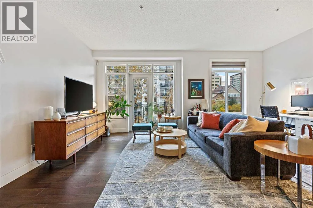 Discover The Savoyâa boutique condominium perfectly positioned in the heart of Calgaryâs dynamic Beltline. This impressive and adaptable one-bedroom residence (with two full bathrooms) spans over 1,030 sq. ft. of beautifully planned living space. Once a two-bedroom layout, itâs been thoughtfully transformed to create an exceptionally open and inviting atmosphere. Step outside your door and experience the best of Beltline livingâindependent cafés, artisan bakeries, breweries, parks, and galleries are all moments away. Back at home, youâll be greeted by leafy, treetop views and soaring 9-foot ceilings that enhance the sense of light and space. A welcoming private foyer leads into a bright and expansive 18' x 13' living room anchored by a cozy gas fireplaceâideal for relaxing, working from home, or entertaining guests. The chef-inspired kitchen is equally impressive, showcasing ceiling-height cabinetry, granite countertops, stainless-steel appliances, and a full pantry for added storage. The primary suite is a true retreat, spanning 18' x 10.5', complete with a walk-through closet and a luxurious 5-piece ensuite featuring dual vanities, a deep soaker tub, stand-alone shower, and linen storage. Guests will appreciate the second full 4-piece bathroom, elegantly updated for modern comfort. Additional highlights include a full-size laundry room with extra in-suite storage, a street-facing balcony, and a titled heated underground parking stall. This pet-friendly building (with board approval) is professionally managed with a proactive condo board, recent building updates, and all-new windows throughout. Bonus: Originally designed as a two-bedroom, this unit offers future flexibilityâeasily re-convert the space if your lifestyle needs change. Stylish, spacious, and steps from everythingâthe perfect blend of Beltline energy and boutique tranquility awaits at The Savoy. (id:27476)