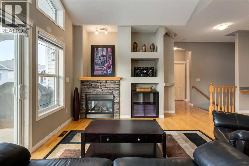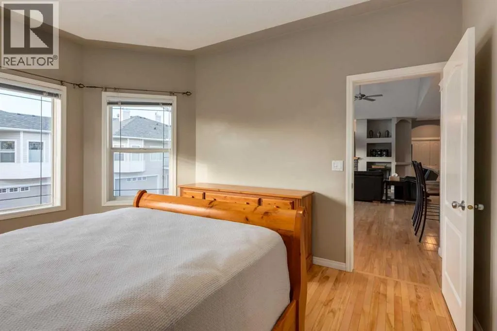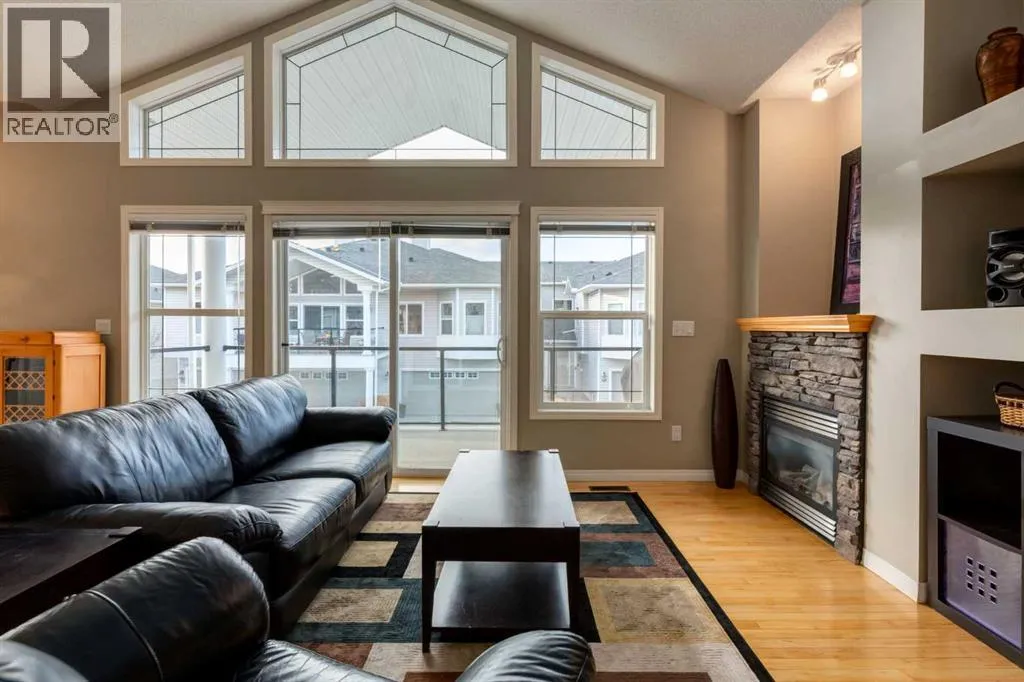 Looking for LOW MAINTENANCE living close to amenities in NW Calgary? Practical and appealing, this townhome is ideal for first time home buyers or those wanting to downsize. With 2 bedrooms and 2 baths on ONE LEVEL in ROCKY RIDGE BROWNSTONES, this home is extremely bright and spacious. The thoughtful layout with 1329 square feet, plus 12 foot vaulted ceilings in the living and dining areas, opens onto a huge balcony, providing abundant sunlight with SOUTH exposure. The living room includes a stone faced, gas fireplace with mantle, built-in shelf space and a separate work desk. The adjacent dining room and kitchen with eating bar and pantry create functional entertaining and daily living spaces. The separated bedrooms are functional, private sleeping areas. The primary bedroom offers a ensuite with corner soaker tub, separate shower and walk-in closet. The second bedroom is located next to the four piece bath and ensuite laundry. Light coloured maple hardwood, tile flooring and neutral paint colour create a decor which is adaptable to modern or traditional styling. Amenities are abundant with access to The Lake Club facilities (fitness, theatre, games room for $25 HOA fee per month), close proximity to LRT station and Stoney & Crowchild Trails, plus extensive retail shopping and services minutes away. The monthly condo fee of $389 includes professional management, exterior maintenance, snow removal and landscaping to support a carefree lifestyle. An ATTACHED SINGLE GARAGE, plus front driveway, provides parking for two vehicles. This nicely presented, well located townhome is easy to view and ready for quick occupancy. (id:27476)