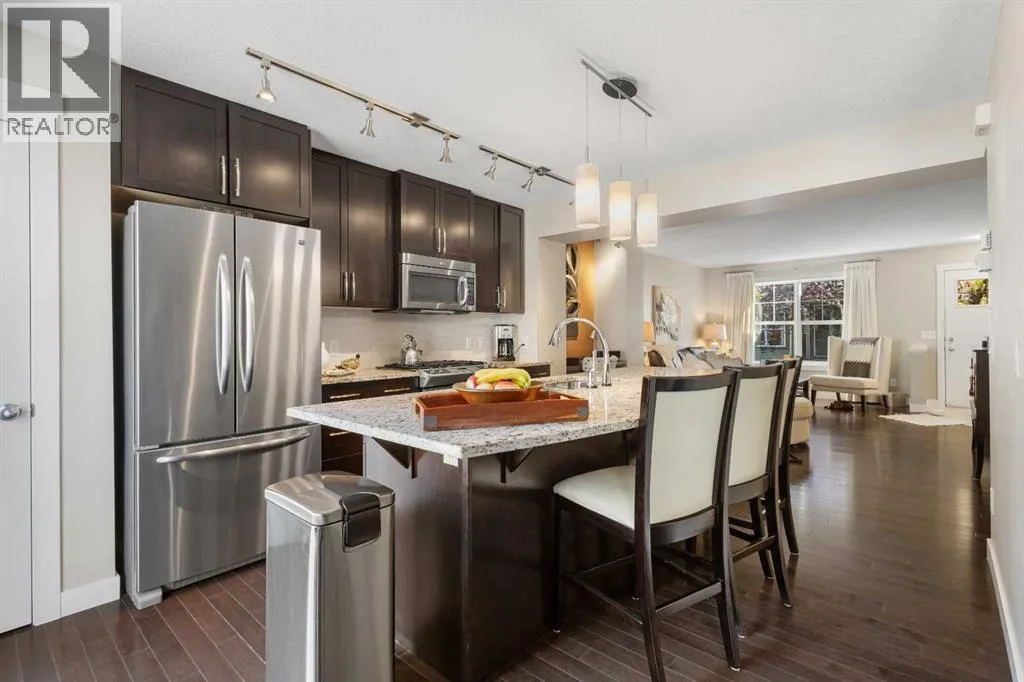 Welcome to this beautifully maintained townhome located in the highly desirable SE community of McKenzie Towne. Offering nearly 1,200 sq ft of thoughtfully designed living space across two storeys, this home features 2 bedrooms, 2.5 bathrooms, and a double attached garage. The main level boasts an open-concept layout enhanced by rich hardwood flooring. The modern kitchen features dark espresso cabinetry, granite countertops, stainless steel appliances, a large island perfect for meal prep or casual dining, and a separate pantry. Step out onto the private balcony to enjoy a morning coffee, fire up the BBQ, or unwind on warm evenings. Upstairs, youâll find convenient upper-floor laundry 2 spacious primary bedrooms, each with its own ensuite and walk-in closet. Enjoy the charming front porch, perfect for relaxing. The double attached garage offers ample room for vehicles and extra storage. Located close to parks, schools, playgrounds, shopping, and all the amenities McKenzie Towne has to offer, this home is perfect for families, first-time buyers, or investors alike. Donât miss out, book your private showing today! (id:27476)