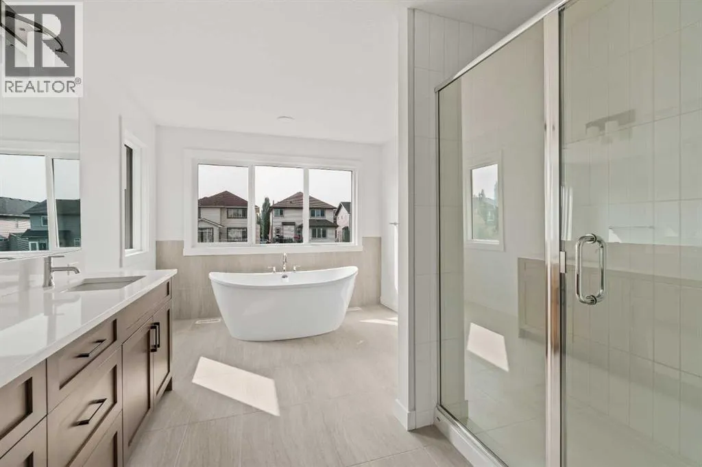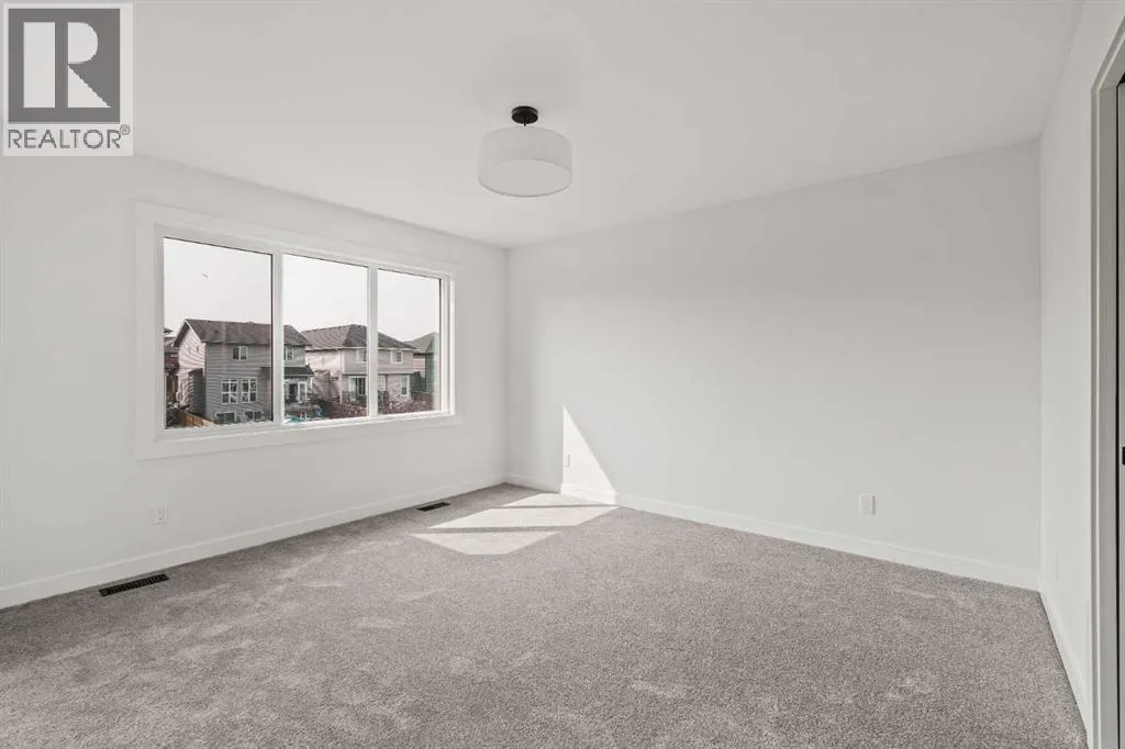 Move-In Ready - Immediate Possession Available! The stunning Columbia by Brookfield Residential offers nearly 2,500 square feet of beautifully designed living space, perfectly blending style, function, and comfort. Ideally situated backing onto green space with a south-facing backyard for optimal sunshine, this home has the perfect lot in Silver Spruce! Thoughtfully planned for modern living, this home features an open-concept main floor centered around an impressive gourmet kitchen with an oversized island, elegant two-tone cabinetry with natural wood upper cabinets and timeless white lower cabinets. The kitchen is complete with white quartz countertops, a sleek stacked subway tile backsplash, and a premium suite of built-in stainless-steel appliances including a gas cooktop, chimney hood fan, wall oven, and microwave. The main level provides generous space for entertaining with a bright, open living area and a central dining space that connects seamlessly to the kitchen. A central gas fireplace anchors the main living space with a wall of south-facing windows allowing natural light to pour through the space. A convenient rear office/flex room offers a quiet retreat overlooking the backyard -perfect for a children's play area or work-from-home space. Additional highlights include a walk-through pantry, a mudroom off the garage, a walk-in front closet, and a 2-piece powder room. Natural wood and iron spindle railings lead to the upper level with a thoughtful design that includes a central bonus room that provides separation and privacy between the primary suite and secondary bedrooms. The luxurious primary retreat features a massive walk-in closet and a spa-inspired 5-piece ensuite complete with dual sinks, a walk-in tiled shower, a deep soaker tub with south-facing windows, and a private water closet. Two additional bedrooms, including one with a vaulted ceiling, a spacious main bathroom, and a large laundry room with ample workspace complete the upper level. The l ower level, with 9-foot foundation walls and rough-ins for a future bathroom, is ready for your personal touch - whether you envision a home gym and / or recreation area, there is plenty of space for a bedroom, bathroom and living area! Perfectly situated in the desirable new community of Silver Spruce, this home backs onto a tranquil green space and is just steps from scenic pathways and a playground, while remaining only minutes from major amenities. The south-facing lot will provide optimal natural light both inside and out all year long. Purchase with peace of mind - builder warranty + Alberta New Home Warranty are included with this brand new home. (id:27476)