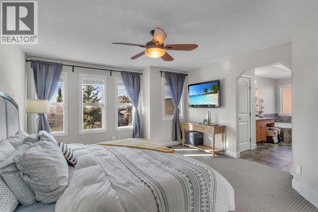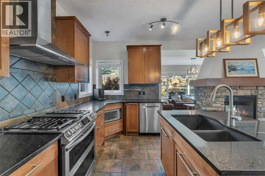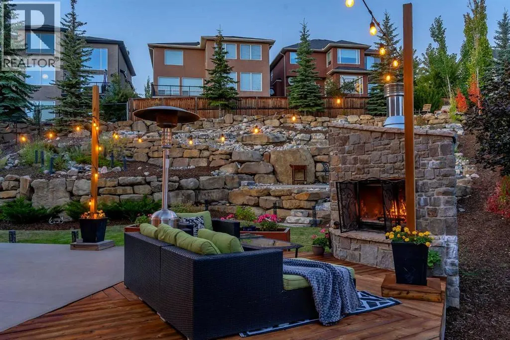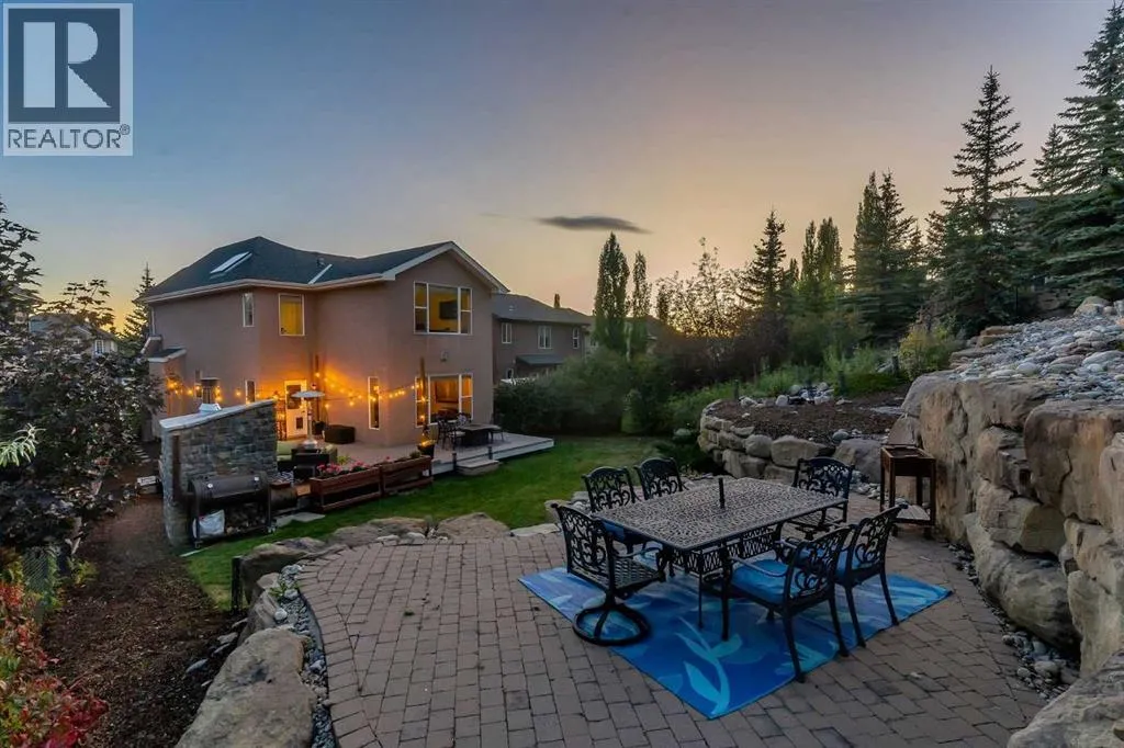 Incredible opportunity to own in prestigious Aspen Woods on a peaceful, quiet crescent. This magnificent home sits on one of the largest lots in the community at over 11300 square feet. Extensively landscaped with sandstone retaining walls, tiered patios, a large deck, a water feature, and a custom hand laid stone fireplace, the backyard will inspire you to throw some great parties. Grab a glass of wine and take in the sunset at the very top of your yard, where you will enjoy sweeping panoramic views to the entire south west. Driving up to this home, you'll appreciate the extra touches that lend this home its elegant appeal. With over 2400 square feet above grade, you'll admire the expansive layout that includes a main floor office. The open design features a sweeping foyer, a front office, a central dining space made for entertaining, and a kitchen that offers ample counter space. A double sided stone fireplace adds a warm glow and you'll love the feeling of privacy as you step down into your sunken living room. Large windows look out into the yard, where the greenery has a soothing effect. Laundry and a 2 piece bath can also be found on the main floor. Upstairs, the reverse vaulted bonus room offers fantastic views of the yard and is a great casual space for the family to gather. The primary suite is well appointed with a luxurious ensuite that includes an oversized tiled shower, a corner tub, dual sinks and a lovely vanity area. The walk-in closet features custom shelving & drawers that add a practical touch. Two additional bedrooms, and a 4 piece bath complete this level. The oversized heated garage was built to accommodate two lifts for the car enthusiast. The basement is untouched and ready for a creative touch. You'll love the lifestyle that comes with such a stunning low-maintenance yard. This is a coveted community, just minutes from world class schools including Rundle College and Webber Academy. Aspen Woods truly has it all; fantastic neighbours, great sh opping, serene walking trails and convenient access to the mountains. (id:27476)