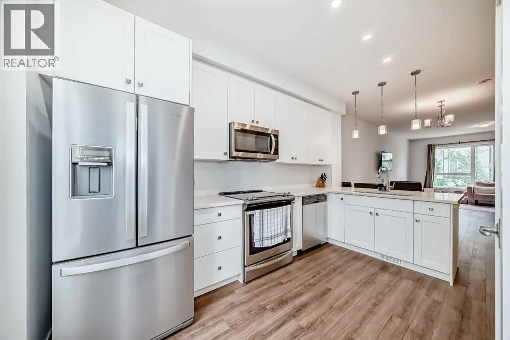 Enjoy the serene environment of your home facing a small green space. This unit has two huge master bedrooms, both with walk-in closets. There's also a bonus room on the upper level for your kids or your work. Perfect for first-time home buyers, downsizers, or investorsâgreat rental potential! This well-maintained three-storey townhouse in the family-friendly community of Evanston offers 1,441 sq ft of developed living space. Enjoy the convenience of a large tandem double garage (38' x 10'4") and a 5â10â x 4â10â balcony. The entry level features a spacious foyer with direct access to the garage and a utility/storage area. On the main living area (2nd level), you'll love the contemporary open concept floor plan with luxury vinyl plank flooring, a neutral color scheme, and 9â ceilings. The living room, with large windows, is perfect for relaxing with plenty of natural light. The dining area comfortably seats six, ideal for family and friends. The bright, modern kitchen boasts stainless steel appliances, tiled backsplash, quartz countertops, pantry closet, pendant lighting, and a breakfast bar. A door from the kitchen leads to a balcony with a gas line for BBQs. This level also includes a 2-piece powder room and a good-sized closet. The top level (3rd) features carpet throughout and an ideal dual primary layout with two bedrooms, two bathrooms, one ensuite and a bonus/flex room in between. The laundry closet is conveniently located in the Primary bedroom. This townhouse offers low condo fees, providing fantastic value. Evanston is a friendly community with many schools and programs, including sports, activities, an outdoor rink in winter, cleanup days, food trucks, and more. Located just off Symons Valley Parkway & Road and Beddington Blvd, with easy access to Deerfoot Trail and Stoney Trail. A quick 5-minute drive to Highway 2 leads to the majestic Rocky Mountains one-hour drive and just 10 minutes to the airport. You'll also be close to a wide range of amenities. You will love this gem of a home! This townhouse offers lots of natural light, extra storage, air conditioning, and low condo fees, providing fantastic value. Evanston is a friendly community with many schools and programs, including sports, activities, an outdoor rink in winter, cleanup days, food trucks, and more. Located just off Symons Valley Parkway & Road and Beddington Blvd, with easy access to Deerfoot Trail and Stoney Trail. A quick 5-minute drive to Highway 2 leads to the majestic Rocky Mountains (one-hour drive) and just 10 minutes to the airport. You'll also be close to a wide range of amenities. You will love this gem of a home! (id:27476)