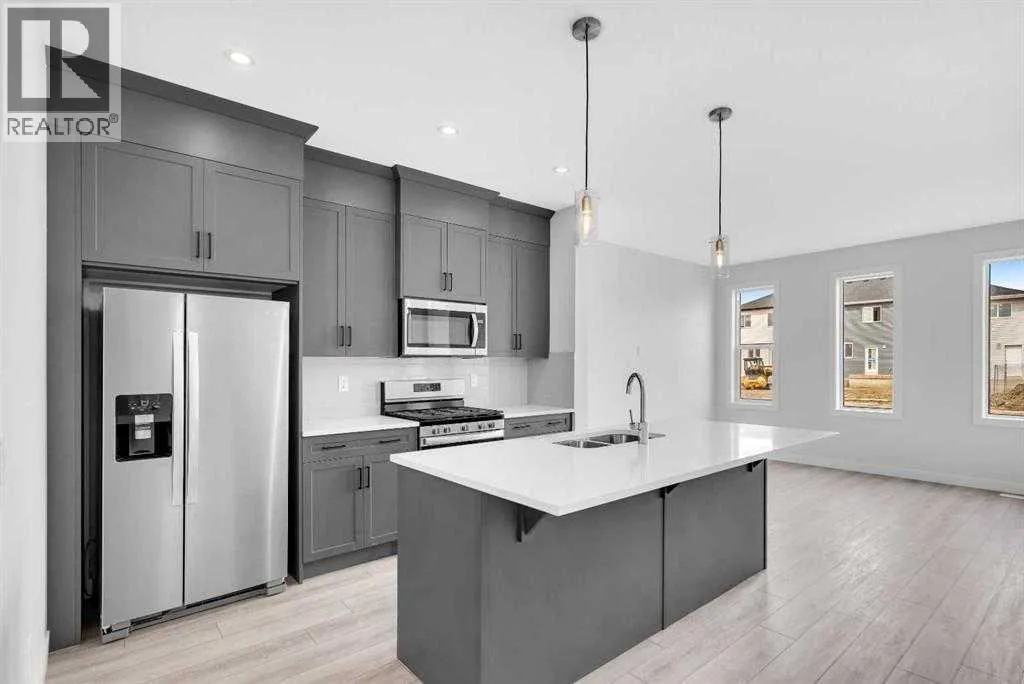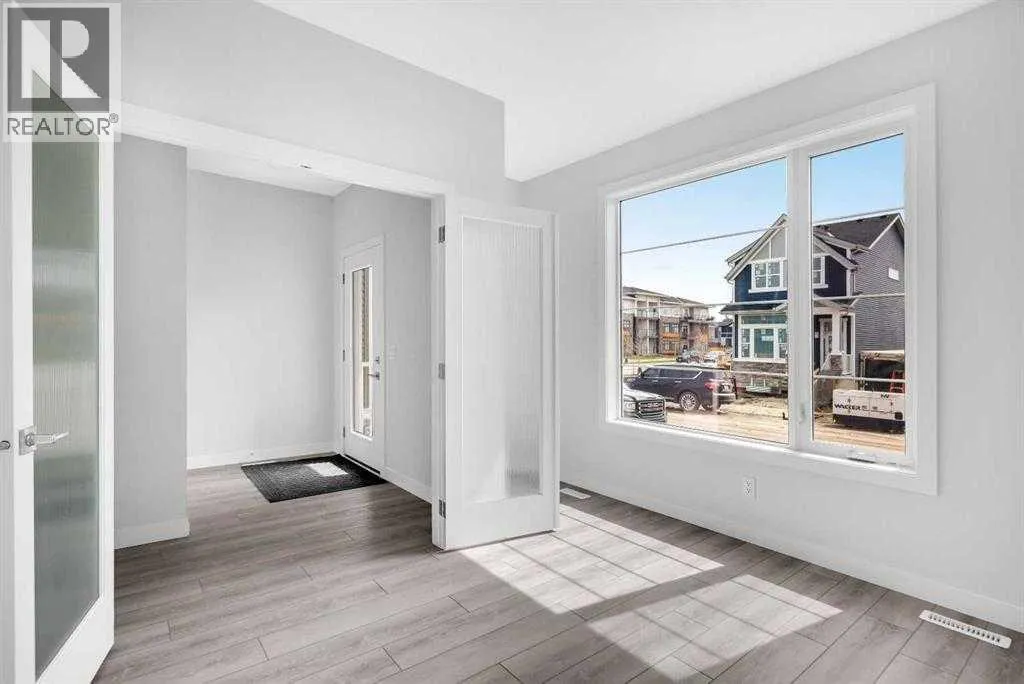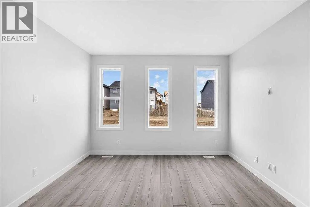 OPEN HOUSE SATURDAY NOVEMBER 1st 1:00 - 3:00 PM. Welcome to this impressive, newly built home located in the sought after NW community of Ambleton. Thoughtfully crafted with modern finishes and a functional layout, this home offers exceptional comfort and style. Step inside to find luxury vinyl plank flooring extending throughout the main floor, leading you into a bright and open layout that includes a spacious living room, dining area, modern kitchen, and a flex roomâperfect for a home office, playroom, or den. The kitchen is a chefâs dream, showcasing quartz countertops, stainless steel appliances, a gas stove, full ceiling-height cabinets with elegant crown molding, and a glass-door pantry for added storage. Upstairs, soft plush carpets and large windows throughout bring comfort and natural light into all three generously sized bedrooms. The primary bedroom is impressively sized, easily fitting a king-size bed with nightstands and dressers, and features a walk-in closet with a window and a large ensuite. The upper level also includes a shared 4-piece bathroom and a separate laundry room. The unfinished basement offers high ceilings, rough-ins, and a separate side entrance, providing endless opportunities for future development, including a potential legal suite (subject to city approval and permitting). Out back, you'll find a double parking pad, ready for your future double detached garage. This home is ideally located within walking distance of a playground and just minutes to local schools, transit, and top shopping destinations such as Carrington Plaza and Creekside Shopping Centre, Walmart, Beacon Hill Costco, and T&T Supermarket. Plus, with easy access to Stoney Trail and Deerfoot Trail, commuting around the city is a breeze. This is your chance to own a stylish, move-in-ready home in one of Calgaryâs most exciting new communities. Schedule your private showing today! (id:27476)