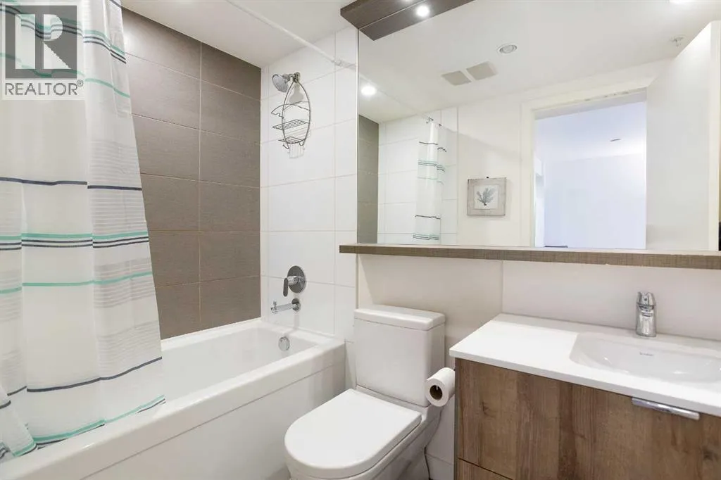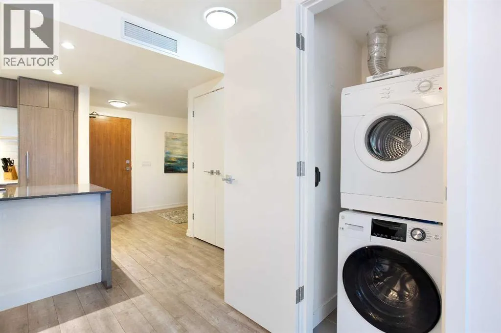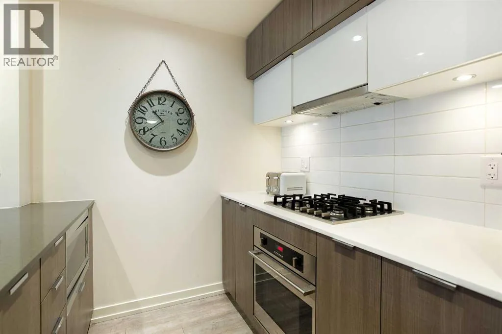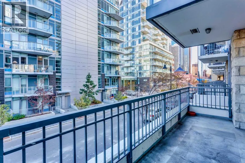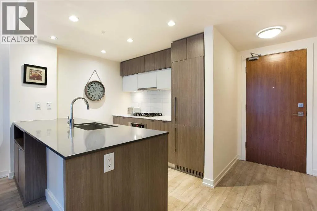 Thoughtfully situated between the Bow River and downtown, this one-bedroom condo captures the best of both worlds â the energy of the city when you want it, and a sense of calm when you need it. Step outside and youâre moments from cafés, scenic pathways, and the pulse of Eau Claire. Step inside, and youâll find balance.The open layout and clean lines create a flow that feels effortless â every element designed with intention. Large windows invite natural light to fill the space, while the sleek kitchen, finished with quartz countertops, full-height cabinetry, and high-end appliances, blends seamlessly into the living and dining areas.From quiet mornings by the window to evening walks along the river, this home adapts to your rhythm. Step out onto your private balcony and take in peaceful views â your own pocket of serenity in the heart of downtown.Here, connection is everything â with direct access to Calgaryâs renowned river pathway system, you can walk or cycle from Eau Claire to the Calgary Zoo, or head north all the way to the University of Calgary. Whether itâs a morning ride or a weekend stroll, everything is within reach.The spacious bedroom, generous closet, and contemporary four-piece bath reflect a design thatâs as functional as it is refined. Everyday convenience comes built in â with in-suite laundry, underground parking, and a dedicated storage locker.Life at Outlook offers more than a home â itâs an experience. Residents enjoy premium amenities including a fitness center, guest suite, sauna, hot tub, party room, and secured parking.Luxury doesnât need an introduction â itâs felt in the details. (id:27476)