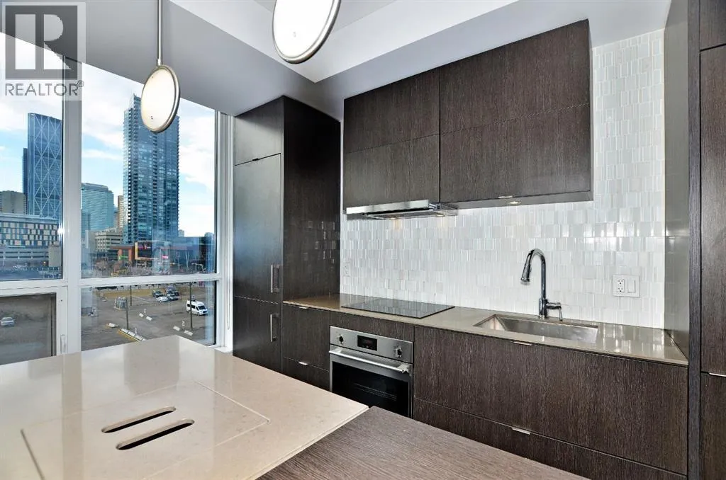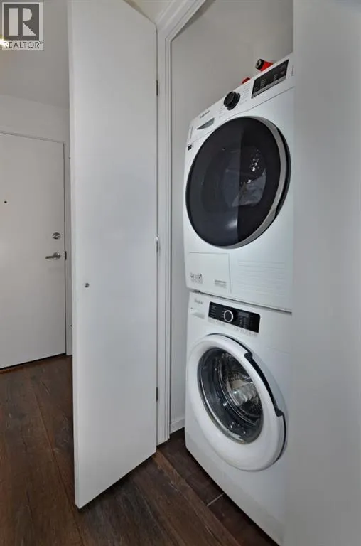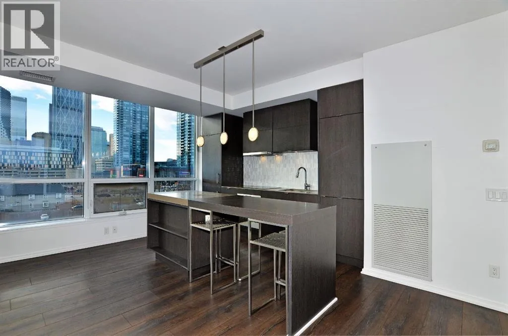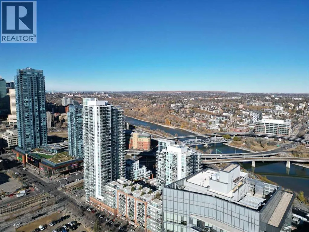 Welcome to Verve in East Village, one of Calgaryâs most sought-after addresses combining modern design, urban energy, and incredible views. This 2-bedroom, 1-bath home offers 180° panoramic views of downtown and the Confluence Historic Site, where the Bow and Elbow Rivers meet. Floor-to-ceiling windows fill the space with natural light, and the open-concept layout connects the kitchen, dining, and living areas seamlessly, making it perfect for both relaxing and entertaining. The modern kitchen features sleek cabinetry, quartz countertops, and built-in appliances, while the home also includes central A/C, in-suite laundry, and a private balcony to take in sunrise and sunset views over the city. Adding even more value, this rare unit comes with two titled underground parking stalls plus three titled motorcycle stalls. Verve offers premium amenities including a rooftop lounge and terrace, fitness center, guest suites, and concierge service, all just steps from the RiverWalk, Central Library, cafes, and the CTrain. Itâs downtown living with a riverside vibe â and a truly unique opportunity to own one of the most distinctive homes in the building. All stalls are rented out and returning big cashflow returns, property also includes a storage locker. (id:27476)