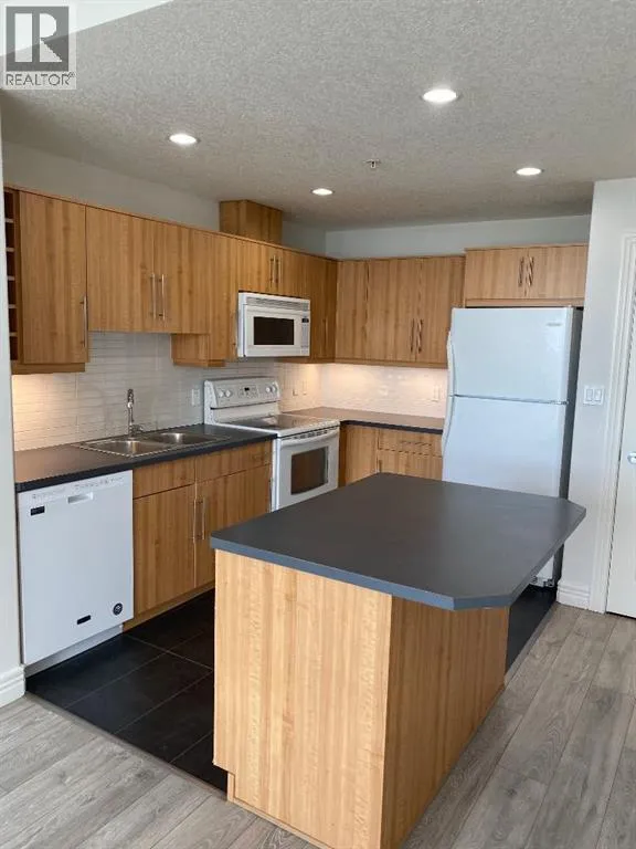 Experience Executive Living in Style! Welcome to this freshly painted one-bedroom plus den condominium, offering spectacular mountain views from the 16th floor. Designed for comfort and modern living, this unit features a spacious open-concept kitchen with an island and built-in wine rack, luxury vinyl plank flooring, a cozy fireplace, and floor-to-ceiling windows to soak in the scenery.Enjoy the convenience of in-suite laundry, central air conditioning, and a heated underground parking stall. Step out onto your private balcony, perfect for entertaining while enjoying breathtaking views of the mountains.Located in the sought-after Brava Tower, residents have access to premium amenities including a swimming pool, fitness centre, and social rooms.This unbeatable central location puts everything at your fingertipsâjust steps across the street from a major shopping mall featuring a grocery store, restaurants, and retail shops. Plus, with LRT and bus access nearby, commuting is a breezeâdowntown is only a 5-minute drive! (id:27476)