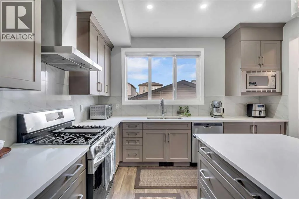 6 BEDROOM HOME WITH LEGAL BASEMENT SUITE | MAIN FLOOR BEDROOM & FULL BATH | BUILT IN 2021 | 2,655 SQFT OF TOTAL LIVING SPACEWelcome to this beautifully crafted Fairview model by Alliston Homes, combining modern comfort, functionality, and a fully developed 2-bedroom LEGAL basement suite. With a total of 2,655 sq. ft. of living space, this 2021-built home is ideal for families or investors seeking a move-in-ready property with income potential.The main floor greets you with a bright and spacious layout featuring durable luxury vinyl plank flooring throughout. A rare main floor bedroom with a full bathroom makes it perfect for multi-generational living or accommodating guests.The elegant kitchen is the highlight of the home, showcasing upgraded cabinetry, quartz countertops, stainless steel appliances, an undermount sink, and a large window overlooking the backyard. A convenient pantry and open dining and living areas make entertaining a breeze.Upstairs, the primary suite offers a walk-in closet and a 3-piece ensuite. Two additional bedrooms, a full 4-piece bathroom, and an upper-level laundry room complete the second floor, providing comfort and practicality for everyday living.The fully developed LEGAL basement suite has its own private side entrance and includes two spacious bedrooms, a cozy living area, a modern kitchen with stainless steel appliances, a 3-piece bathroom, and in-suite laundryâideal for extended family or as a mortgage helper.Outside, enjoy a **low-maintenance paved and fenced backyard** offering privacy and the perfect setting for outdoor gatherings. A **double detached garage** provides secure parking and additional storage space.Located close to shopping, parks, schools, playgrounds, major highways, CrossIron Mills Mall, YYC Airport, and all essential amenities, this home offers the perfect blend of lifestyle, comfort, and convenience.Donât miss this incredible opportunityâschedule your private showing today! (id:27476)