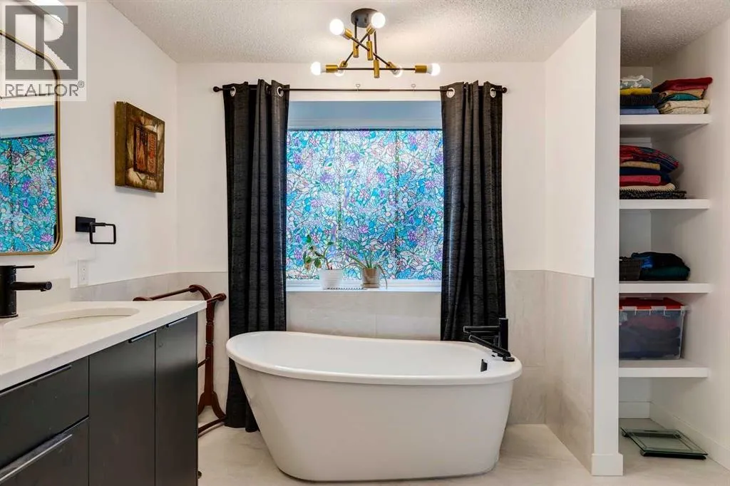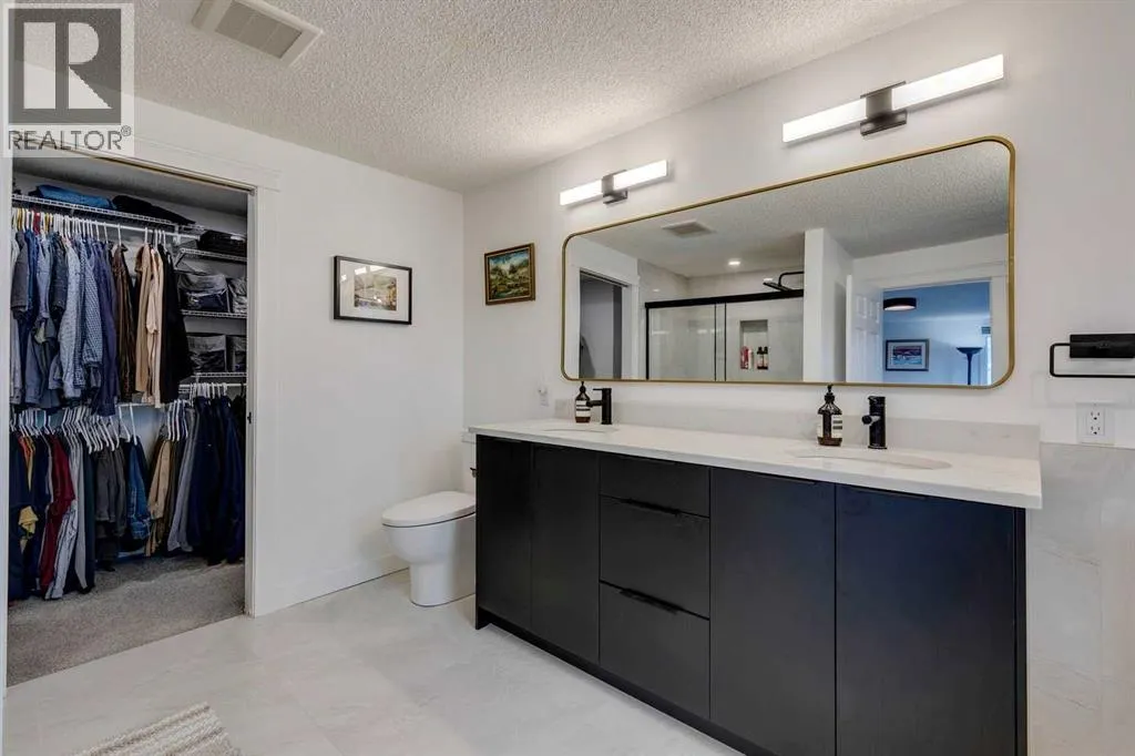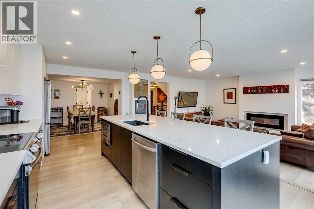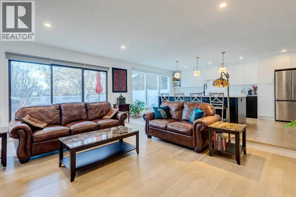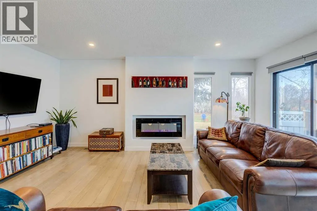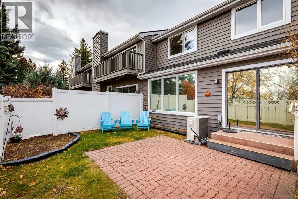 Beautifully renovated end unit townhome, over 2056 sq ft of living space, and backing directly onto a golf courseâ offering privacy, views, and a serene lifestyle. Inside, the main floor has been thoughtfully updated with modern finishes including all new light fixtures and luxury vinyl plank flooring. A front office with elegant French doors provides a quiet workspace while allowing natural light to stream through. The open-concept kitchen and living room make entertaining a pleasure, with a stunning wall of windows inviting in natural light and showcasing your exclusive outdoor retreat overlooking the golf course. The kitchen has black and white cabinetry with Quartz countertops, a large island with seating for four, abundant counter and cupboard space, and stainless-steel appliances. The living room is very spacious and features a Bluetooth-enabled electric fireplace that can also act as a speaker! A formal dining room, separate laundry room, a half bath, and access to the attached double car garage complete this level. Upstairs, youâll find three generously sized bedrooms. The primary retreat is exceptionally spacious and includes access to a private balcony with views of the greenspace. The spa like ensuite offers a deep standalone tub, double sinks, separate shower, and a walk-in closet with organizers. A second beautifully renovated full bathroom serves the additional bedrooms, which also enjoy views of the golf course. The basement offers one finished room with the remainder ready for your personal touch. Outdoor living is where this home truly shines â enjoy a private patio facing the golf course with no neighbours behind, plus additional green space beside the unit. Donât be surprised when the deer come for a visit! The furnace, hot water tank and electrical were updated in 2022, and the A/C is a couple years old. The exterior has been freshly painted. The location canât be beat: a quiet street and backing onto Canyon Meadows Golf Course! (id:27476)