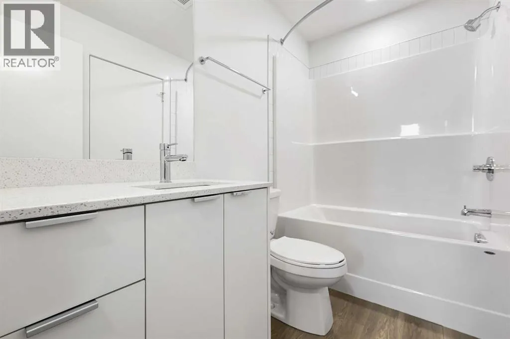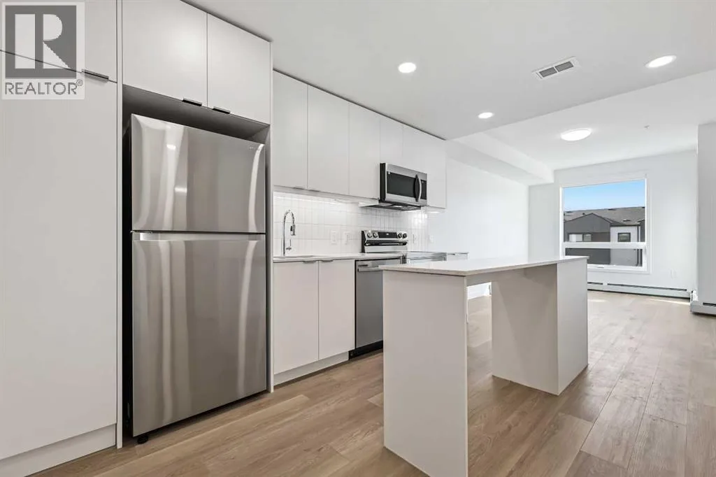 Welcome to this bright and stylish condo in the vibrant community of East Hills Crossing. Offering over 500 sq. ft. of thoughtfully designed living space, this 1-bedroom, 1-bathroom home strikes the perfect balance of comfort and convenience. The open-concept floor plan highlights sleek white cabinetry, quartz countertops, a large eating bar, and a versatile dining areaâideal for both everyday living and entertaining. Expansive windows fill the space with natural light, while the private balcony is the perfect spot to enjoy your morning coffee or relax on sunny afternoons. Everyday conveniences are built right in, with in-suite laundry, a titled underground parking stall, and a separate storage locker. Just steps away, youâll find the East Hills Shopping Centre with Costco, Walmart, Cineplex, restaurants, and banking. Parks, walking trails, and quick access to Stoney Trail make it easy to stay active and connected, while downtown Calgary is only 20 minutes away. Whether youâre a first-time buyer, downsizer, or investor, this condo offers a complete lifestyle package. Donât miss your chanceâbook your private showing today! (id:27476)