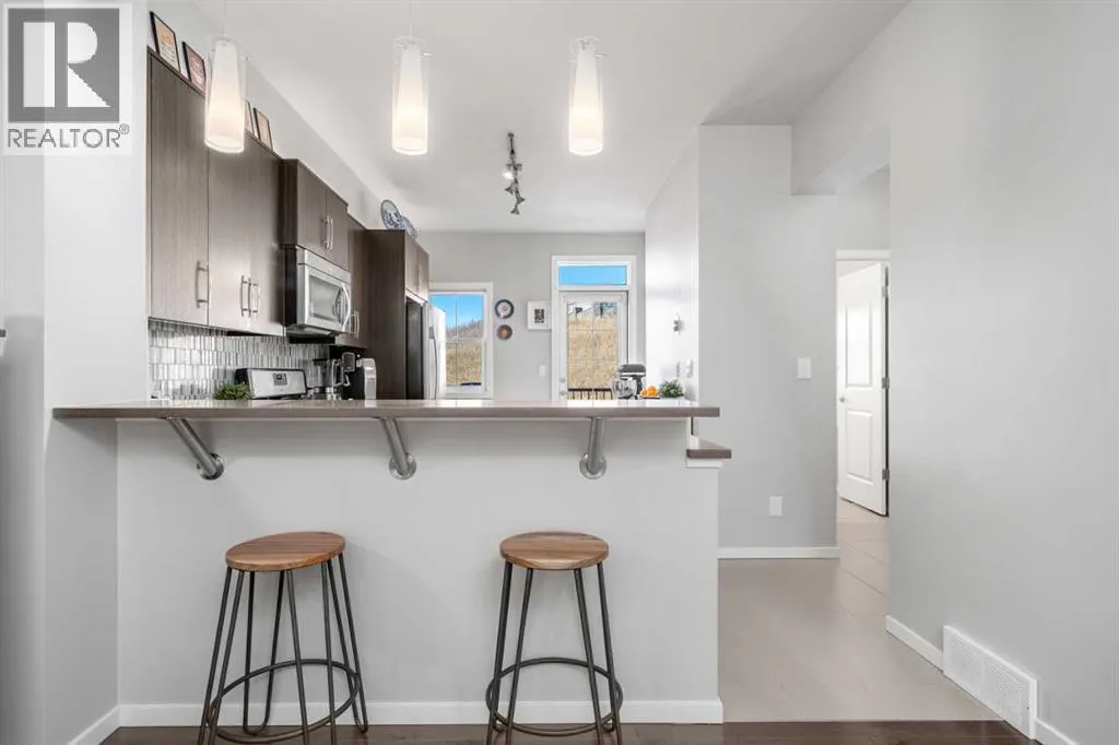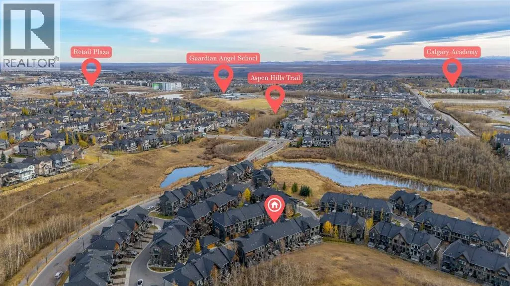 Welcome to The Enclave, a tucked-away gem in the prestigious community of Aspen Woods. Backing onto a peaceful west-facing green space, this townhome offers privacy, tranquility, and a touch of nature right out your back door. Inside, youâll find 1,334 sq. ft. of bright, open living space filled with natural light. The main floor showcases beautiful hardwood floors, an open concept design, and a stylish kitchen complete with quartz countertops, stainless steel appliances, and a gas range. Step out onto the deck with a gas hookup, perfect for summer barbecues. Central A/C ensures year-round comfort. The popular double primary floor plan offers two spacious bedrooms, each with its own ensuite and plenty of closet space. The double tandem garage provides room for two vehicles plus extra storage, while the full driveway is a rare convenience in townhome living. This well-managed complex offers low condo fees, beautifully landscaped grounds, a quiet pond, and scenic walking paths where you can enjoy abundant birdlife and wildlife â a true nature retreat in the city. Families will appreciate the proximity to top-rated public and private schools, including Webber Academy, Rundle College, and Calgary Academy, along with excellent local options. Just down the road, Aspen Landing provides a vibrant mix of boutique shops, restaurants, coffee spots, grocery stores, and all the everyday conveniences, with the C-Train keeping downtown only minutes away. Meticulously maintained, this home offers unmatched pride of ownership â book your private viewing today and see the difference. (id:27476)