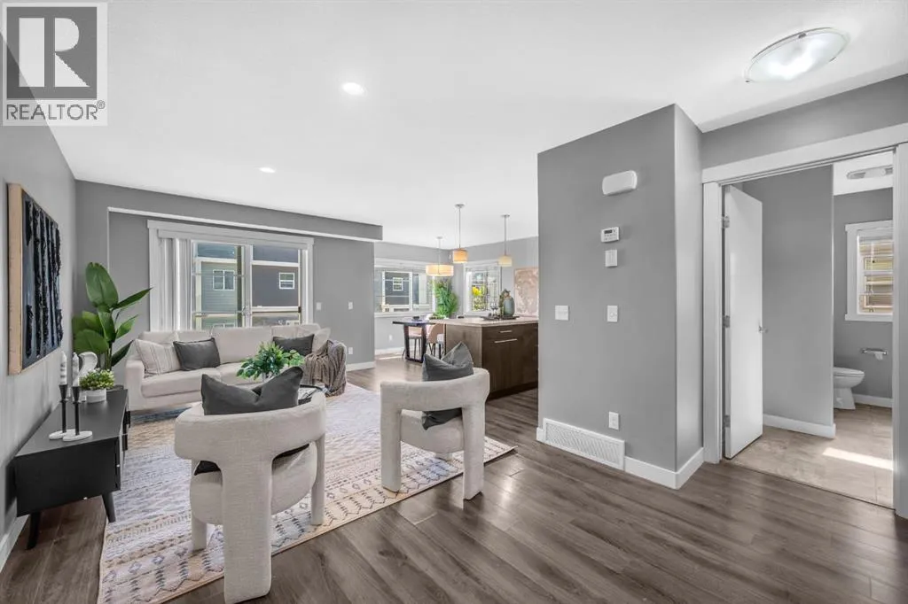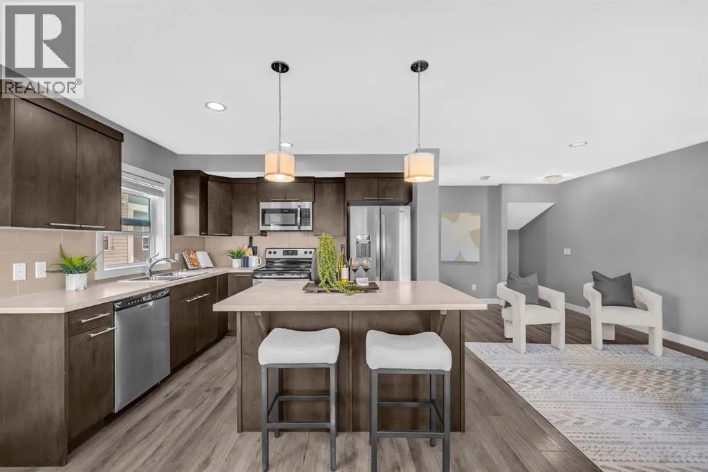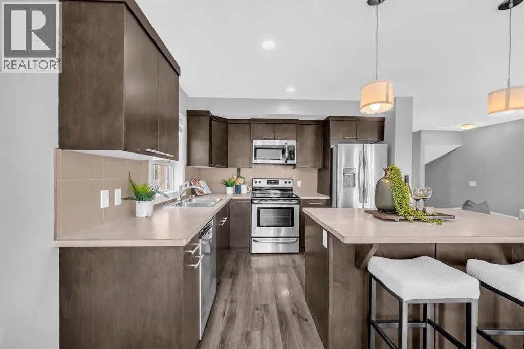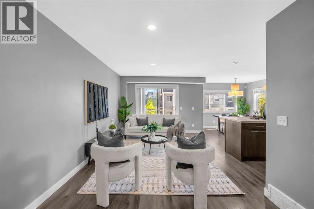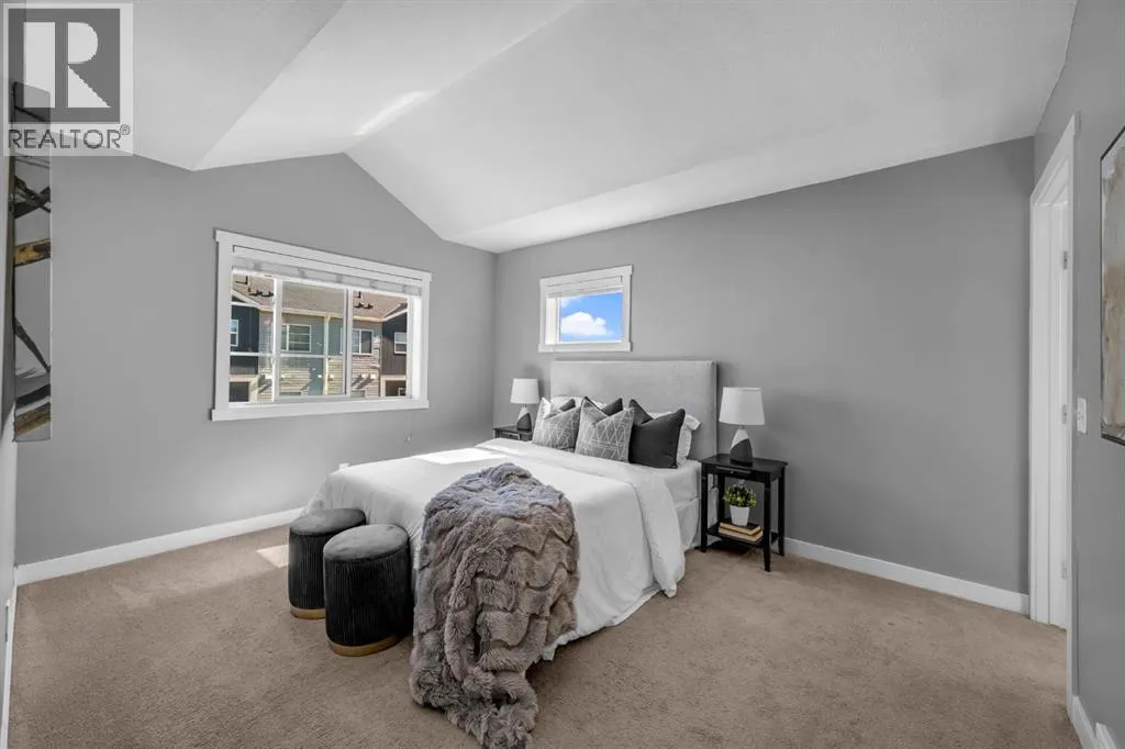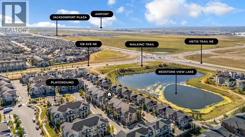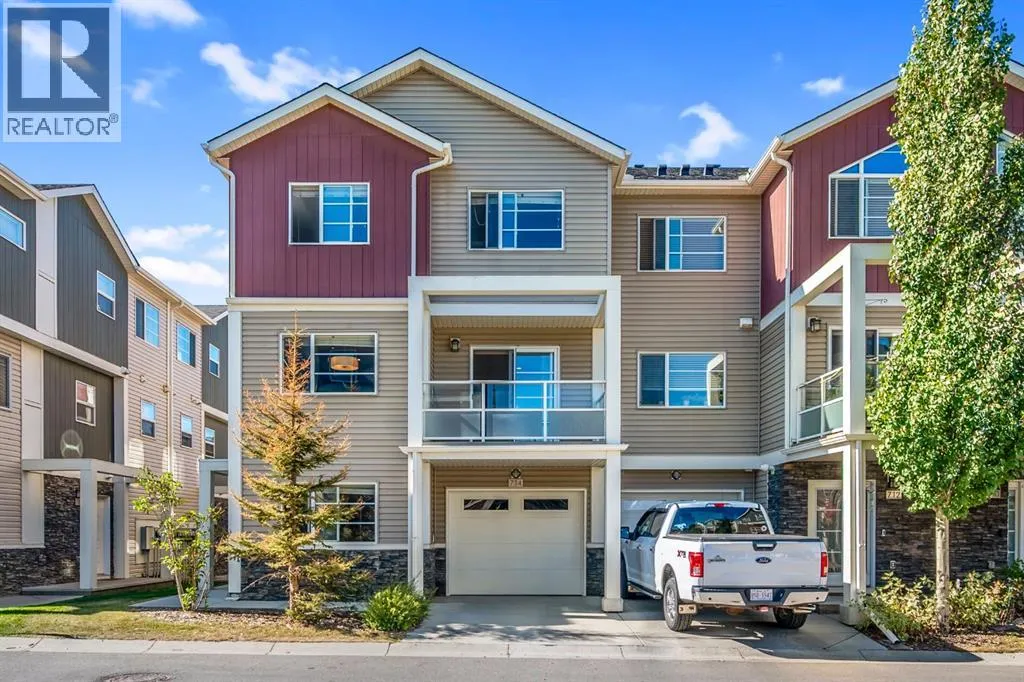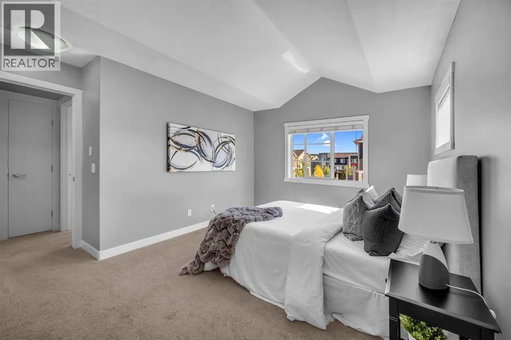 Welcome to this beautifully maintained CORNER unit offering exceptional space and convenience in Redstone. Featuring 4 spacious bedrooms and 2.5 bathrooms, this home is perfect for families or anyone seeking extra room to grow. The bright, open layout is FRESHLY PAINTED and PROFESSIONALLY CLEANED, providing a true move-in ready experience. The main floor consists of a large foyer with access to the garage and bedroom. The second floor features a bright, open layout living area featuring a beautiful kitchen with upgraded stainless steel appliances and island. The open layout of the kitchen, sizeable centre island, dining room and living room make it perfect for entertaining. The huge patio area easily fits a small patio set to sit and relax with a natural gas line hook up ready for your bbq. The upper floor features a huge master bedroom with a VAULTED CEILINGS, walk-in closet and attached ensuite. There are 2 more spacious bedrooms and a full bathroom on the top floor. Enjoy the convenience of an attached single garage plus full driveway, giving you ample parking and storage. With its corner location, this home also benefits from extra windows and natural light throughout. Located in a very quiet location across a park in a family oriented community of Redstone! This home is close to all amenities like bus stop, stores, mall, airport, bus stop, groceries and easy access to Stoney Trail and Deerfoot. Steps away from a new shopping plaza opening on Redstone Blvd! (id:27476)