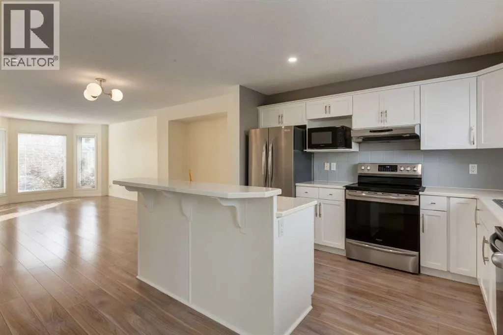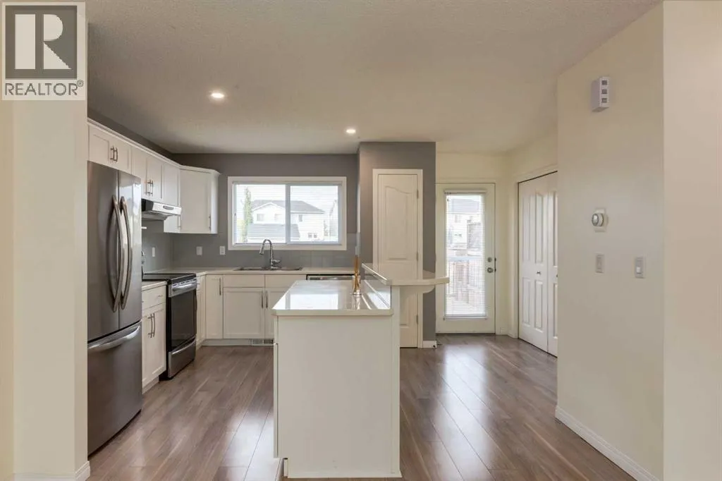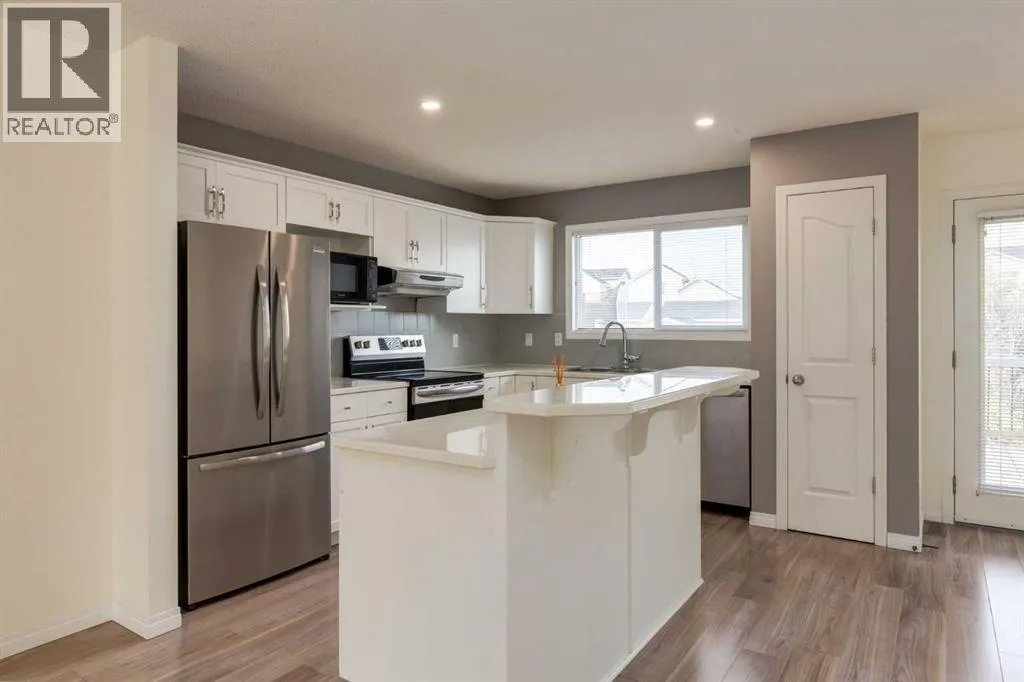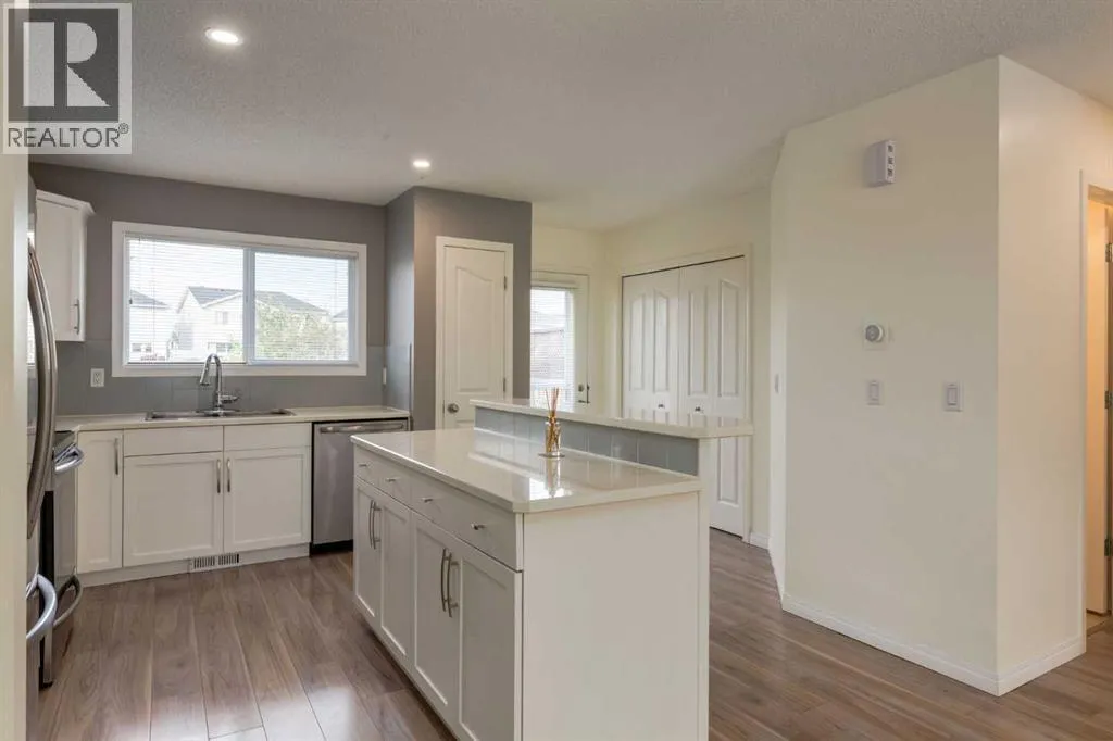 Step into this beautifully maintained 3-bedroom, fully finished semi-detached home located in the sought-after community of Cranston. Thoughtfully updated and cared for, this property is ready to impress!On the main floor, youâll find a spacious living room that flows seamlessly into the dining area and open kitchen. Natural light fills the space, highlighting the kitchenâs ample counter space, breakfast bar, and convenient pantry. A stylish 2-piece bathroom completes the main level.Upstairs, enjoy newer carpet and underlay that was replaced in recent years. The primary bedroom features a fresh accent wall, generous closet, and large window. A second bright bedroom with its own walk-in closet is located across from a 4-piece bathroom, providing excellent separation and privacy.The finished basement adds even more living space, offering a large bedroom with a walk-in closet, a 3-piece bath, LVP flooring, and a laundry closet with a new washer and dryer. The basement also includes a rec room complete with a wet barâperfect for entertaining.The roof is a level 4 Owens Corning hail-resistant shingles was also replaced in recent years. Outside, the extra-deep lot offers plenty of backyard space with a refinished deck, garden, shed, and a grassy area for kids or pets to play. Being in Cranston you can enjoy parks, schools, and natural pathways nearby. Youâll also find year-round activities such as skating and tobogganing in winter, and a splash park, playgrounds, and courts in summer in this amazing community (id:27476)