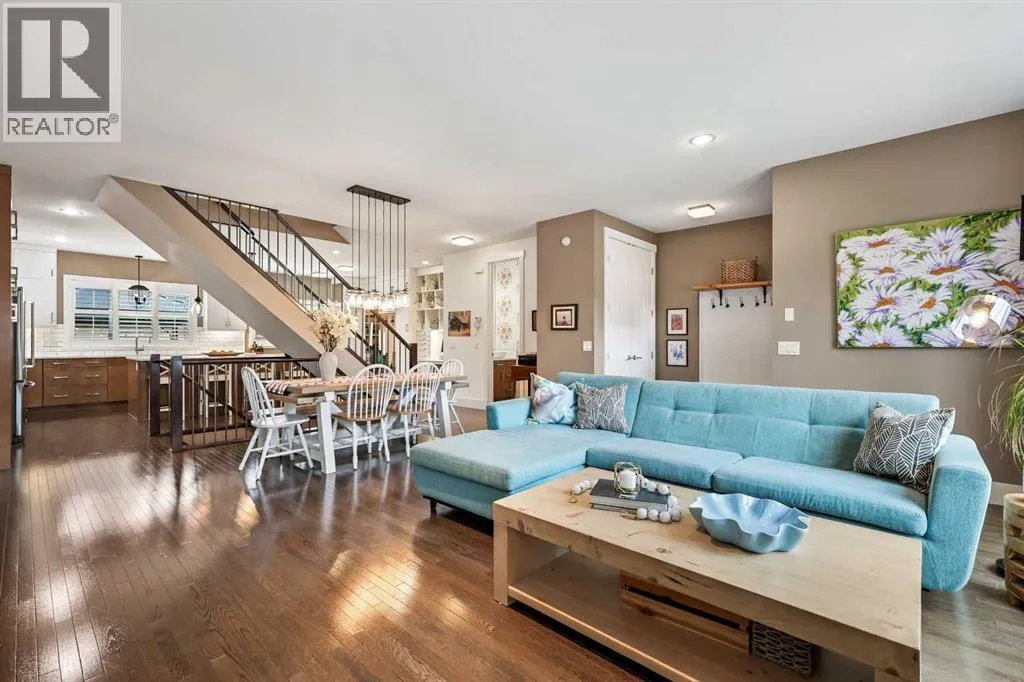 Welcome to this exceptional custom-built home, perfectly situated in one of Calgaryâs most sought-after inner-city communities. Boasting over 2,600 sq. ft. of meticulously designed living space, this home blends refined craftsmanship with modern elegance â all just minutes from downtown. Step through the welcoming front entrance into an open-concept main level featuring 9-ft ceilings, rich hardwood floors throughout, and a designer staircase that seamlessly connects the homeâs beautiful living spaces. The living room exudes warmth and style, anchored by a floor-to-ceiling tiled gas fireplace â a perfect focal point for cozy evenings. Custom built-in cabinetry adds both charm and functionality, creating a space designed for comfort and connection. The dining area offers an elegant setting for gatherings, while the chef-inspired kitchen is truly a showpiece â complete with a massive quartz island, premium stainless steel appliances, extended cabinetry, and abundant storage. Whether you love to entertain or cook with family, this kitchen delivers both form and function. From the kitchen, step outside to your professionally landscaped, low-maintenance backyard â fully fenced, south-facing, and exceptionally private. The extended patio creates the perfect space for outdoor dining and relaxation in the sun. Upstairs, discover three spacious bedrooms, each designed for rest and relaxation. The primary suite is a private retreat, featuring a spa-inspired ensuite with a dual vanity, soaker tub, tiled glass shower, and a generous walk-in closet. Large windows and custom window coverings complement the 9-ft ceilings, bathing each room in natural light.The upper-level laundry adds additional convenience. Downstairs enjoy the fully developed basement extending the homeâs versatility â rec room with built-in surround sound, fourth bedroom and/or home gym with a murphy bed, and a stylish four-piece bathroom completes this space. Additional luxury upgrades include Air Conditioning , GEM Stone exterior lighting (never hang Christmas lights again), central vacuum system, and more. Located in vibrant Currie Barracks, youâre surrounded by parks including outdoor rink, splash pad, playgrounds, walking paths, schools, and local amenities â plus easy access to the downtown core in under 10 minutes. Bonus ** Approved City Development Permit for a future Carriage Home â an incredible opportunity for added value or income potential. Experience the craftsmanship, comfort, and lifestyle this remarkable home offers. (id:27476)