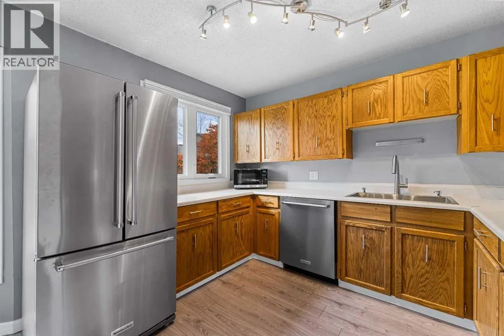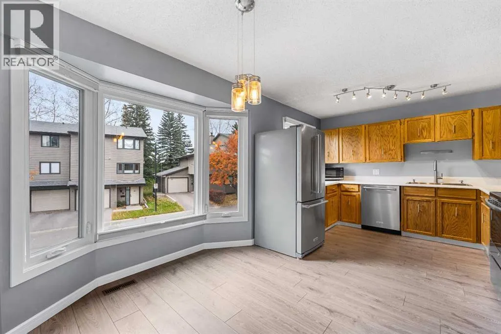 This beautifully maintained townhouse combines thoughtful updates, timeless charm, and a serene setting backing onto a private green belt.Step inside to soaring 14.5 ft ceilings in the living room, a cozy wood-burning fireplace with gas ignite, and expansive double doors and that fill the home with natural light.The kitchen features a bay window and stainless steel appliances, including a brand-new dishwasher and a refrigerator plumbed for ice and water. Youâll love the proper pantry, multiple linen closets, and open stairwell design that enhances the sense of space.The upper level offers a spacious primary suite with a huge walk-in closet and half ensuite, plus an updated main bathroom featuring newer tile and tub, updated powder room off the front foyer. Throughout the home youâll find laminate flooring, newer baseboards, dimmers and updated light fixtures and top-down bottom-up blinds on the bay and kitchen windows.Mechanically, the home is in excellent condition with an ultra high-efficiency furnace and updated hot water heater.All windows (except one) have been replaced with Energy Star, argon-filled units, the front door was upgraded 5 years ago with new weather stripping, and the single attached garage features a 240V electric heater, workbench, amplifier with two speakers, and extra lightingâperfect for hobbies or a workshop.This home offers a rare combination of comfort, style, and thoughtful updatesâready for you to move in and enjoy. (id:27476)
