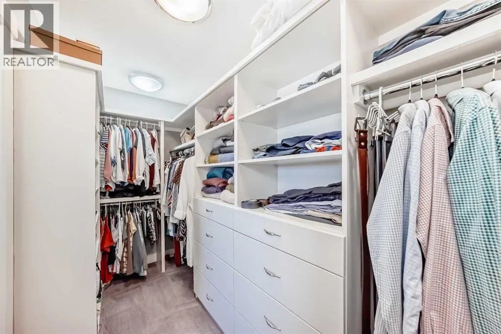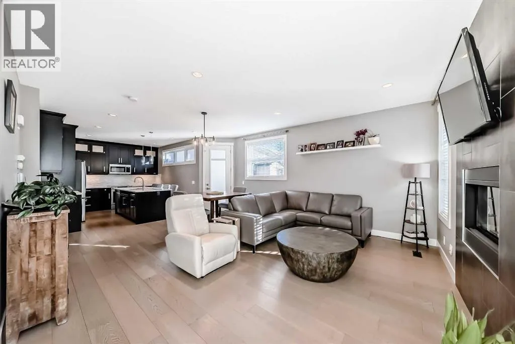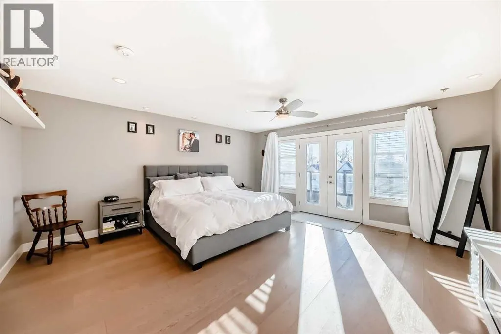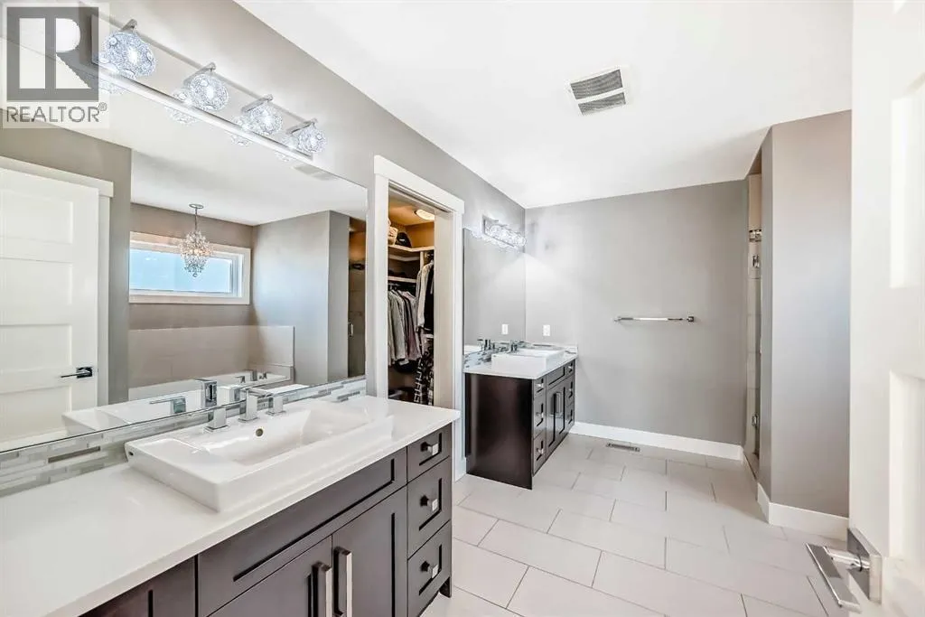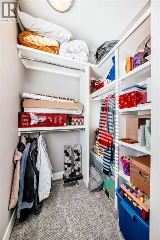 Incredible 3 storey corner townhouse in Winston Hts. If you are looking for a quality built home with loads of sq ft this is the one for you. The main floor is wide open with 9 foot ceilings, recessed lighting, gleaming laminate flooring and loads of oversized windows. The kitchen is wide open to the living area and has full height kitchen cabinets with builtin lighting, upgraded backsplash lit up with under mounting lights, beautiful white quartz countertops throughout & upgraded SS appliances. There is a huge centre island with a breakfast bar, dual undermount sinks, extra storage cabinets plus the dishwasher. There is also a large corner walkin pantry with tons of storage. Off the kitchen is a good sized dining area which overlooks the living room. The living room has a central gas fireplace with tiled surround and a mounted TV. There is a walkout to a back deck/BBQ area plus access to your parking space in the detached garage. This unit uses the far right side (when looking from the alley) parking spot. The 2nd level boasts two massive bedrooms each with their own oversized walkin closets. Between them you will find a full 5 pce main bathroom with tiled floors, his n her sinks sharing a huge vanity with extra cabinets and drawers. There is a water closet that has the tub/shower plus the toilet as well. The laundry is on the 2nd level as well and has a full sized washer/dryer with builtin cabinets. You will love the size of the bedrooms, the walkin closets and the 8 foot high doors throughout. The 3rd level is a huge Primary Bedroom with recessed lights, knockdown ceilings, a ceiling fan and a walkout to a large balcony that overlooks the City~ beautiful unobstructed views! The balcony has glass railing & loads of space for your patio furniture. The ensuite is luxurious with deep soaker tub, oversized stand up shower, tiled floors, his n her vanities plus a massive walkin closet with builtin custom made shelving. The fully finished basement has a good sized rec r oom with recessed lights, knock down ceilings, laminate floors & two windows. There is a storage room which has the freezer, a handy 2 pce bathroom and the massive 4th bedroom! The utility room has a high efficient furnace, Central AC, Builtin VacuFlo and an oversized Hot Water tank. (id:27476)