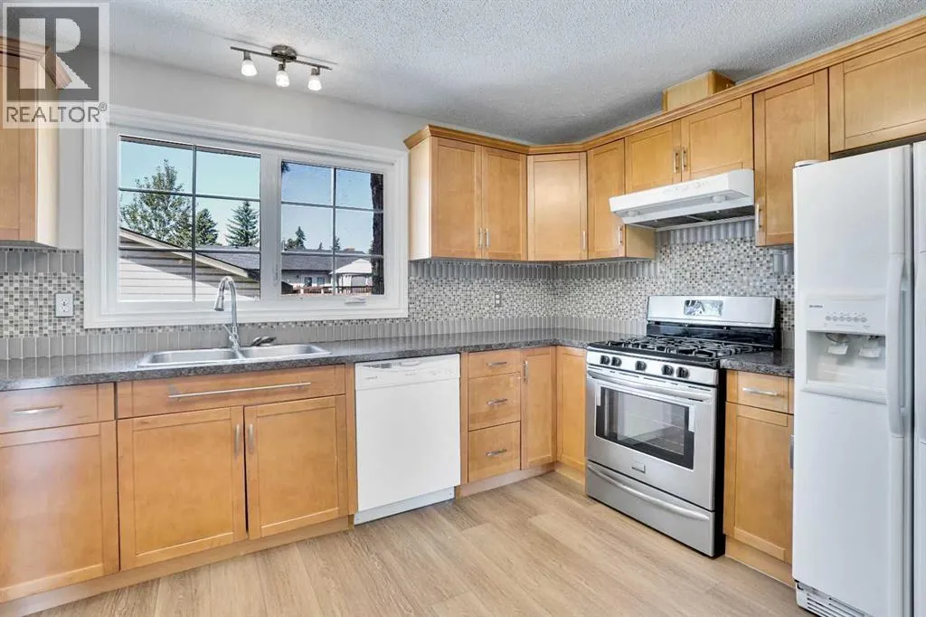 Ever dream of living in a newly renovated 5 bedroom family home, complete with double detached garage all on a massive yard (over 5000 sq ft)? Welcome HOME. The heart of home, the kitchen, boasts maple shaker cabinetry, full height glass tile backsplash, faux granite countertops, large fridge and you'll be cooking with GAS on the upgraded 5 burner stove, complete with high CFM hoodfan. Entertain in the large L shaped living / dining room. The entire home has been freshly repainted, new luxury vinyl plank flooring (main level, 3rd level, and basement), with over a dozen new light fixtures, and everything ready for it's next occupants. Upstairs you'll find 3 bedrooms (primary + 2 kid) and 4 piece bathroom. The 3rd level has the 4th bedroom, the 2nd full bathroom and a large family room, complete with a cosy fireplace. The lower level has a large rec room, complete with a roughed in water, perfect for either a bar sink or a potential second kitchen, along with the 5th bedroom and a THIRD full bathroom. Expensive upgrades like windows have already been done. Stepping outside, you'll love the large deck; just steps down you'll find the large lower patio, with the door to the DOUBLE garage right there. The large rear yard is perfect for kids tofrolic and play. You'll love living in Whitehorn, with the LRT just down the hill, tons of shopping (32nd ave, Costco, Sunridge Mall), 4 schools (K-9) with the closest school (K-6) only 500 feet away. There is even a hospital under 1 mile away. A great blend of new renovations, amazing lot, spacious double garage, LRT, and schools. Don't miss s out on the chance to own this slice of paradise. Call your agent to book a viewing today. (id:27476)