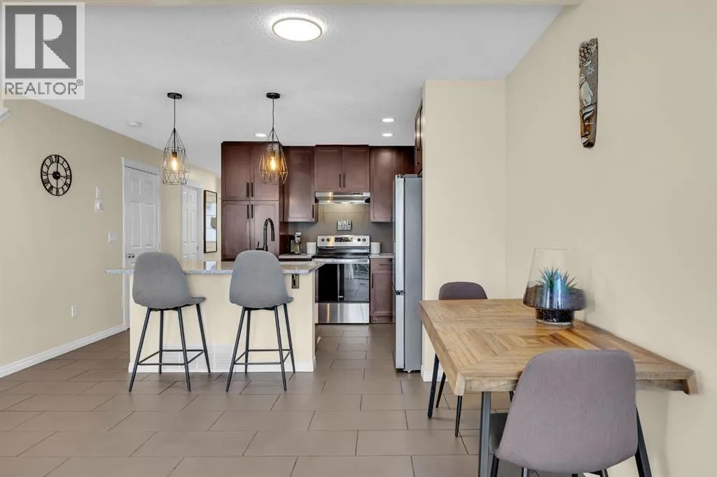 Welcome to this beautifully maintained and upgraded 3-bedroom, 1.5-bathroom home that truly shines with pride of ownership. From the moment you walk in, youâll notice the care and attention to detail that has gone into maintaining this property. Freshly painted throughout and meticulously cared for, this home offers both comfort and modern touches in an ideal location close to parks, recreation, and all the amenities you could need.The main floor features a bright and welcoming living room with a cozy gas fireplace, perfect for relaxing evenings or gathering with friends and family. Large windows flood the space with natural light, complemented by tasteful lighting upgrades and dimmers throughout the home. The kitchen is thoughtfully designed with granite countertops, ample cabinetry, and a new stainless steel fridge, making it as functional as it is stylish. A convenient dining area opens directly to the south-facing back deck, where you can enjoy all-day sunshine, a gas BBQ line, and an unobstructed view of the walking path behind the home, an ideal setting for outdoor dining or peaceful morning coffee.Upstairs, youâll find a spacious primary bedroom featuring elegant French doors, a walk-in closet, and direct access to the full upstairs bathroom. The additional two bedrooms are beautifully maintained, bright, and versatile, perfect for family, guests, or a home office.Every aspect of this home reflects thoughtful upgrades and exceptional upkeep, from the quality finishes to the functional layout. The property also includes a single attached garage plus a driveway for additional parking, offering convenience and ease of access year-round.Located in a welcoming community near a large pond with a scenic walking path, youâll have endless opportunities for outdoor enjoyment right at your doorstep. Plus, youâre just minutes away from VIVO Recreation Centre, schools, shopping, and transit, making this a fantastic home for families and professionals alike.If youâre looking for a home thatâs truly move-in ready, bright, beautifully updated, and cared for to perfection, this is the one. (id:27476)