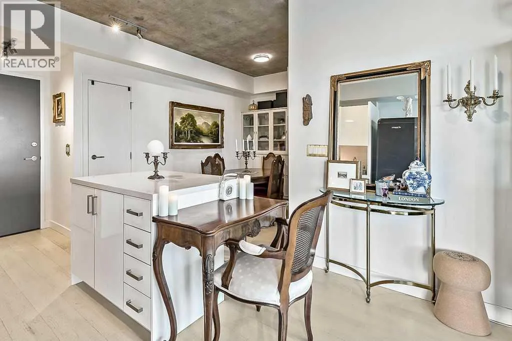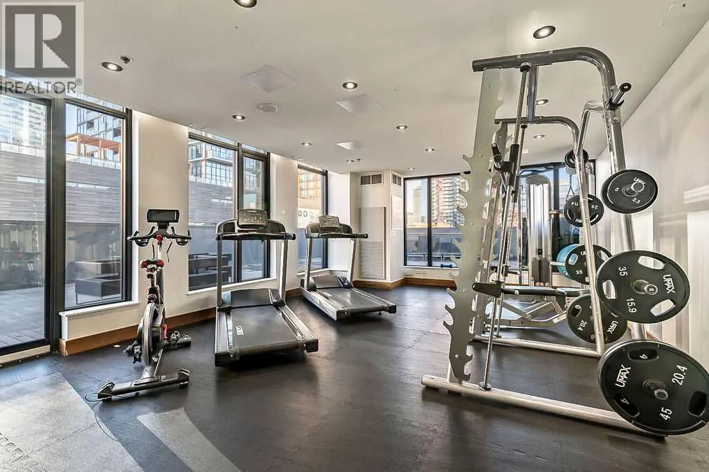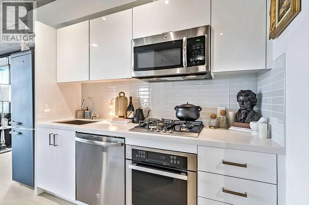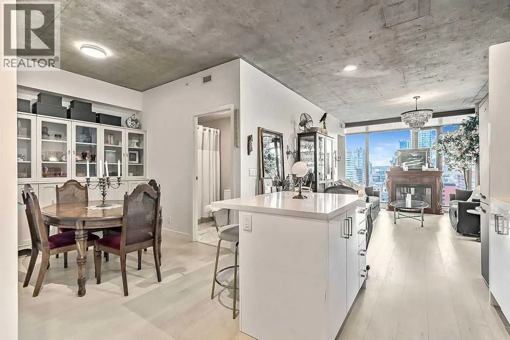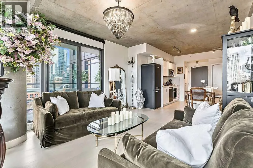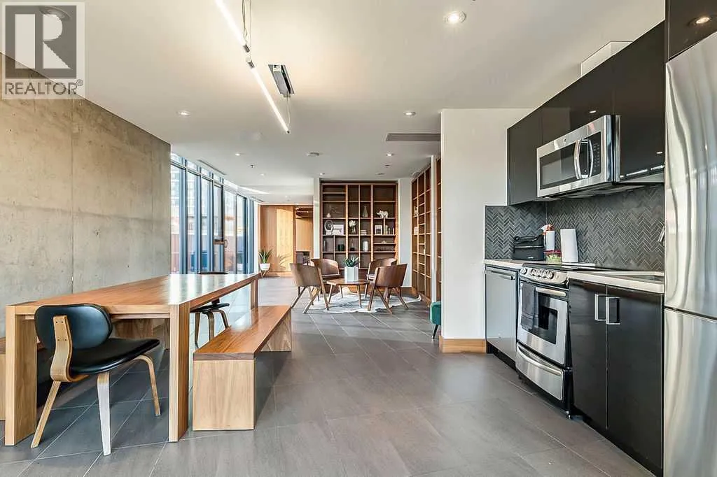 Experience elevated city living at 6th & Tenth, a modern landmark in Calgaryâs coveted Beltline.This beautifully designed one-bedroom residence blends clean architecture with quiet sophistication. Soaring exposed concrete ceilings, floor-to-ceiling windows, and unobstructed downtown views create a space that feels open, sunlit, and connected to the city below.A large private balcony extends your living space outdoors, perfect for morning coffee or evening cocktails beneath Calgaryâs glowing skyline. Inside, every detail feels intentional: contemporary finishes, sleek lines, and a sense of calm thatâs rare in the heart of downtown. The versatile dining area can easily be transformed into a stylish home office or den, offering flexibility to suit your lifestyle.Enjoy luxury amenities including a concierge, fitness centre, outdoor pool, and sky lounge terrace. Located just steps from the cityâs finest restaurants, cafés, transit, and parks, this is not just a home â itâs a statement of contemporary urban elegance. Short term rentals are permitted. (id:27476)