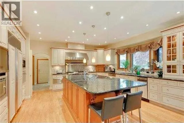 Unparalleled opportunity to own a distinguished estate home in the prestigious community of Pump Hill. Perfectly positioned on an expansive 15,726 +/- sq. ft corner lot, this exquisite residence offers over 6,680 sq. ft of living space on 3 levels, complemented by a fully developed lower level designed for both grand entertaining and comfortable family living. From the moment you enter, youâll appreciate the craftsmanship and elegance, with gleaming hardwood floors, formal living and dining rooms, a stately office, and a spacious family room with one of five fireplaces that enhance the warm, inviting ambiance. The gourmet kitchen is a culinary masterpiece, featuring granite countertops, a large island and eating bar, high-end appliances, and a sunlit breakfast nook that overlooks the private grounds. A stunning solarium, large laundry room, and a 2 piece powder room complete the main level. Ascend the elegant staircase to discover three generous bedrooms, each with its own walk-in closet and ensuite bath. The opulent primary suite is a true retreat, offering a sitting area with private balcony access, two walk-in closets, and a luxurious 5-piece ensuite. The lower level is equally impressive, featuring expansive recreation and family rooms, two additional bedrooms, a 4 piece guest bath, plus an 816 sq. ft indoor sports court â perfect for an active lifestyle, with so many possibilities it can be used as a dance studio, rock climbing wall, pickle ball, basketball, volleyball, indoor hockey area, and a private hot tub area â a rare amenity perfect for an active family lifestyle. Further highlights include a rare 4 car attached garage, central air conditioning and a spacious back patio for outdoor entertaining. Ideally located close to South Glenmore Park, Heritage Park, excellent schools, shopping and dining in Glenmore Landing, and access to rapid transit. This exceptional home offers an unparalleled lifestyle for discerning buyers seeking space, elegance, and conven ience. (id:27476)
