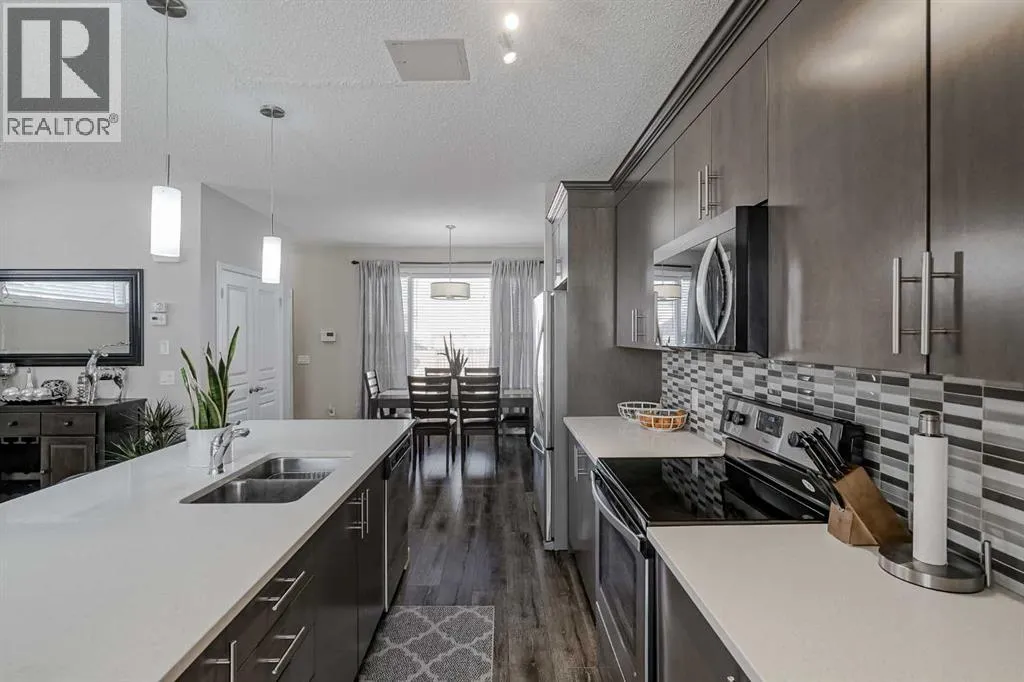 Prepare to be impressed by this exceptional two-storey, corner-lot home situated in the desirable community of Cranston! This residence offers a fabulous, open-concept floor plan designed for effortless living and entertaining. The main level is anchored by beautiful laminate flooring throughout and features a spacious living room perfect for gathering. Culinary enthusiasts will appreciate the great kitchen, boasting abundant cabinet space, sleek quartz countertops, and a large central island. A generous dining area easily accommodates family meals, complemented by a versatile nook off the kitchenâideal for a small den or extra seating space. Upstairs, the convenience is clear: three generously sized bedrooms await, along with a full four-piece bathroom and a dedicated upstairs laundry room. The primary bedroom serves as a true sanctuary, complete with a luxurious five-piece ensuite. The living space extends seamlessly into the fully finished basement, which offers a spacious family room, an additional bedroom, and a three-piece bathroom, providing endless possibilities for guests, hobbies, or recreation. Practicality meets function outside with a double detached garage and dedicated space for RV parking. The location is truly unbeatable: you are just minutes from major commuter routes like Deerfoot Trail and Stoney Trail. Premier shopping and essential services, including the South Health Campus, are only a short distance away, making daily life incredibly convenient. This home is a perfect blend of space, finish, and prime location! (id:27476)