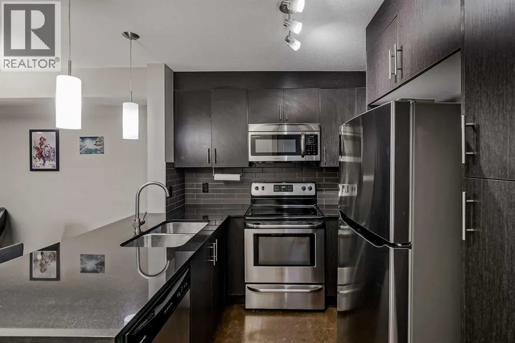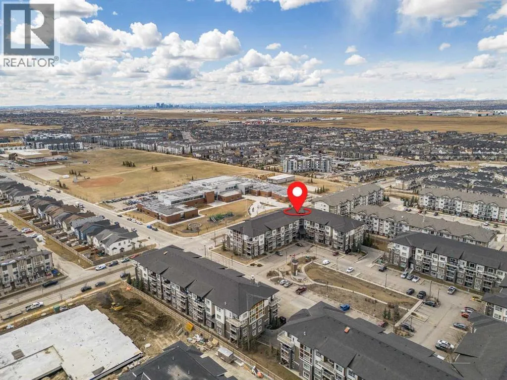 Welcome to Skymills in Skyview Ranch â Stylish, Modern & Maintenance-Free Living! Step into this showhome-quality, like-new condo that blends comfort with convenience. Perfectly designed, this open-concept second-floor home is filled with natural light thanks to its wall-to-wall windows and spacious layout. The gourmet kitchen is a chefâs dream, featuring a peninsula island with breakfast bar, stainless steel appliances, ample cabinetry, and a functional dining space. The bright living room opens onto your private balconyâthe perfect place to relax or entertain, complete with a natural gas hookup for your BBQ. Your primary bedroom retreat offers a wall-to-wall closet and plenty of natural light. Additional highlights include in-suite laundry and a titled surface parking stall for your convenience. Ideally located, youâll enjoy being minutes from CrossIron Mills, schools, shopping, public transit, and quick access to Deerfoot & Stoney Trail. Move-in ready and maintenance-freeâthis Skymills condo truly has it all! (id:27476)