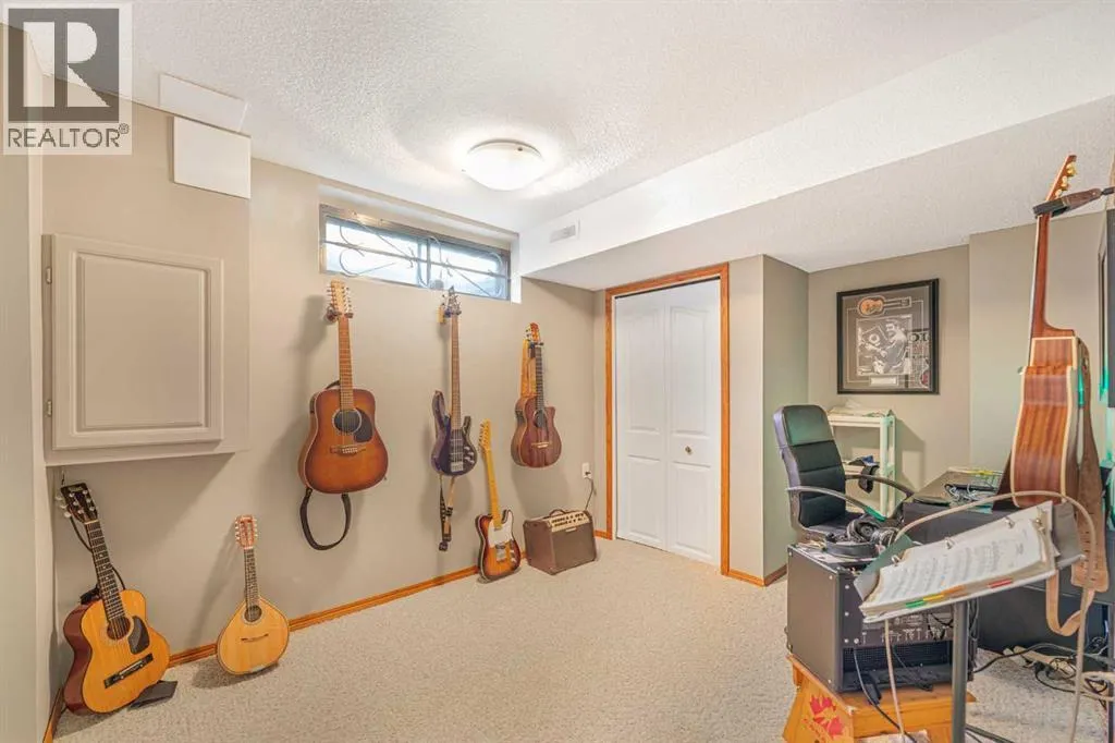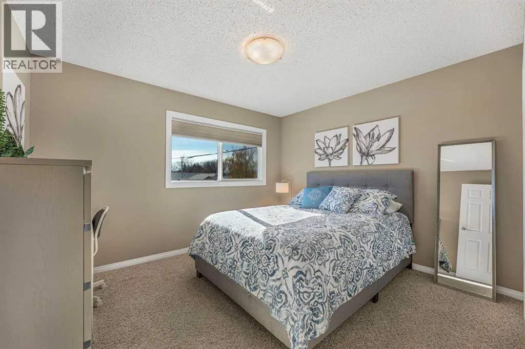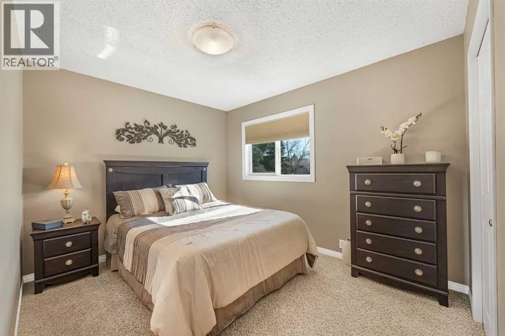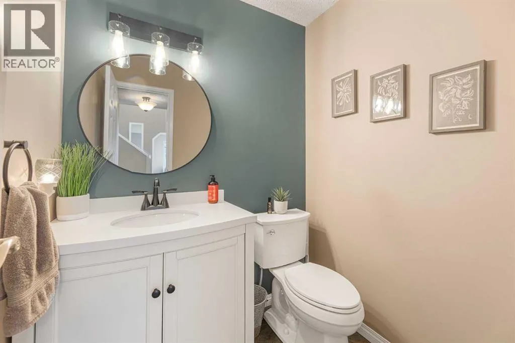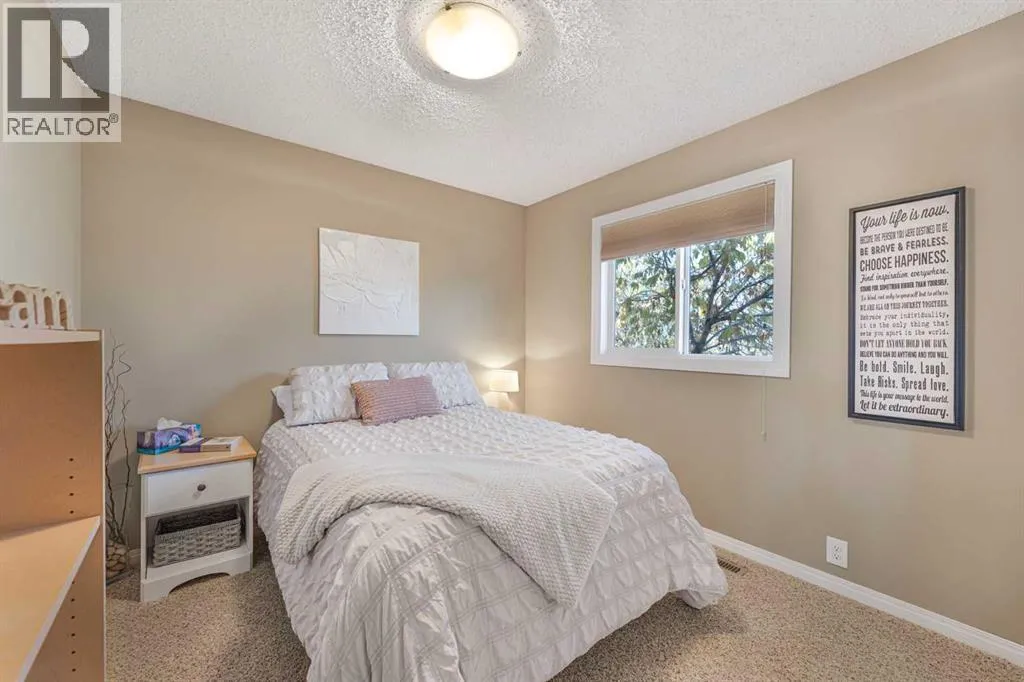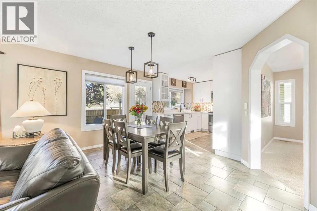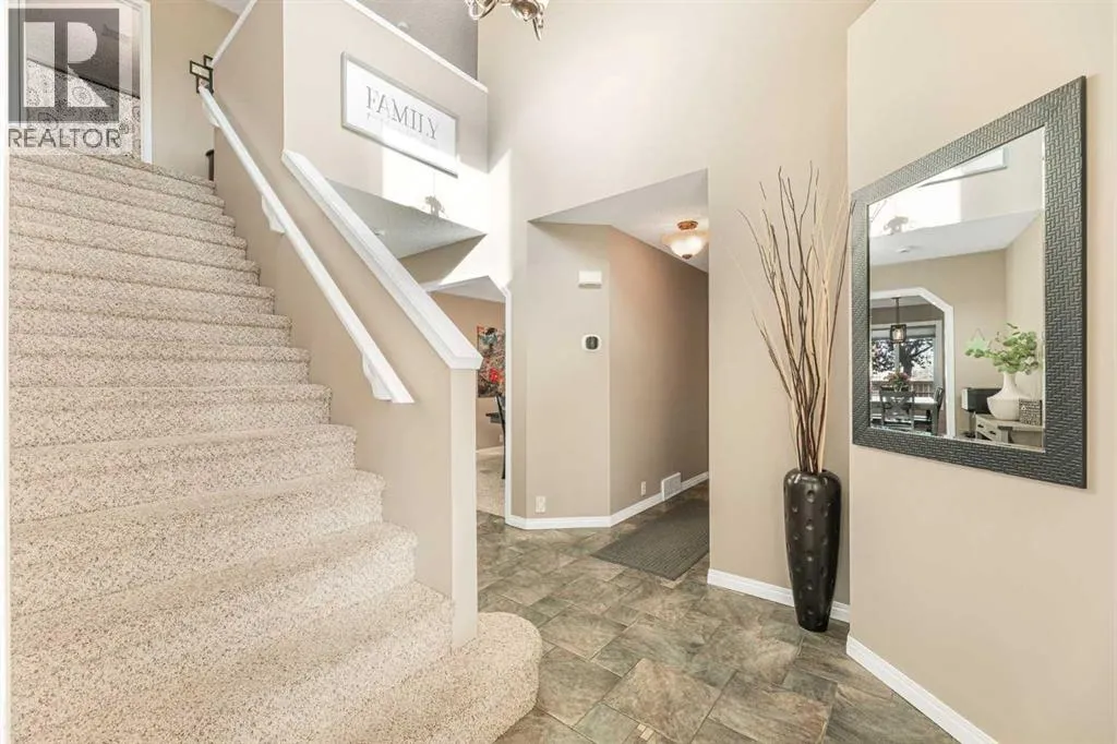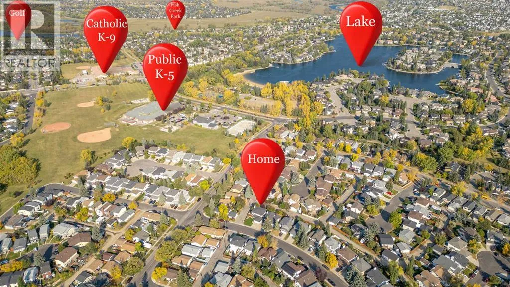 Welcome to this beautifully upgraded home with extra side yard, located just a short walk from the private lake, two schools, parks, river pathways and shopping. From the moment you step inside, youâll be impressed by the grand vaulted entrance, showcasing inlaid tile flooring and a sense of timeless sophistication. The home has been extensively refreshed, the main floor features an updated half bath, a front flex room, a formal dining room, and a bright dinette that flows seamlessly into the living room, complete with a cozy gas fireplace for cooler nights. The completely renovated kitchen is a showstopper, boasting quartz countertops, new white slow-close cabinetry, custom backsplash, stainless steel appliances, undermount lighting, and thoughtful design throughout, perfect for both everyday living and entertaining. Upstairs, youâll find four spacious bedrooms, a laundry room, and an open den area ideal for a home office or study nook. Both bathrooms have been fully renovated, including a four-piece main bath and a luxurious four-piece ensuite with high-end finishes. The fully finished basement expands your living space with two large rec rooms, a fifth bedroom, and another three-piece bathroomâoffering flexibility for guests, hobbies, or family movie nights. Outdoors, enjoy the massive deck and patio designed for entertaining with a retractable awning, hot tub ready, and complemented by multiple storage sheds. Additional updates include a newer roof, upgraded vinyl windows, PEX plumbing, updated hot water tanks, a new furnace with heat pump, and a heated double attached garageâensuring year-round comfort and peace of mind. This meticulously maintained home truly has it all: show home quality, modern upgrades and an unbeatable location in a family-focused community with access to excellent schools, golf courses, and the beauty of nearby Fish Creek Park and the Bow River. Quick access to Deerfoot and Stoney Trail ensures easy connectivity across the city. Call toda y for your own private showing! (id:27476)