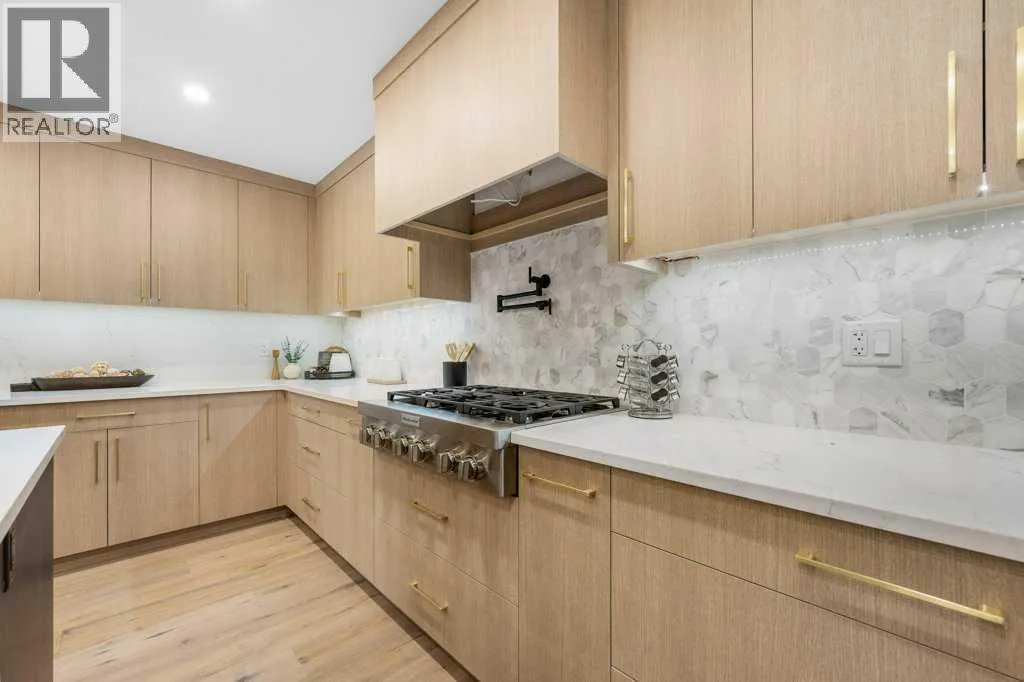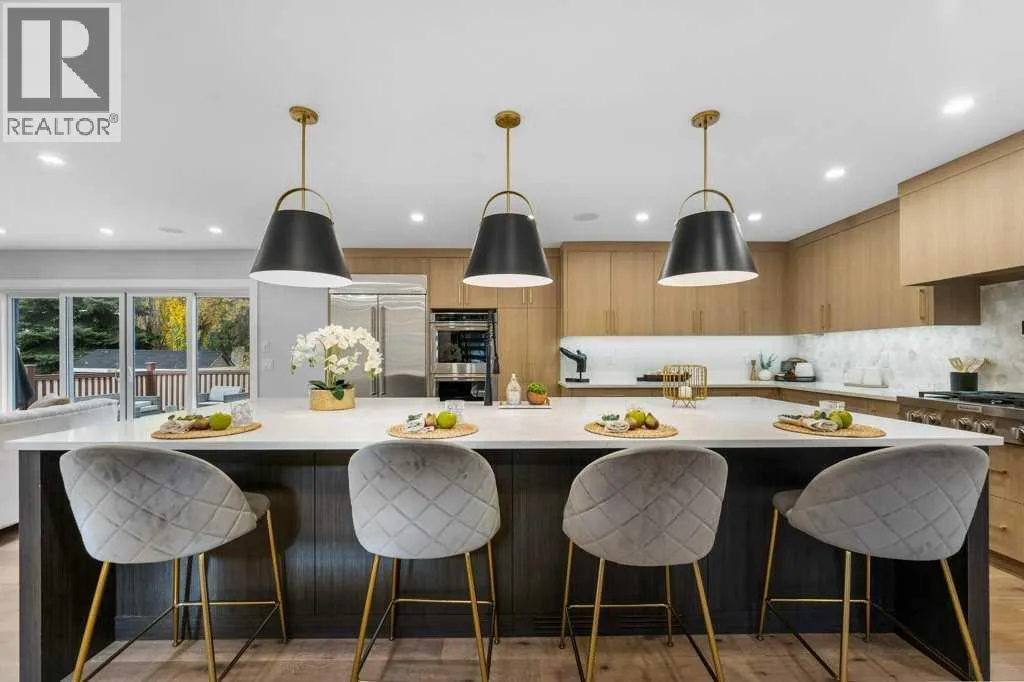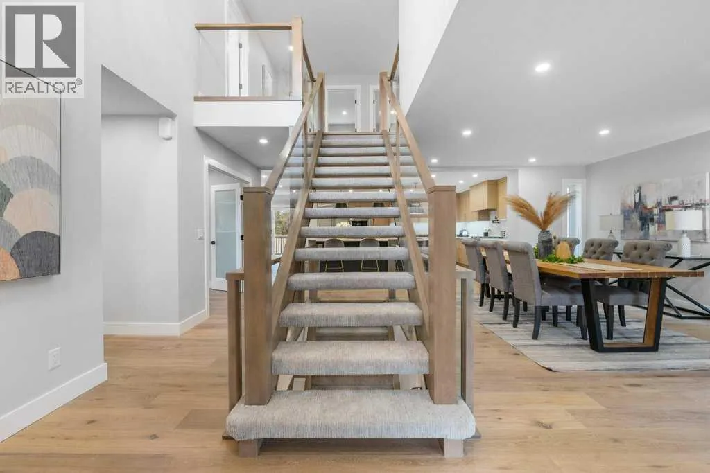 Fine craftsmanship in this renovated estate home in the prestigious lake community of McKenzie Lake. Offering 3,648 sq ft of fully renovated living space, this property screams modern luxury all in an exceptional location; nestled on a quiet, mature cul-de-sac with lake access. The striking new interior features a bold architectural floorplan centered around a dramatic glass staircase. The gourmet kitchen is a showstopper with sleek wood cabinetry, quartz countertops, ceramic apron-front sink, gas cooktop, built-in oven, and a massive central island. The main floor also includes a spacious dining area, cozy living room with gas fireplace, private office, 2pc bath, custom mudroom & storage complete with built-ins, and access to the oversized double garage. Upstairs, the luxurious primary suite boasts an immaculate grande 5pc ensuite with glass shower and separate soaker tub. Did I mention, the DREAM custom walk-in closet? 2 additional bedrooms, a full 4pc bath, and a laundry room with sink complete the upper level. The fully finished basement adds 2 more bedrooms, a 4pc bath, and a large rec room with wet bar - ideal for entertaining or family living. Enjoy summer evenings in the beautifully landscaped backyard featuring a massive composite deck with railings and a firepit. Additional highlights include air conditioning, double attached garage, and lake privileges for year-round recreation. Located in the prestigious and established lake community of McKenzie Lake, where residents enjoy year-round lake privileges, access to scenic walking and biking trails along the Bow River, and close proximity to the expansive natural beauty of Fish Creek Park. Commuting is effortless with quick access to both Stoney Trail and Deerfoot Trail, connecting you to all corners of the city. Families will appreciate the highly rated public and Catholic schools nearby. This is a rare opportunity to own an outstanding home that you will love to entertain in. Book your private showing today ! (id:27476)
